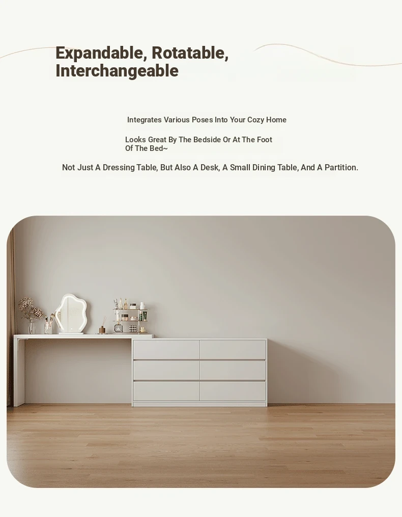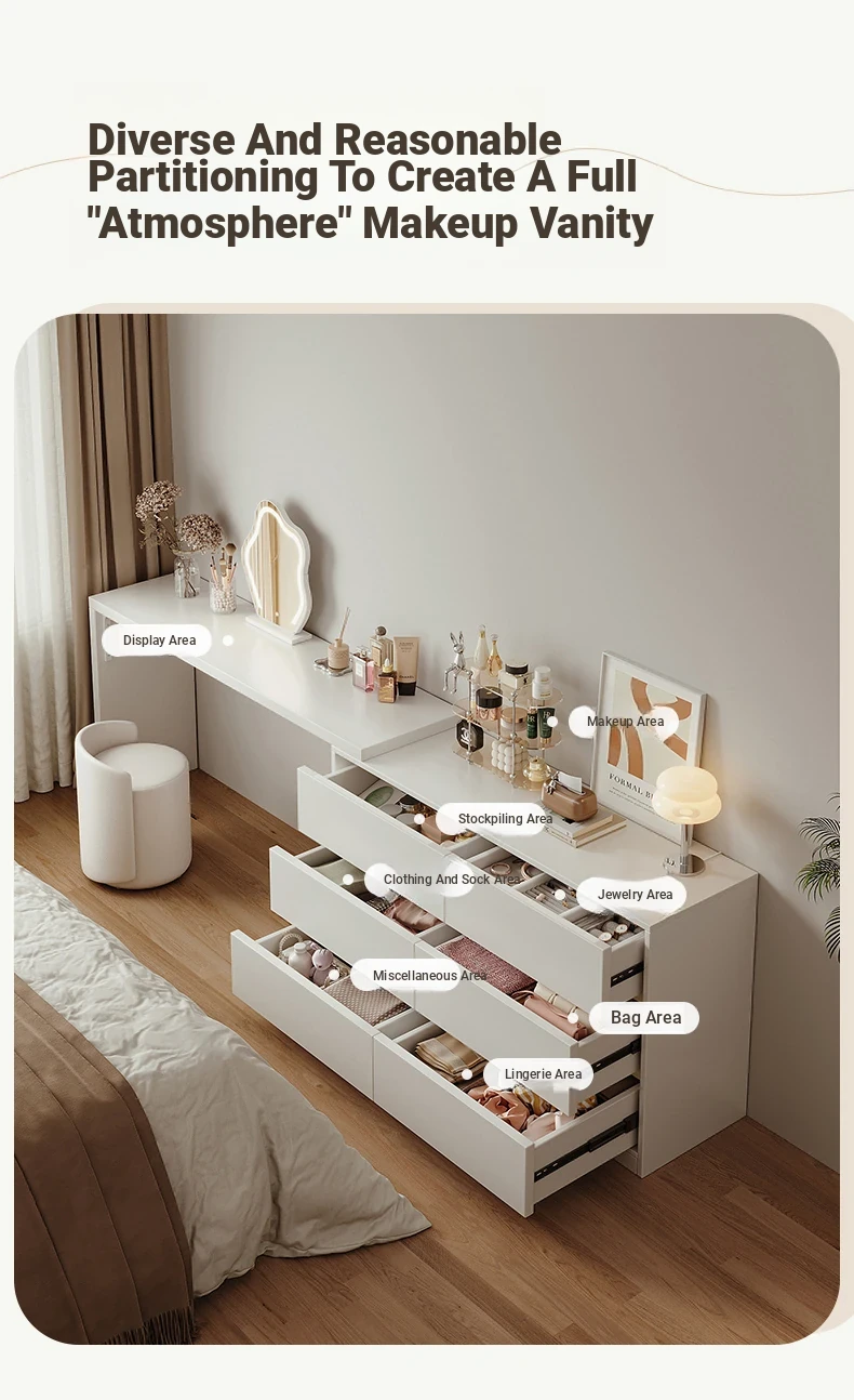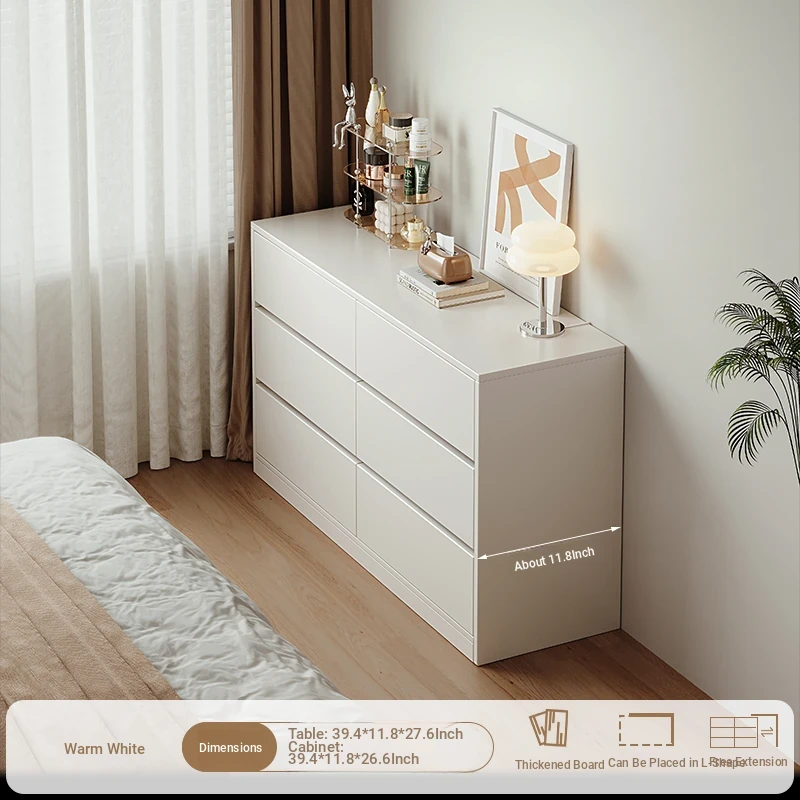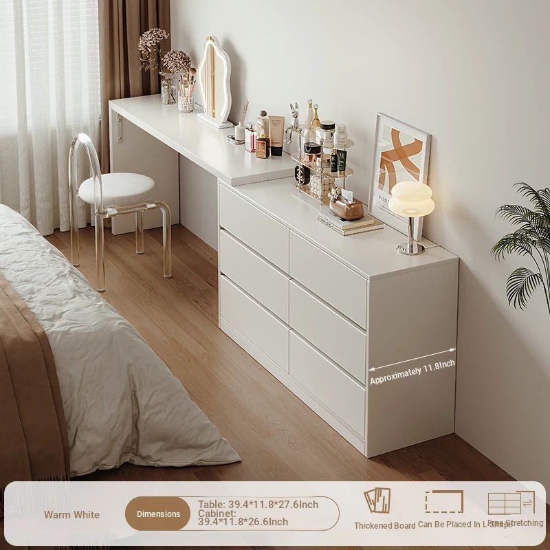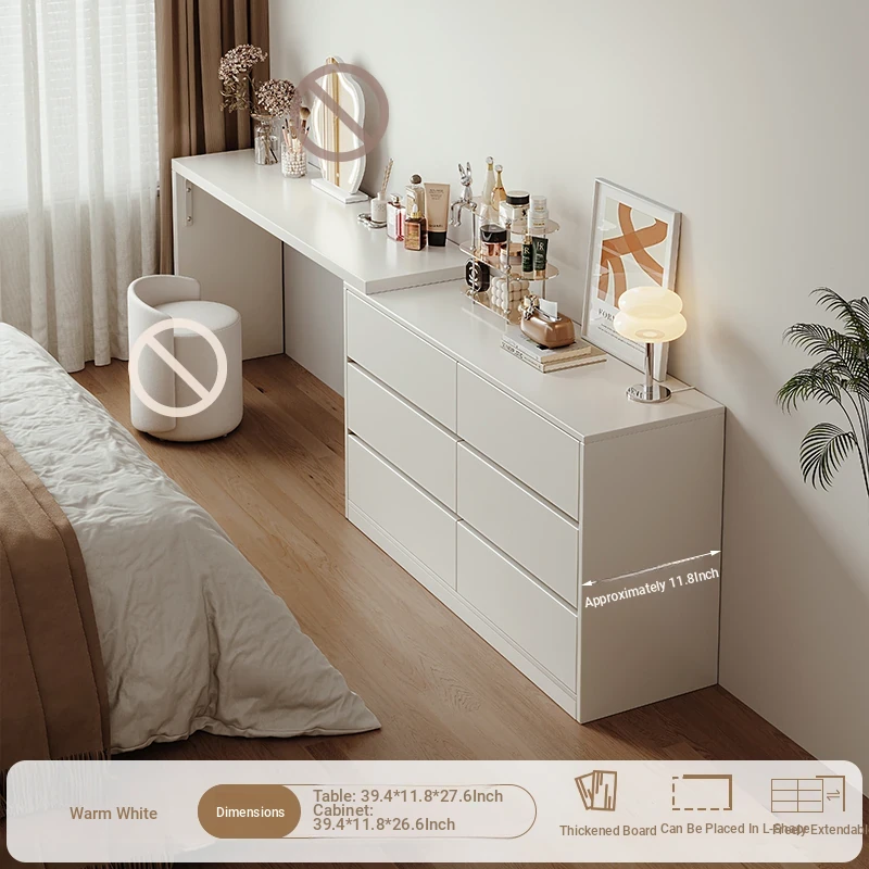 [15.75in Wide] [Cloud Mirror + Back Stool] 47.24in Table + 47.24in Six-Drawer Cabinet