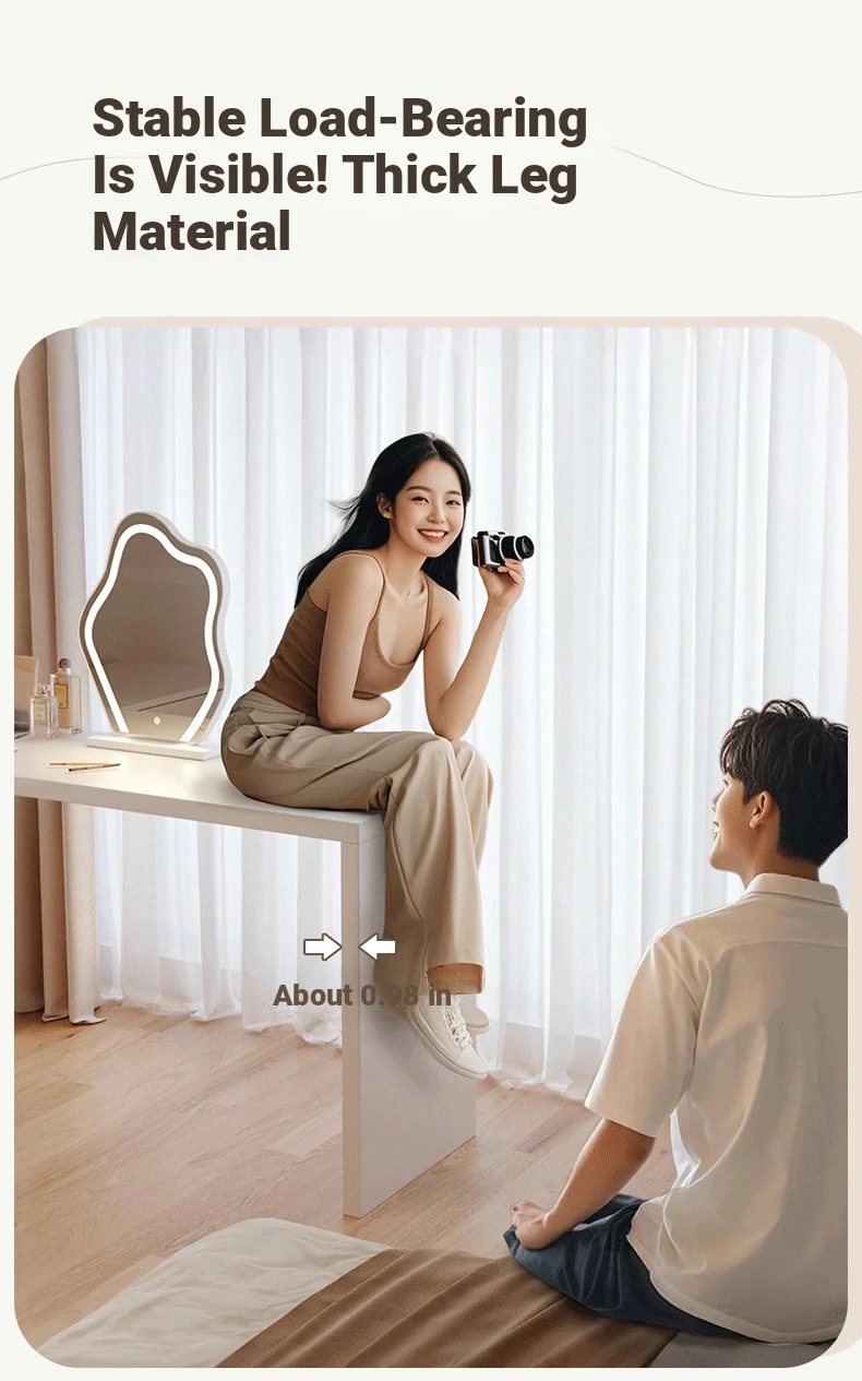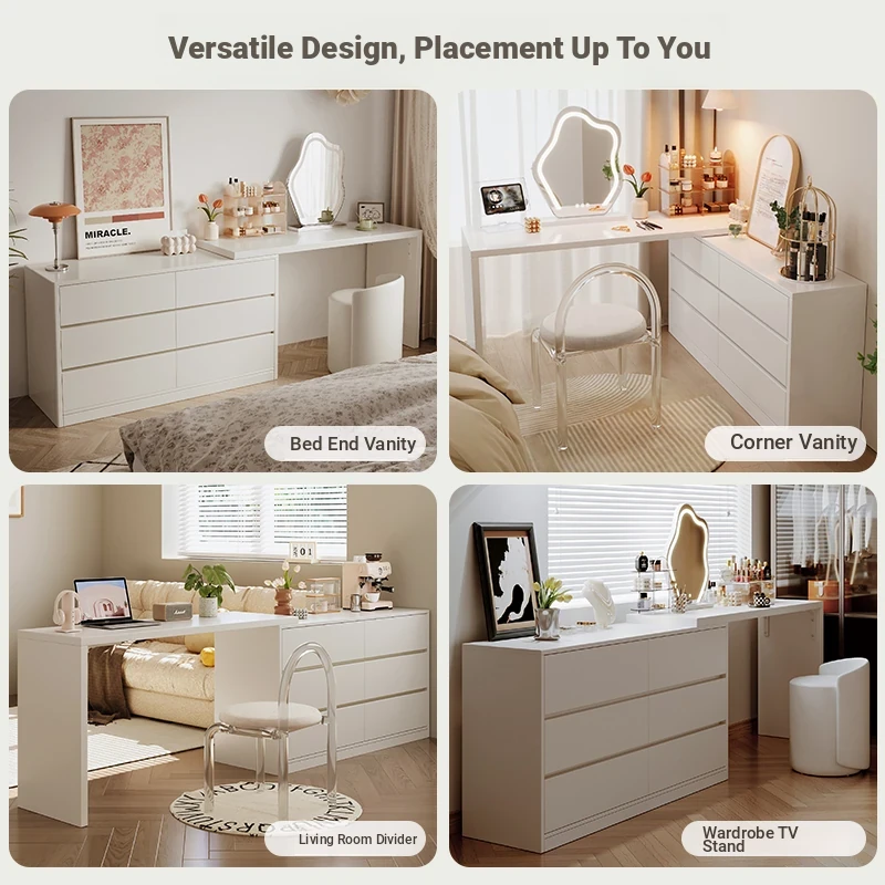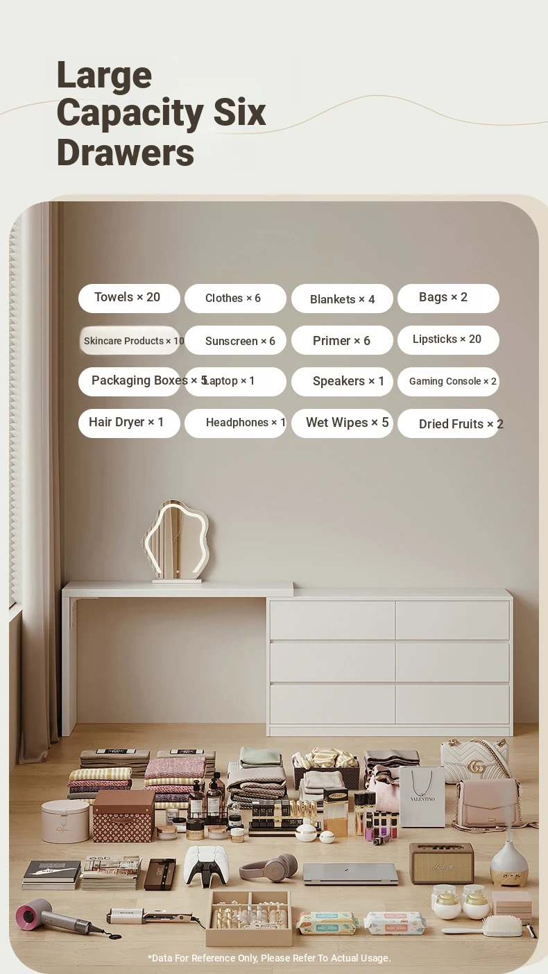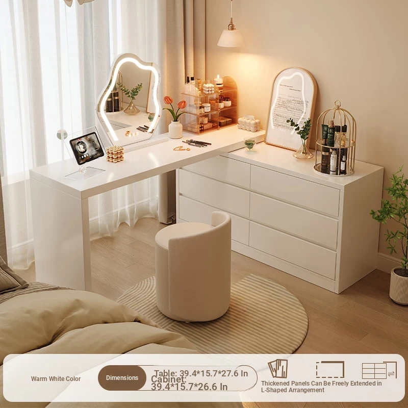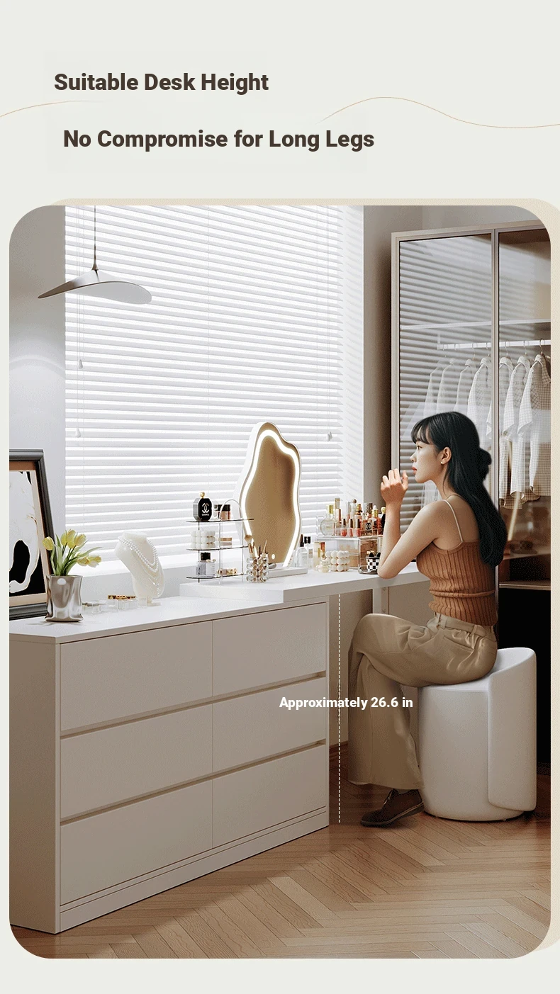 [15.75in Wide] [Cloud Mirror + Back Stool] 39.37in Table + 39.37in Six-Drawer Cabinet