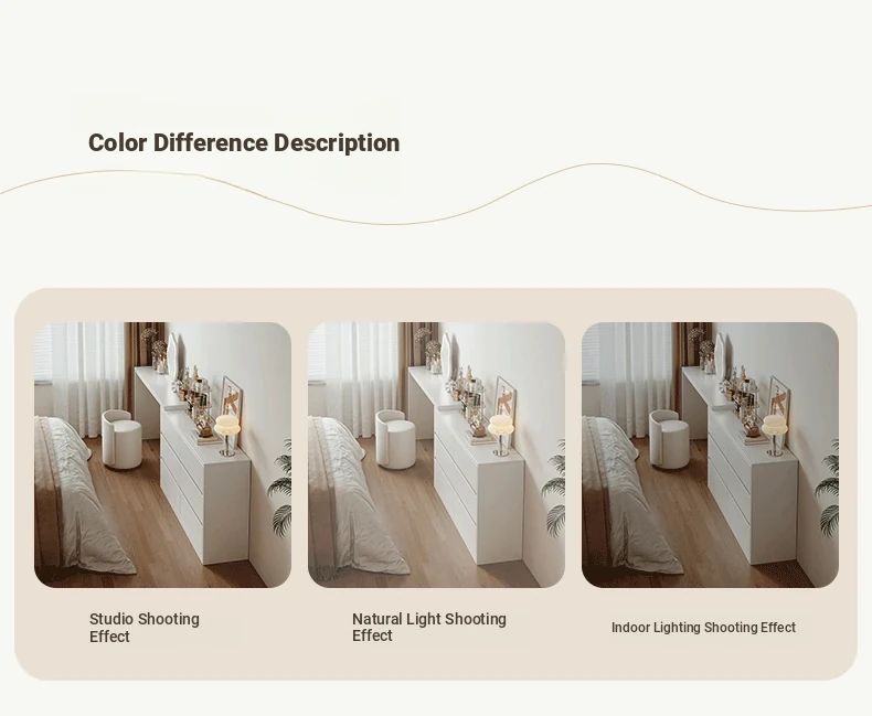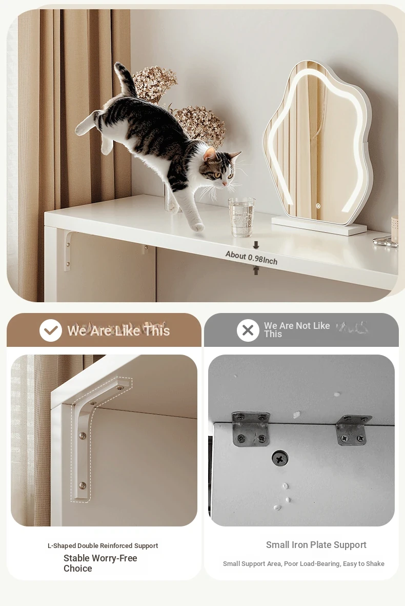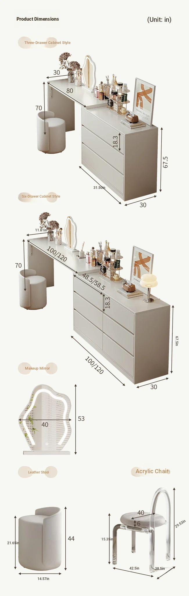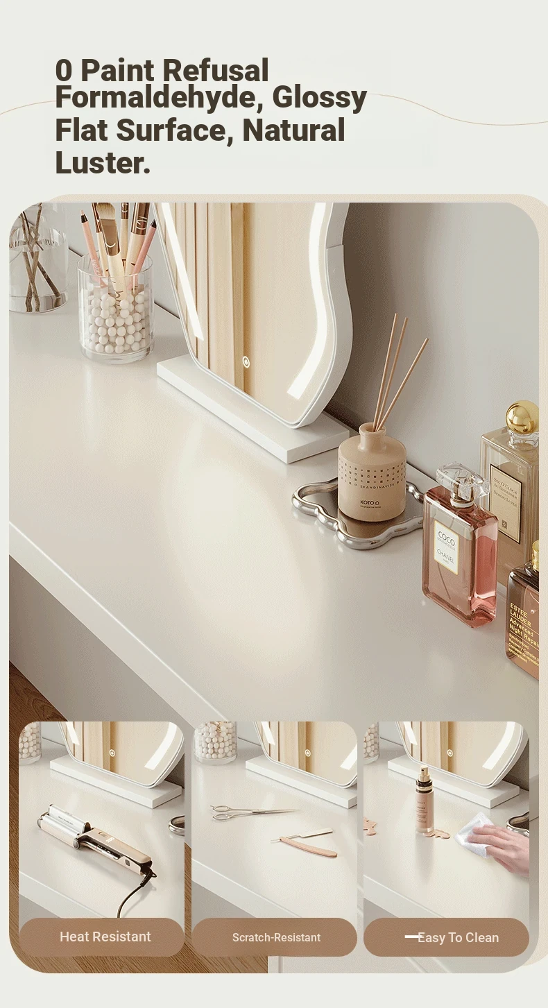 [15.75in Wide] [Cloud Mirror + Back Stool] 39.37in Table + 39.37in Six-Drawer Cabinet