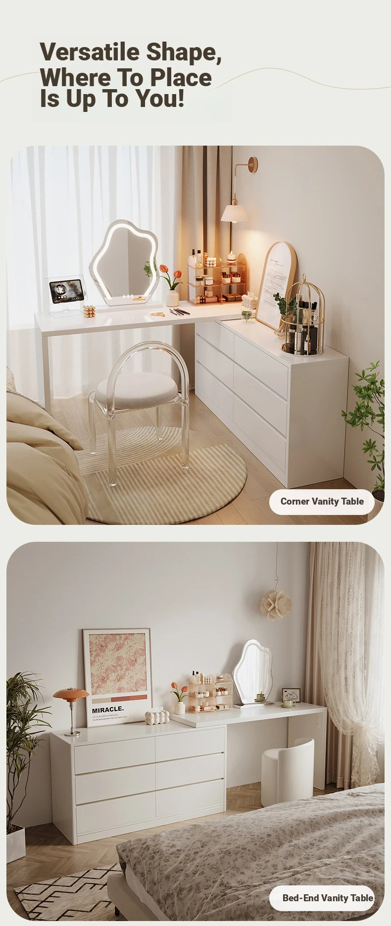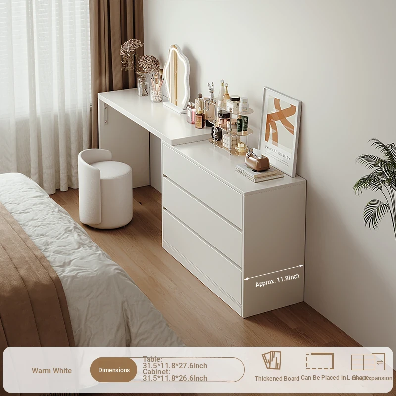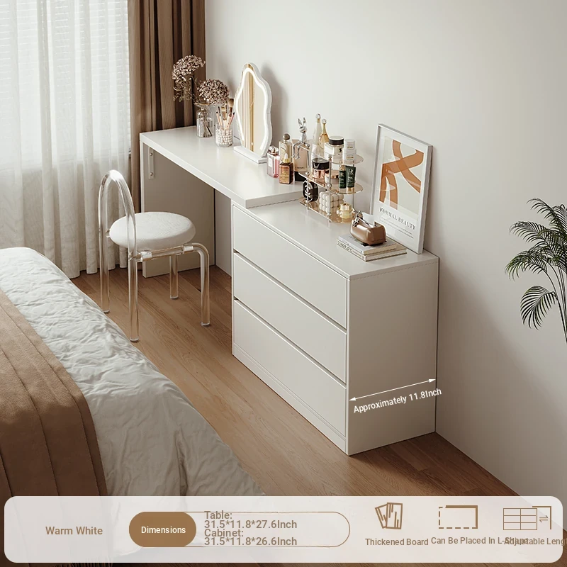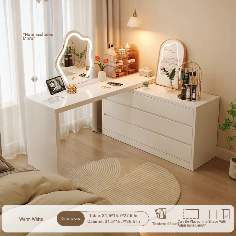 [Cloud Mirror + Acrylic Chair] 31.50in Table + 31.50in Three-Drawer Cabinet