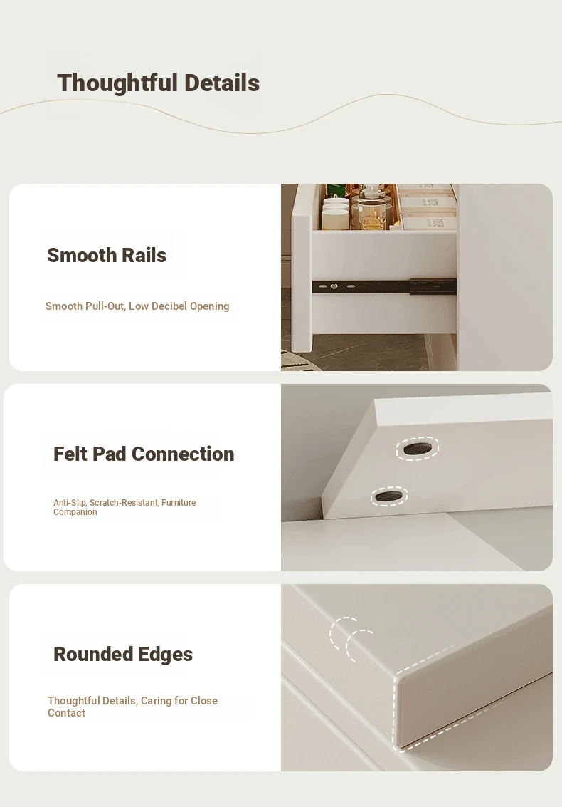 [Cloud Mirror + Back Stool] 31.50in Table + 31.50in Three-Drawer Cabinet