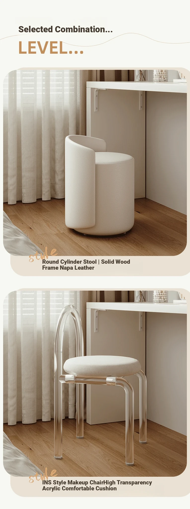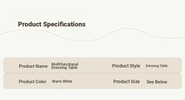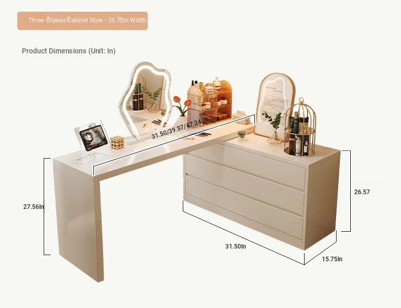 [15.75in Wide] [Cloud Mirror + Back Stool] 31.50in Table + 31.50in Three-Drawer Cabinet