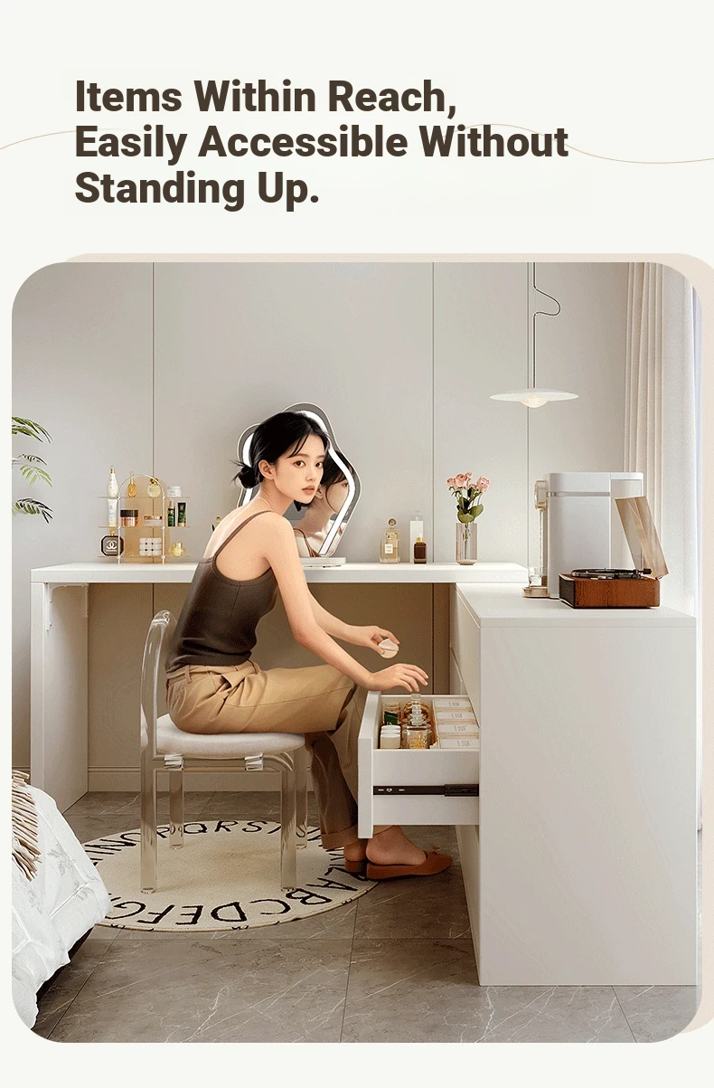[Package Installation]⭐[Cloud Mirror + Acrylic Chair] 39.37in Table + 39.37in Six-Drawer Cabinet