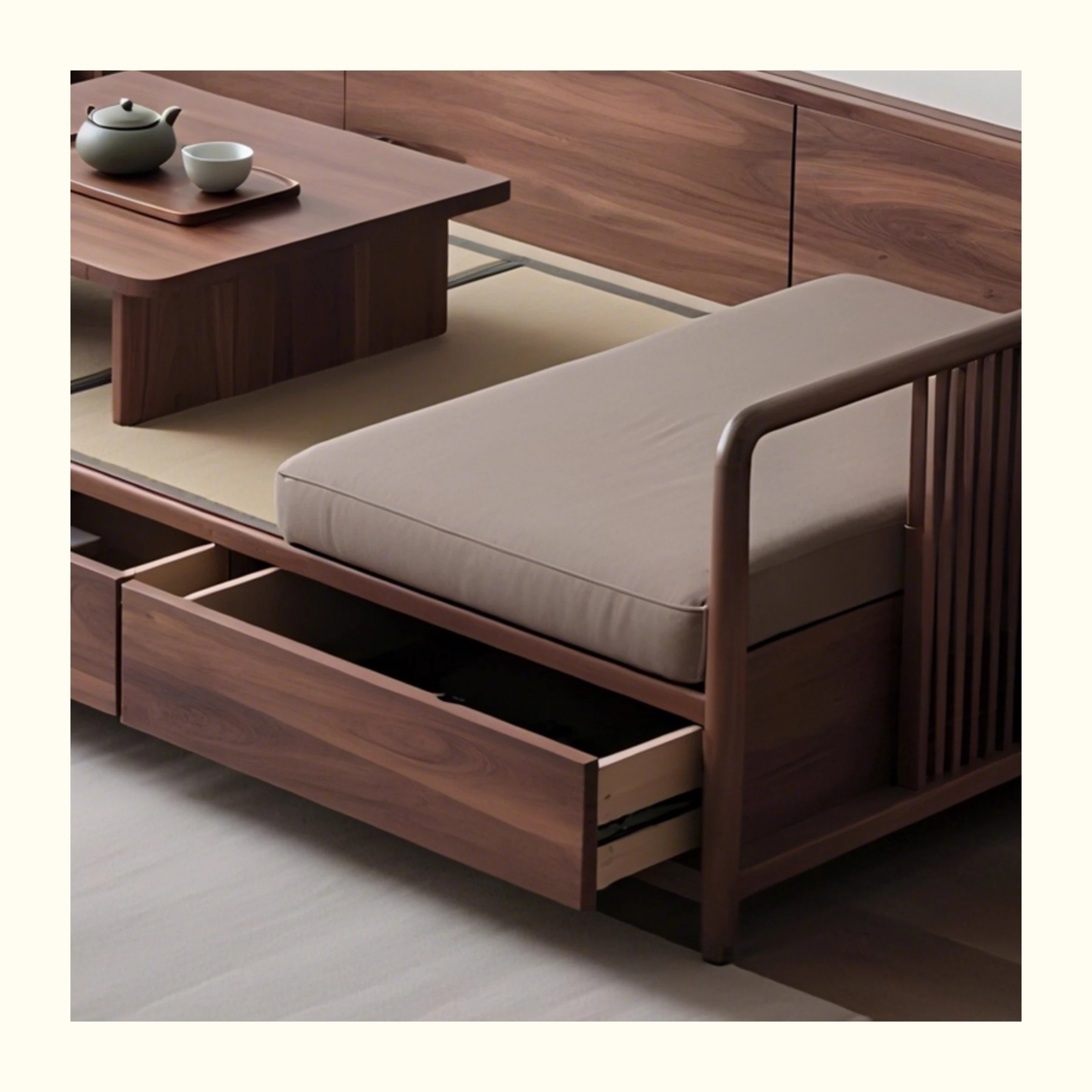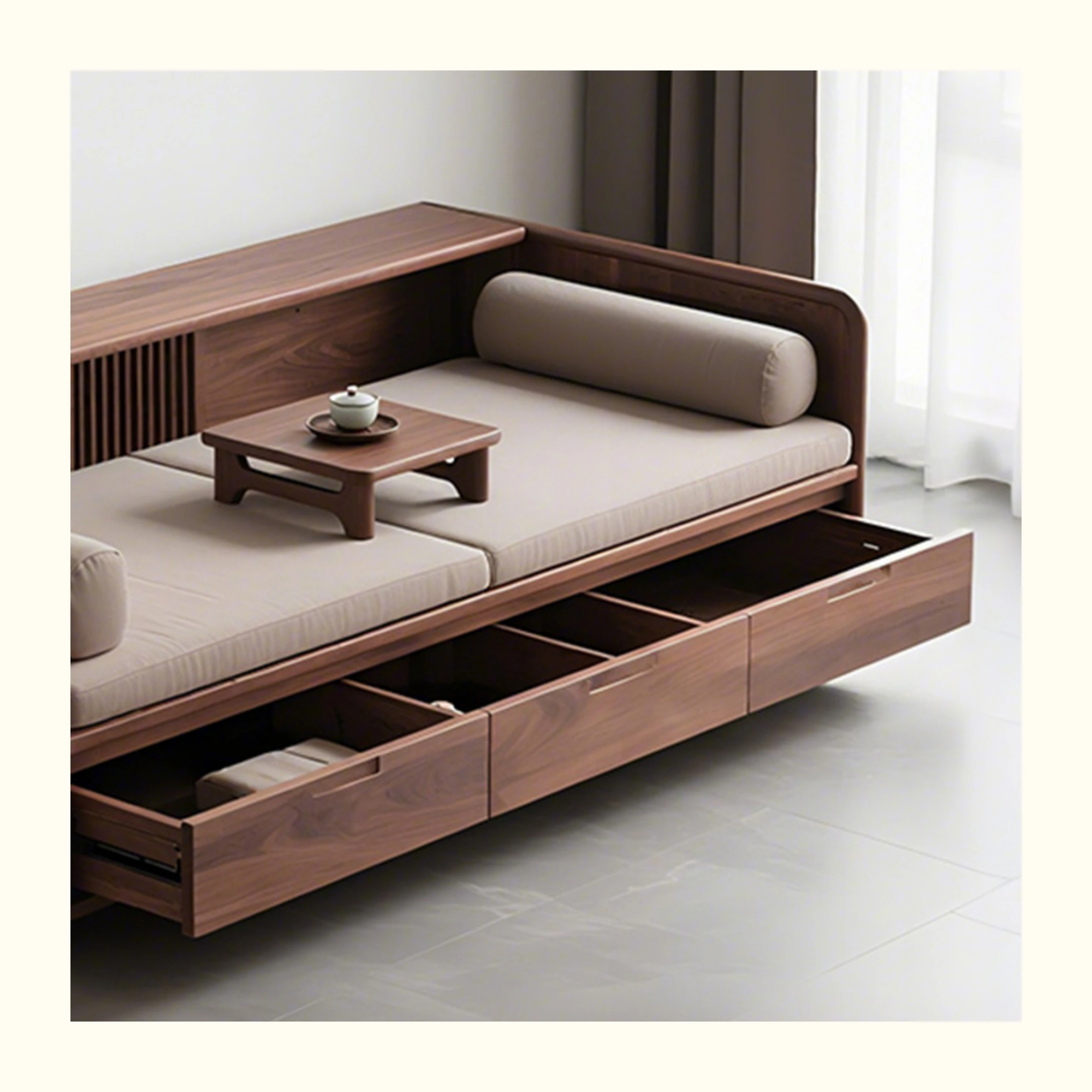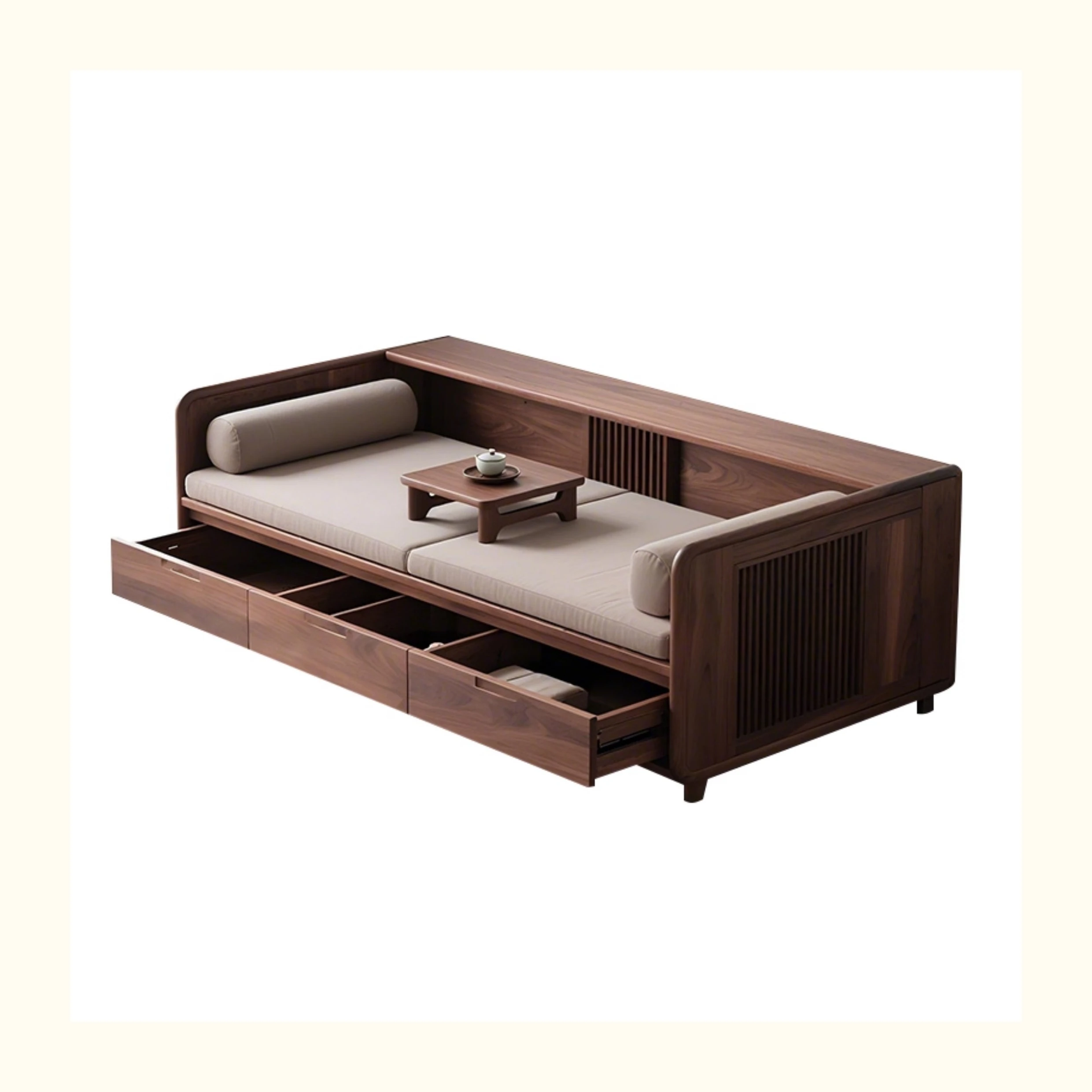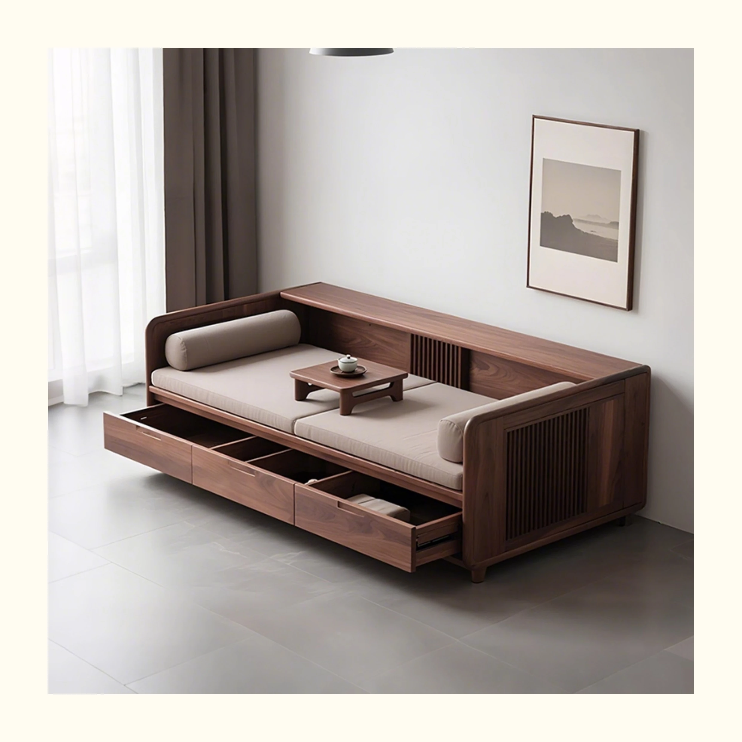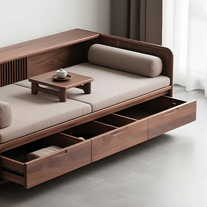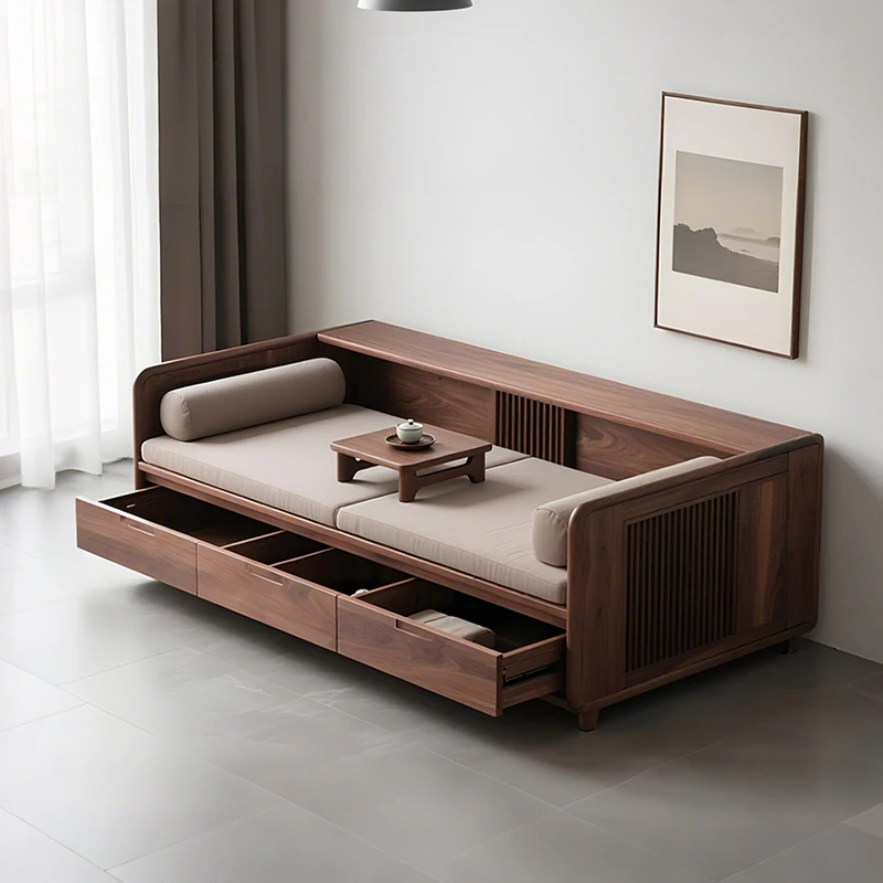 New Chinese Style Black Walnut Solid Wood Sofa - Versatile for Winter and Summer, Storage-Friendly, Zen-Inspired Lounger for Your Living Room