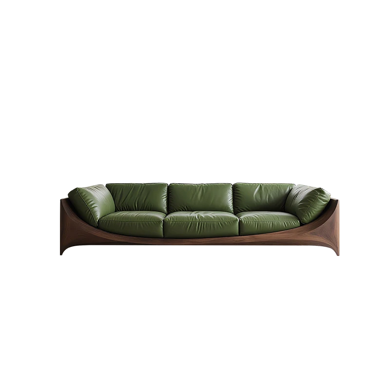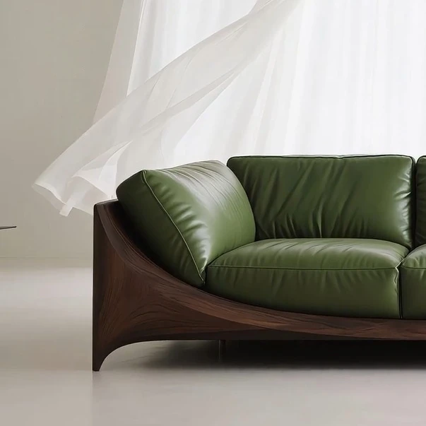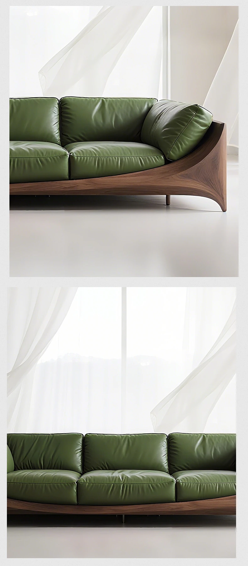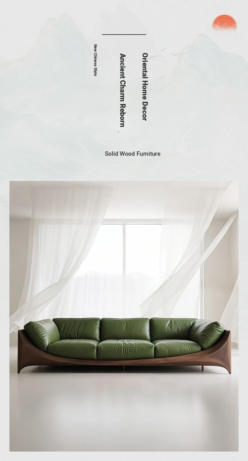 New Chinese Style Solid Wood Sofa - Minimalist Luxury Leather Sofa for Living Room, Villa, Three-Seat Sofa in Black Walnut Finish. Perfect Blend of Elegance and Comfort!