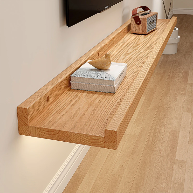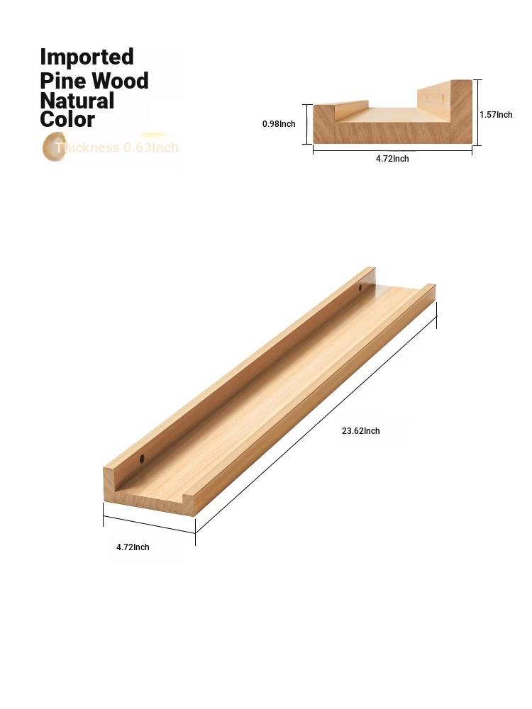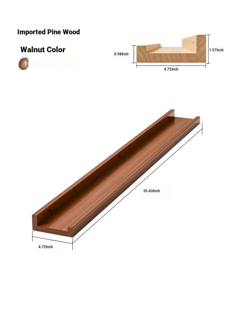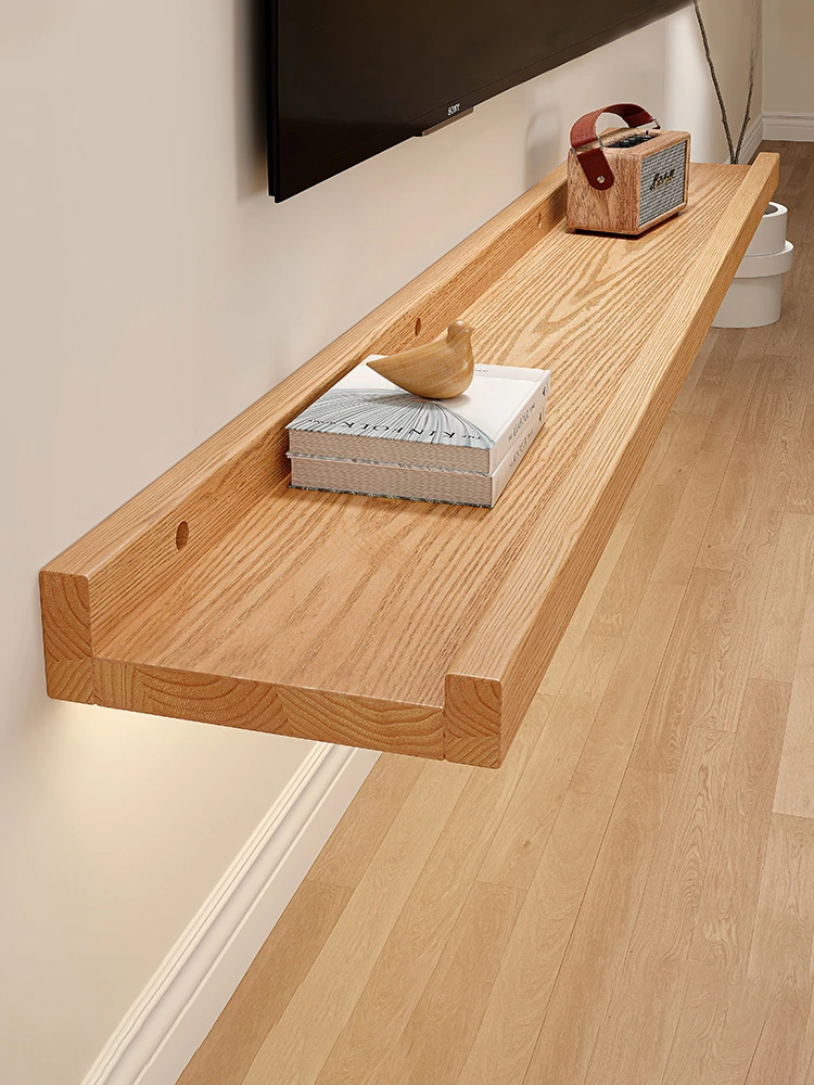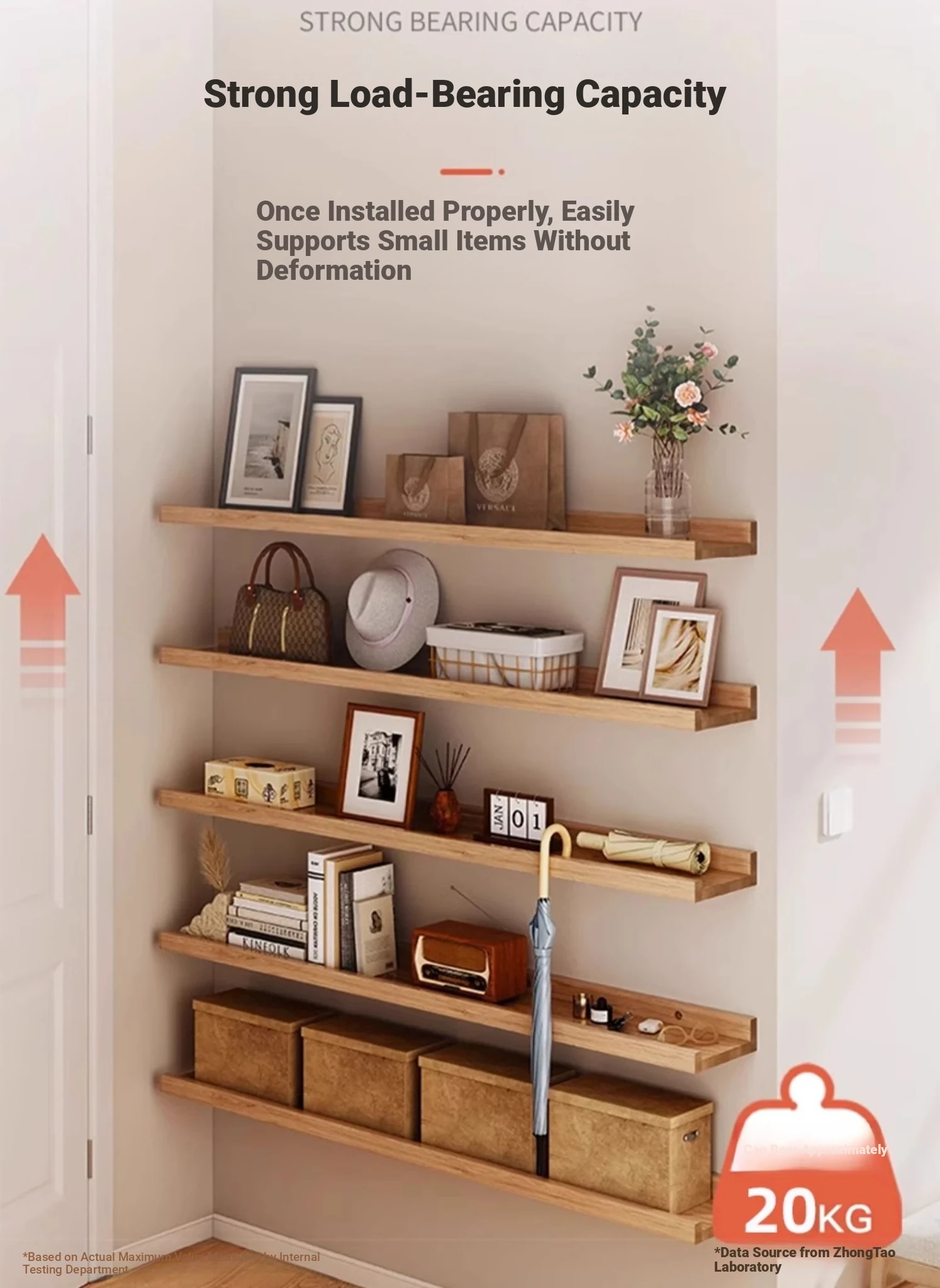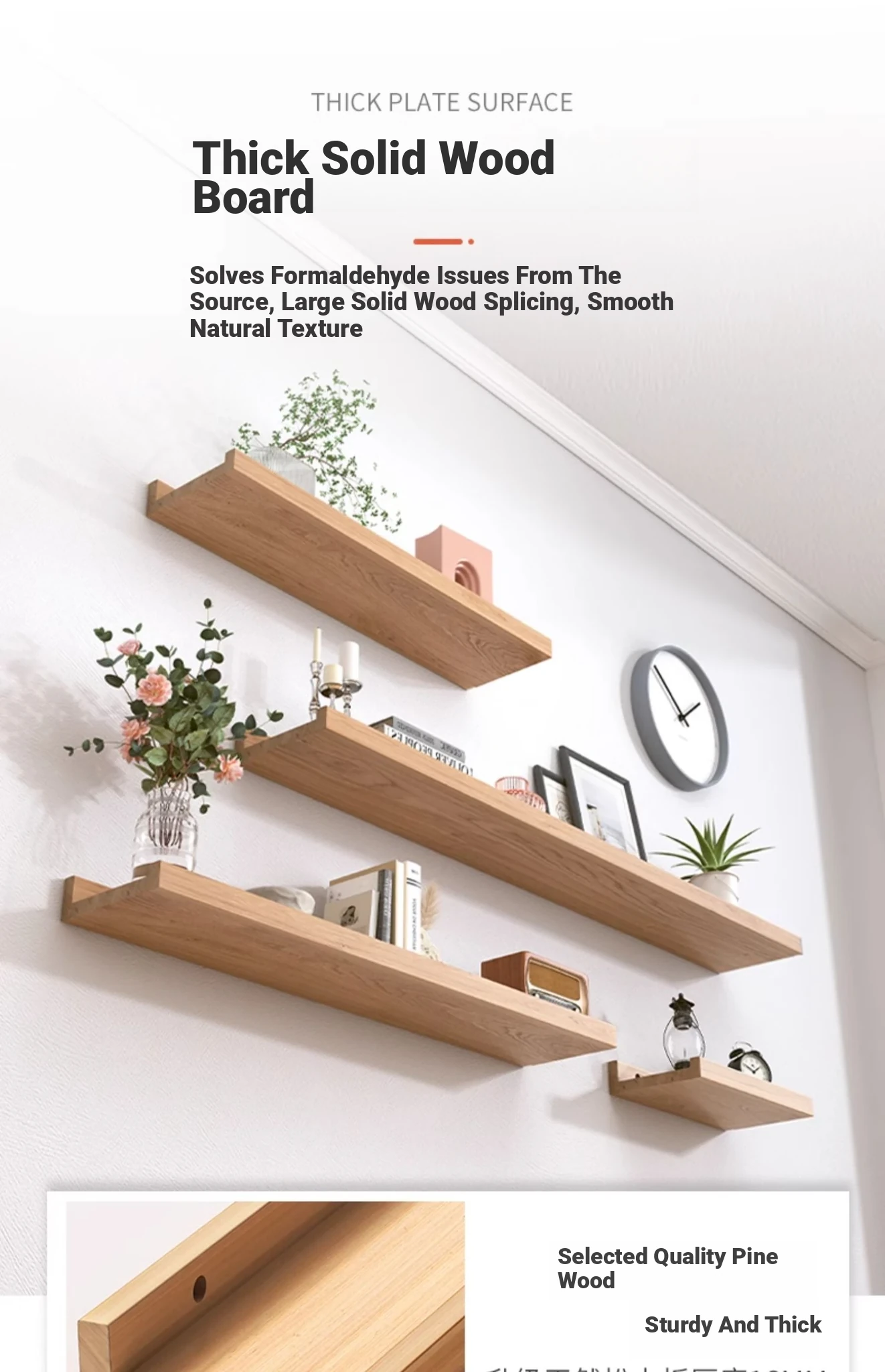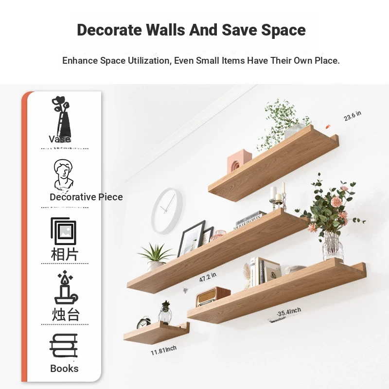 No-Drill Solid Wood Wall Shelf - Sleek Floating Display Rack for Living Room Accent Walls, Perfect for Home Décor and Organization