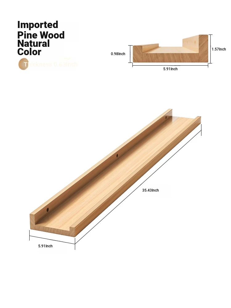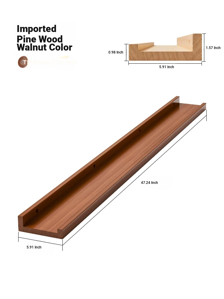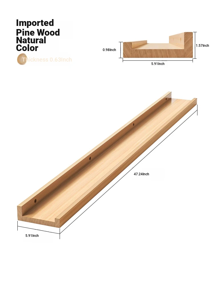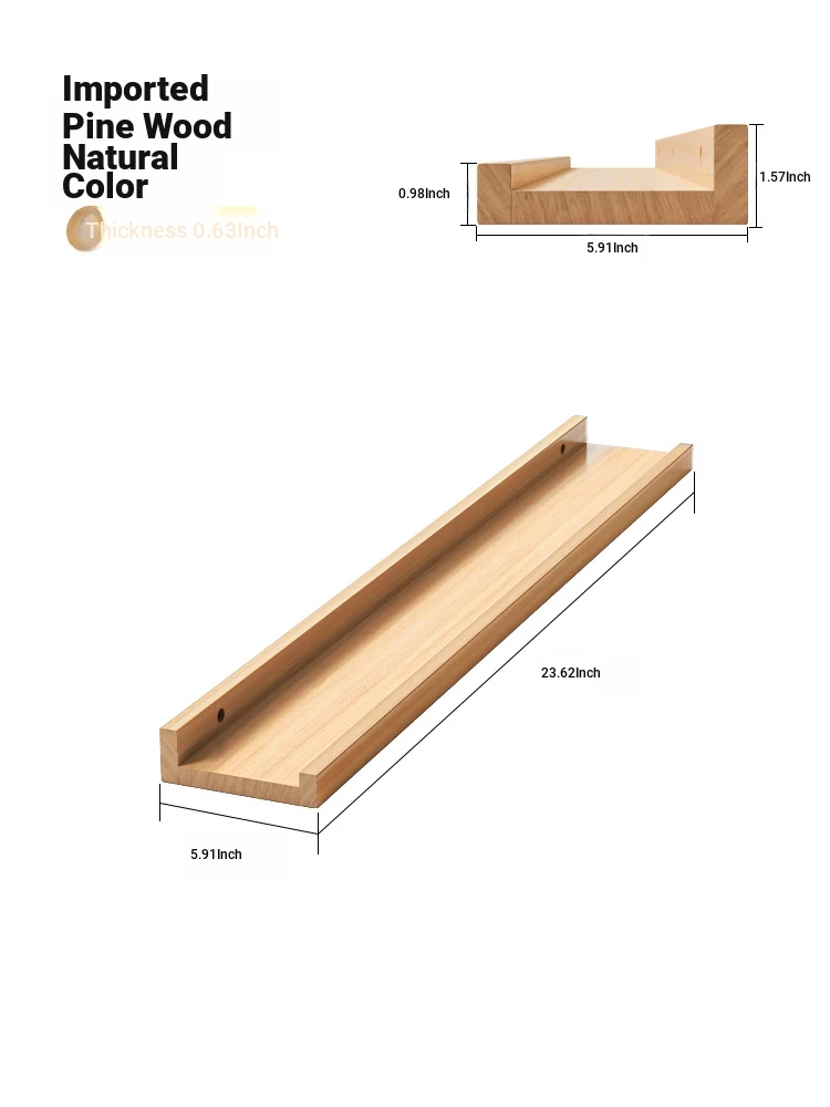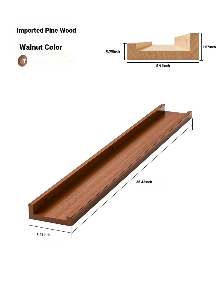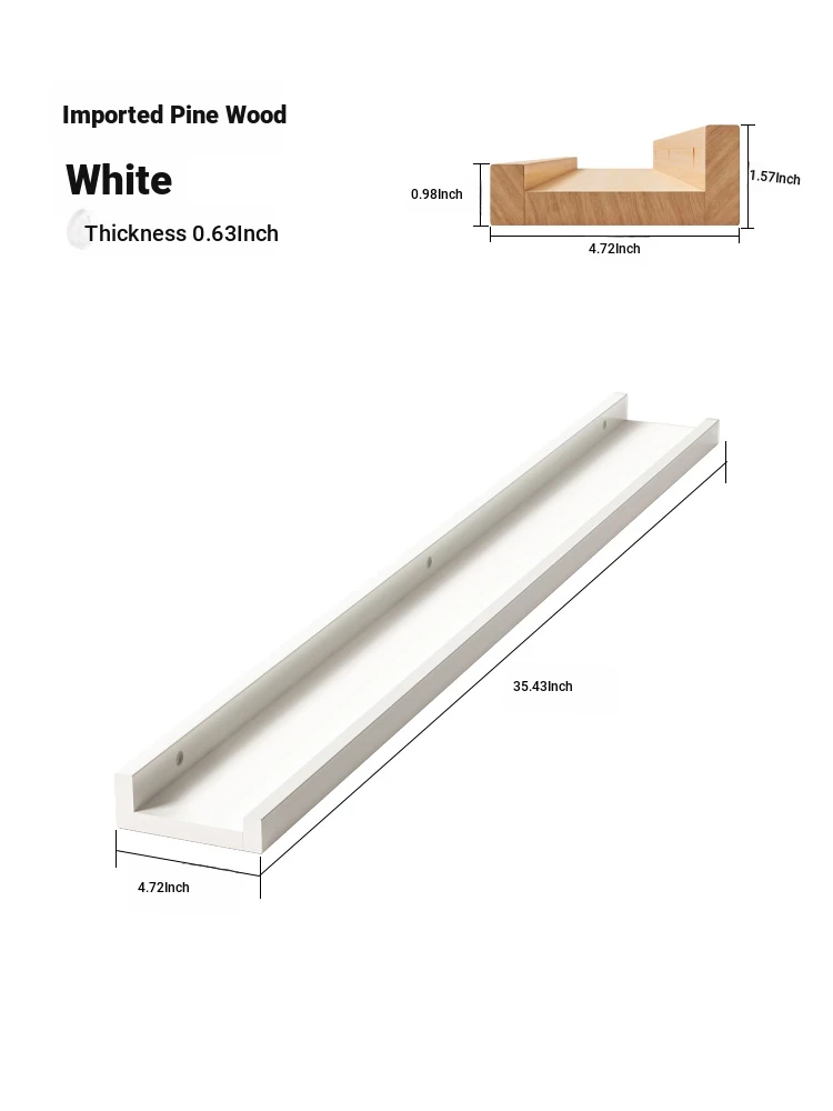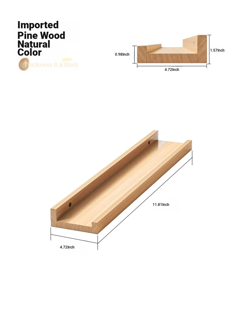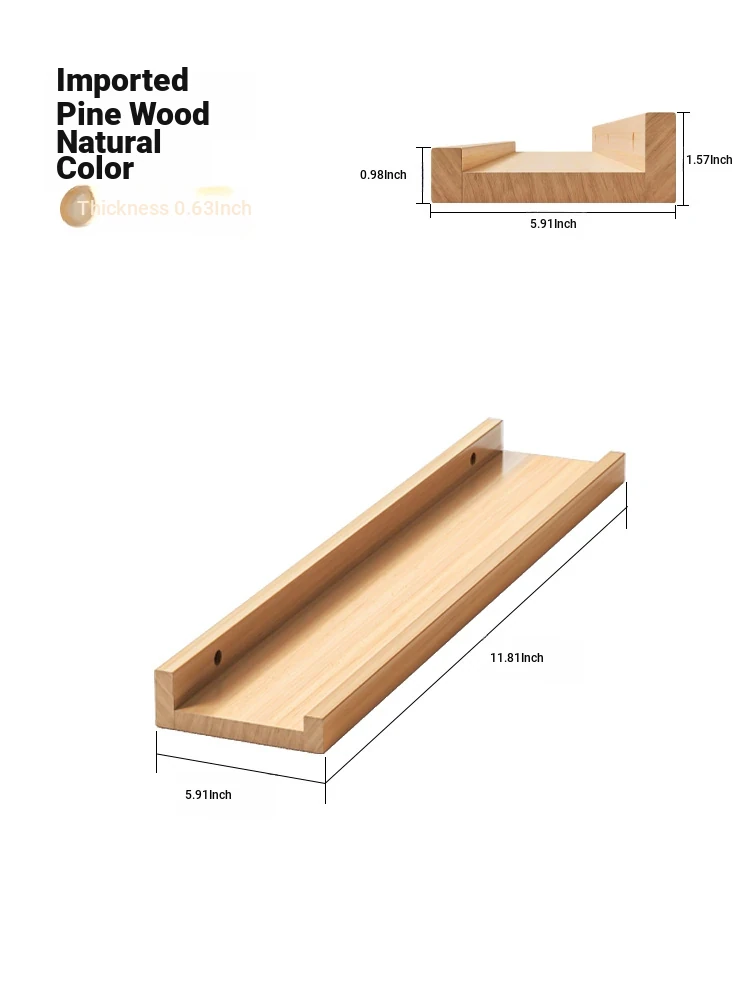 No-Drill Solid Wood Wall Shelf - Sleek Floating Display Rack for Living Room Accent Walls, Perfect for Home Décor and Organization