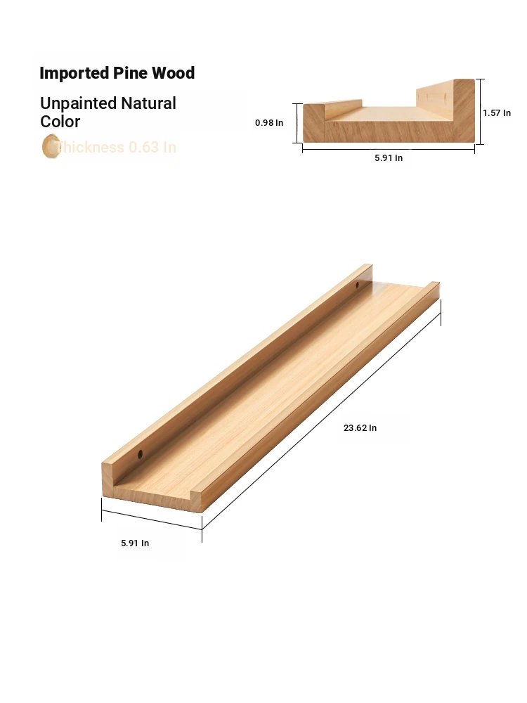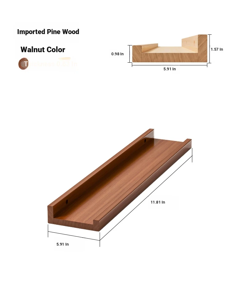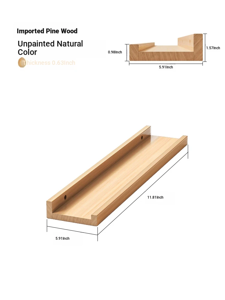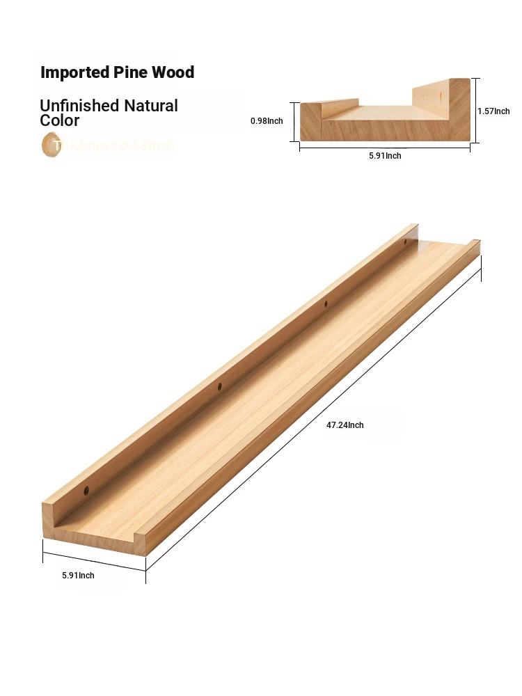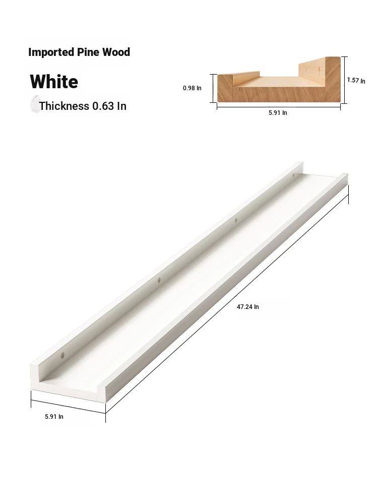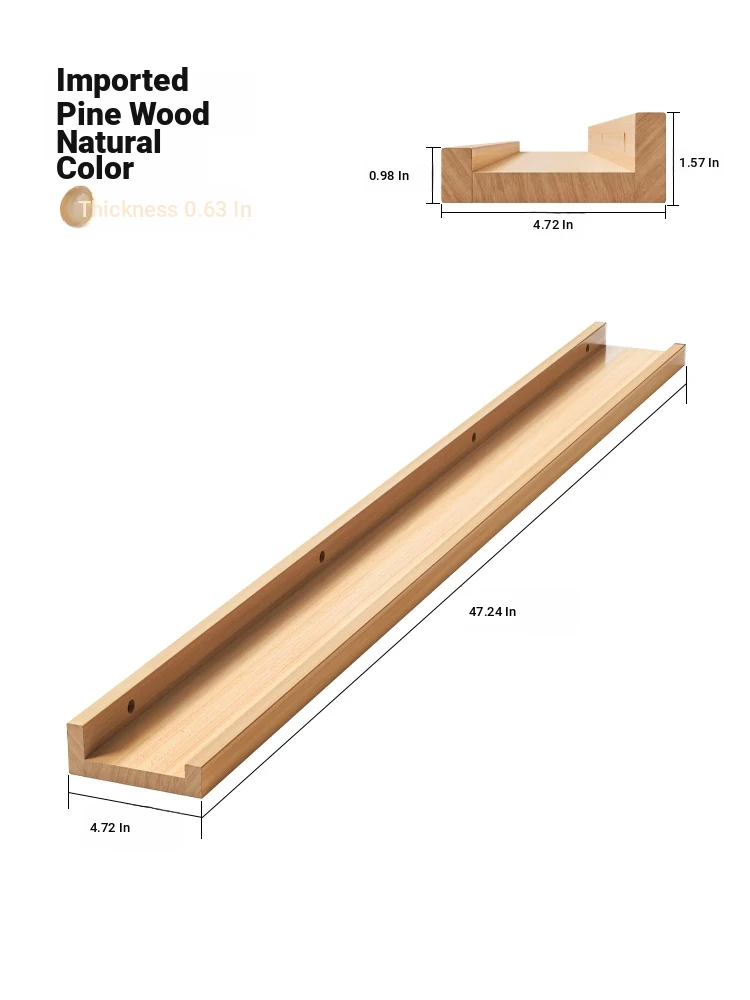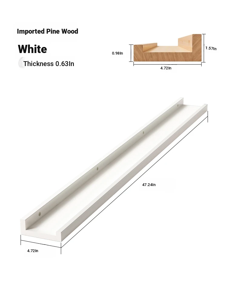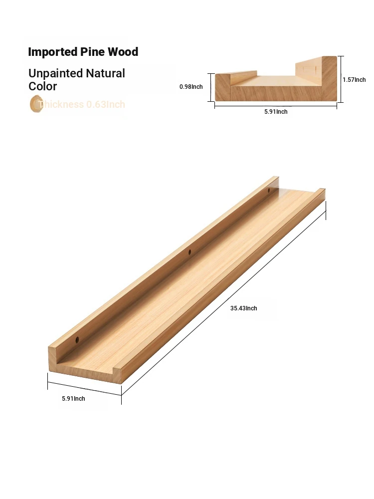 No-Drill Solid Wood Wall Shelf - Sleek Floating Display Rack for Living Room Accent Walls, Perfect for Home Décor and Organization