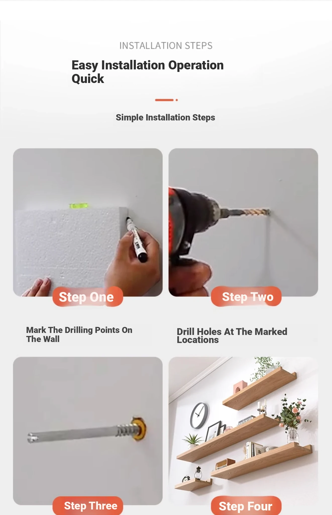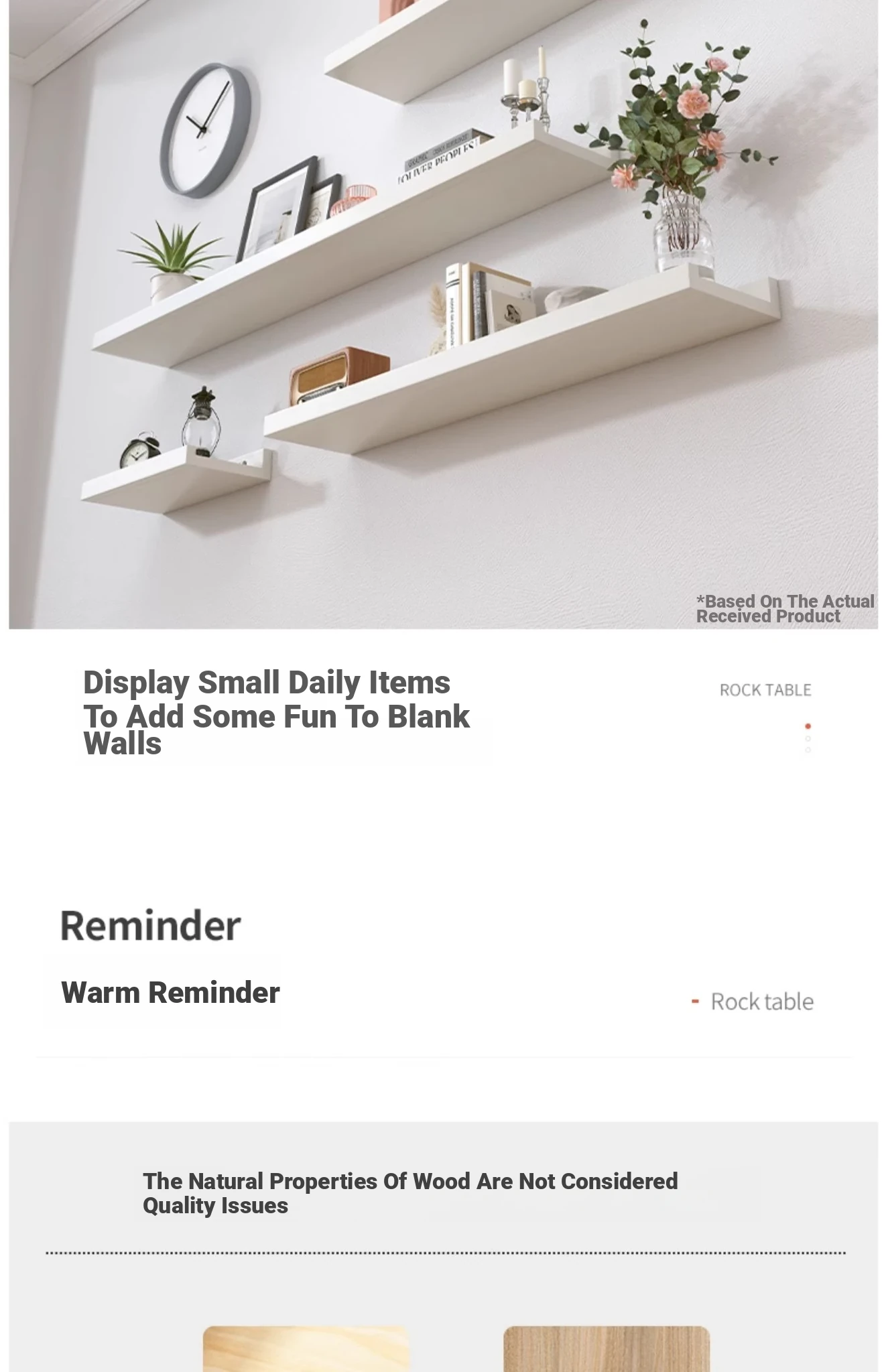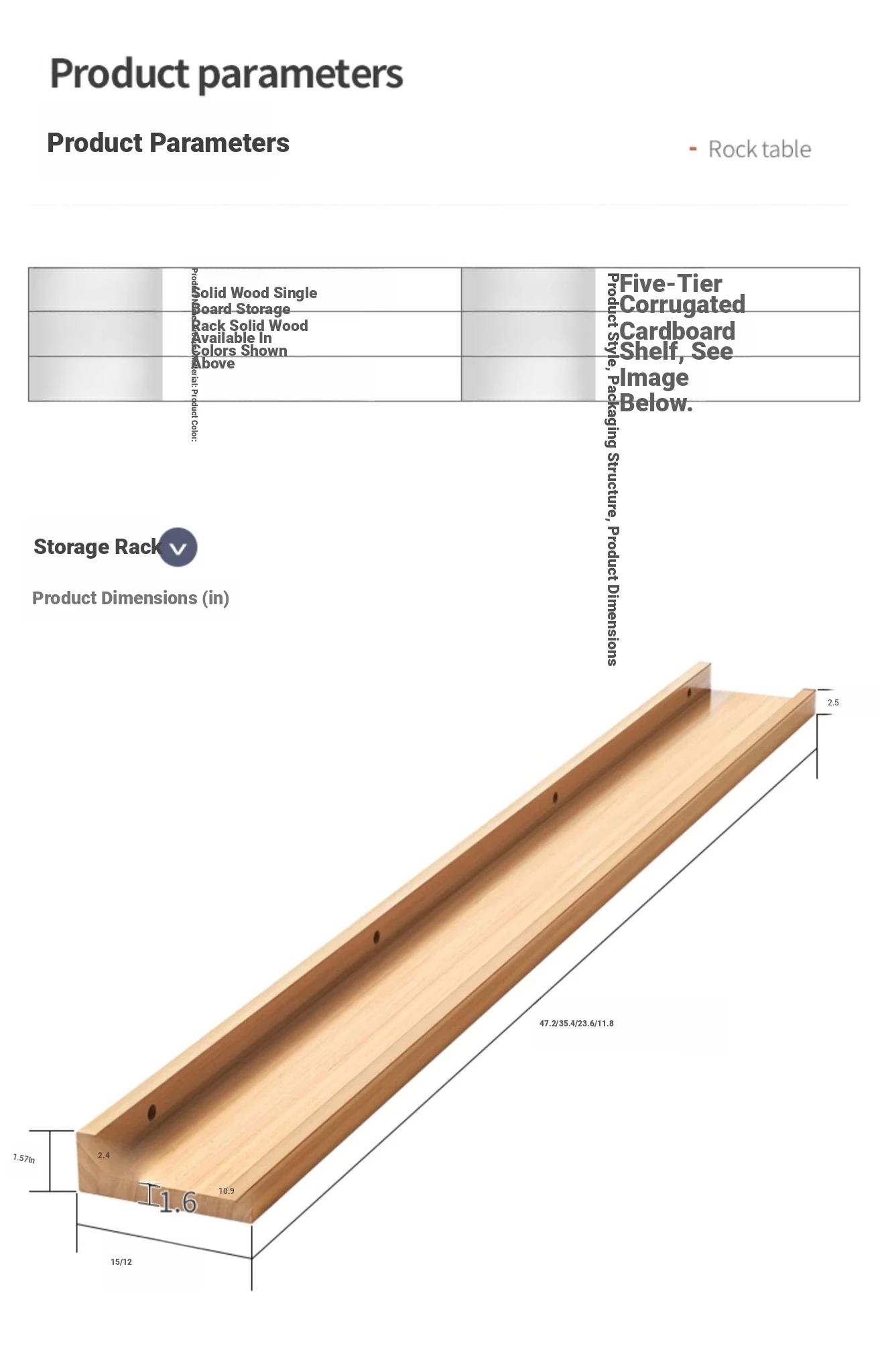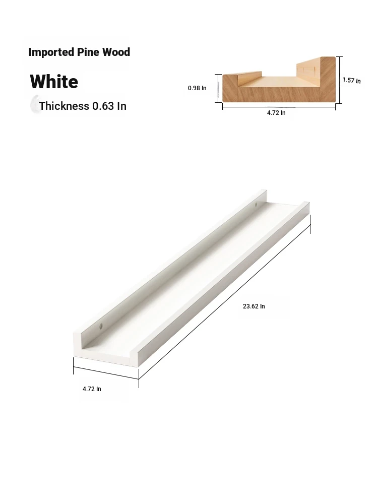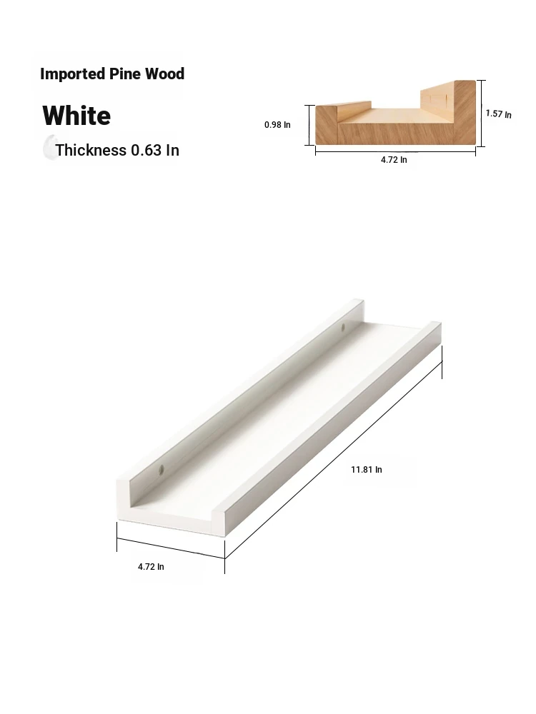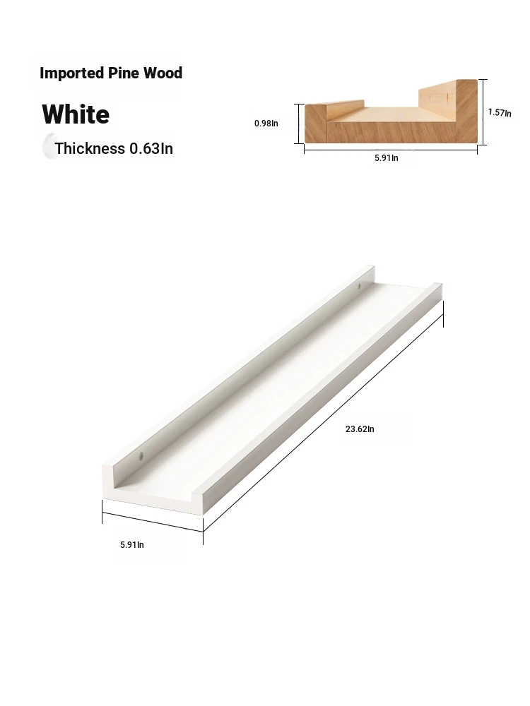 No-Drill Solid Wood Wall Shelf - Sleek Floating Display Rack for Living Room Accent Walls, Perfect for Home Décor and Organization