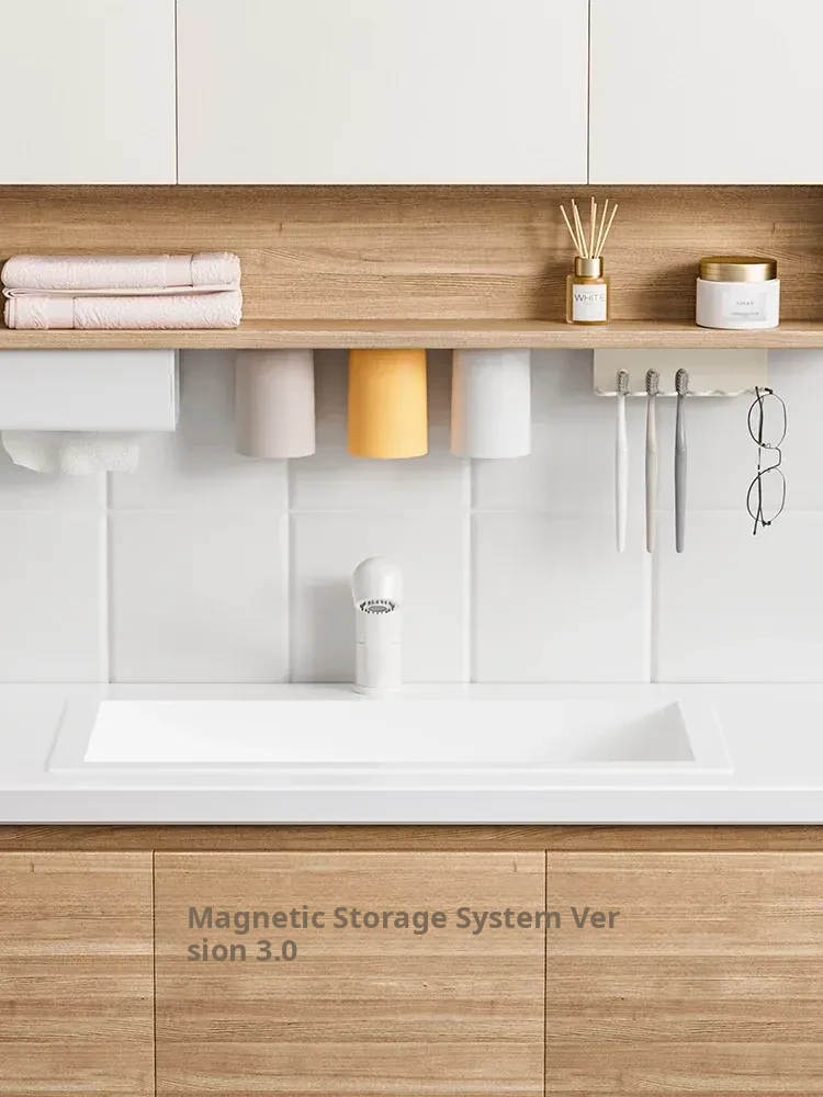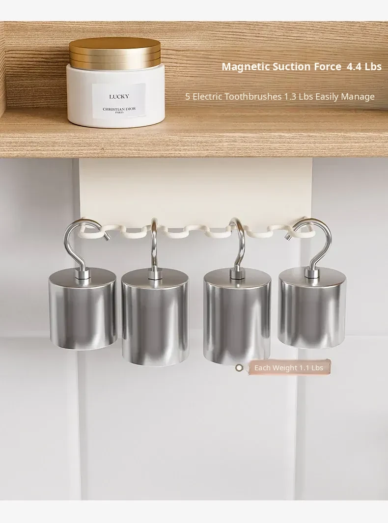 No-Drill Wall-Mounted Drainage Storage Rack for Toothbrushes and Cups - Magnetic Toothbrush Holder for Family of Four - Perfect for Bathroom Organization