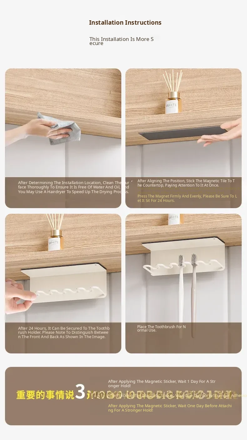 [No Magnetic Stickers] Three-Position Toothbrush Holder