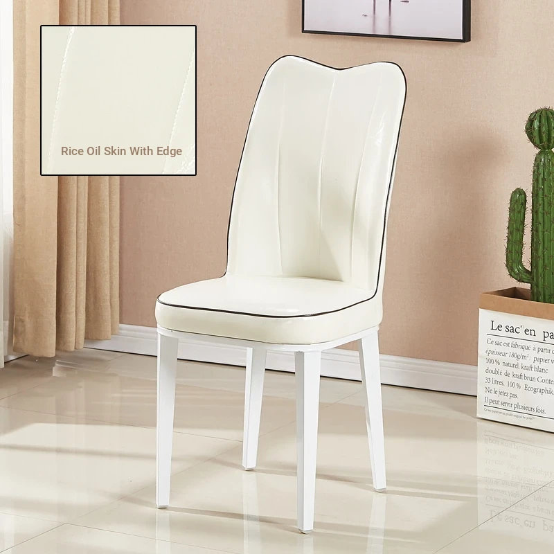 White Oil Leather Edge Wrought Iron White Chair Legs
