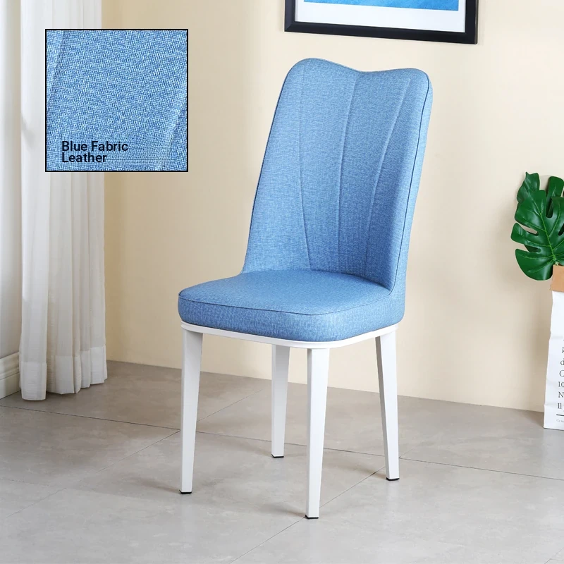 Blue Imitation Fabric Leather Wrought Iron White Chair Legs