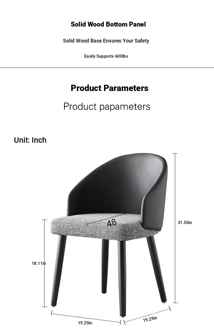 Nordic Minimalist Solid Wood Dining Chair - Modern Light Luxury Upholstered Fabric for Hotels & Designer Homes - Comfortable High-Back Chair for Long Sitting