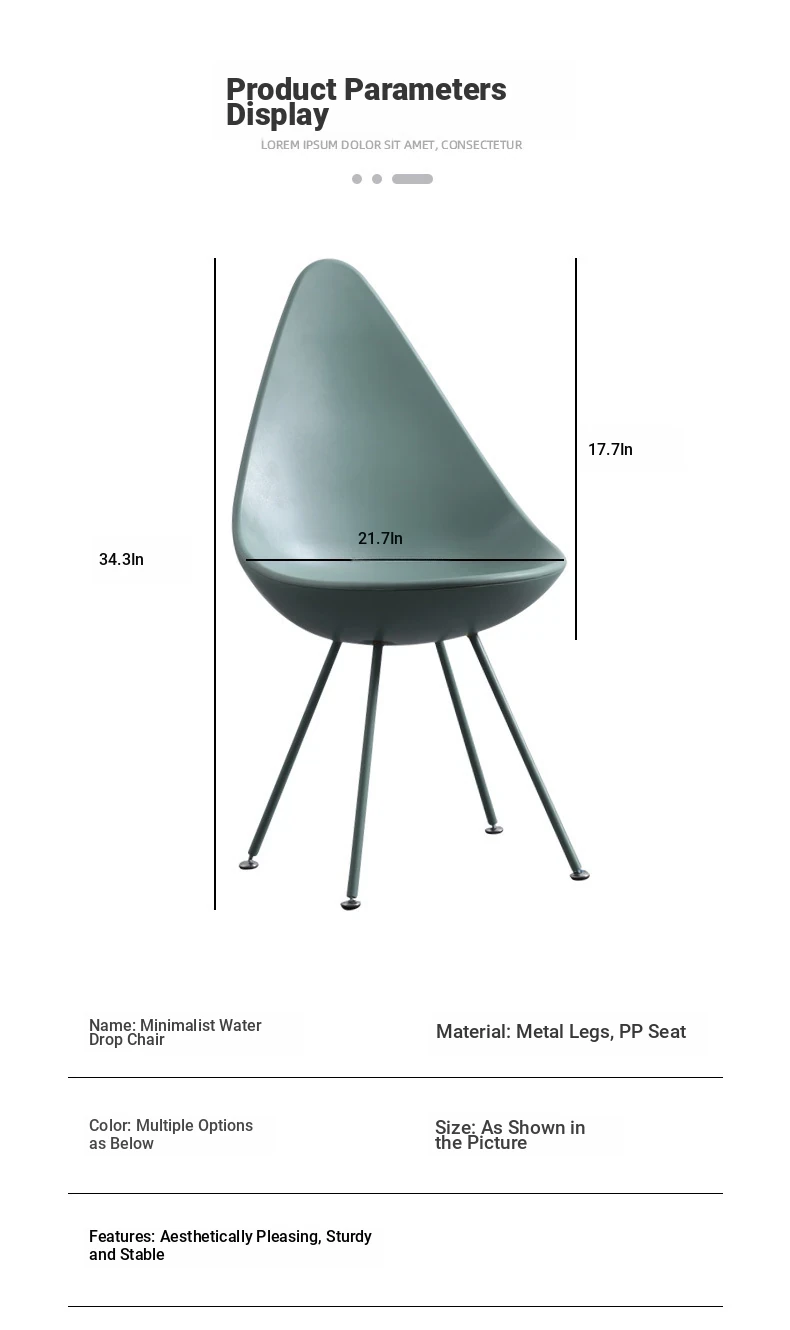 Nordic Plastic Water Drop Dining Chair - Designer Backrest for Adults, Lightweight Luxury Home Chair, Minimalist Style Perfect for Milk Tea Shops and Cafés