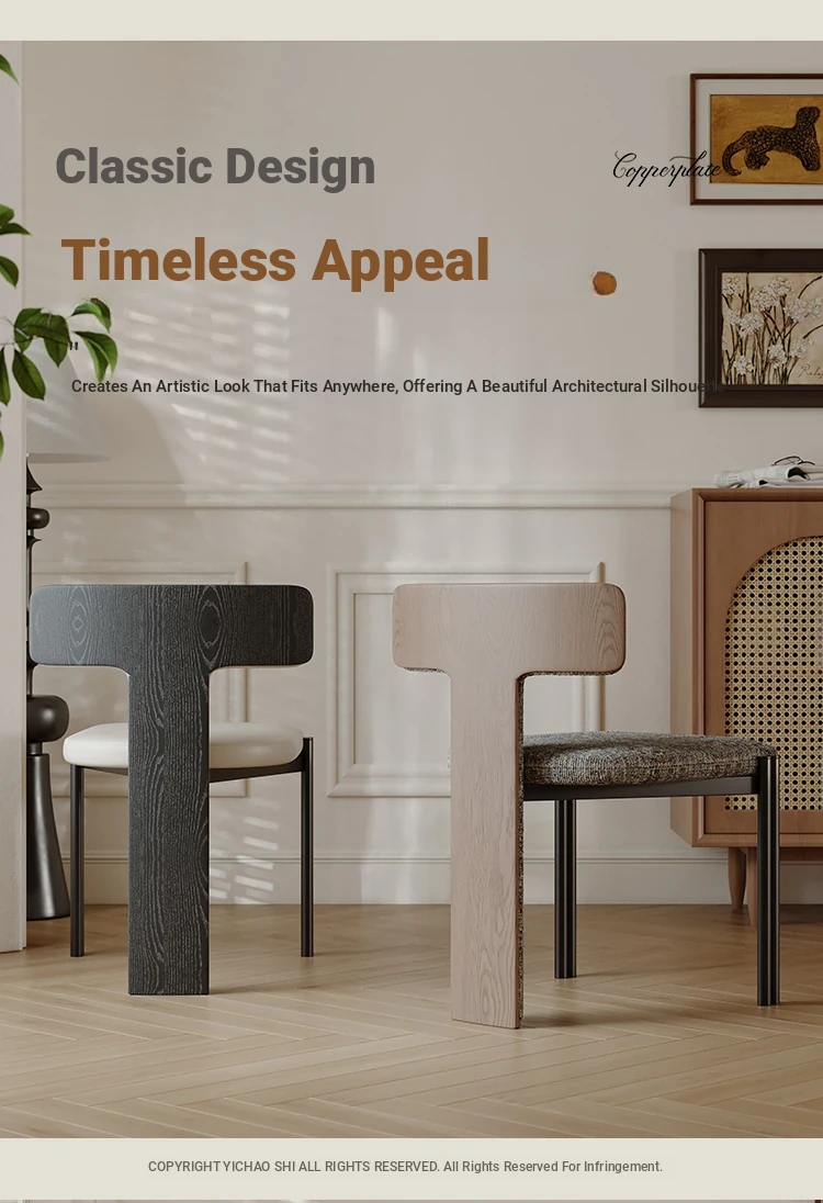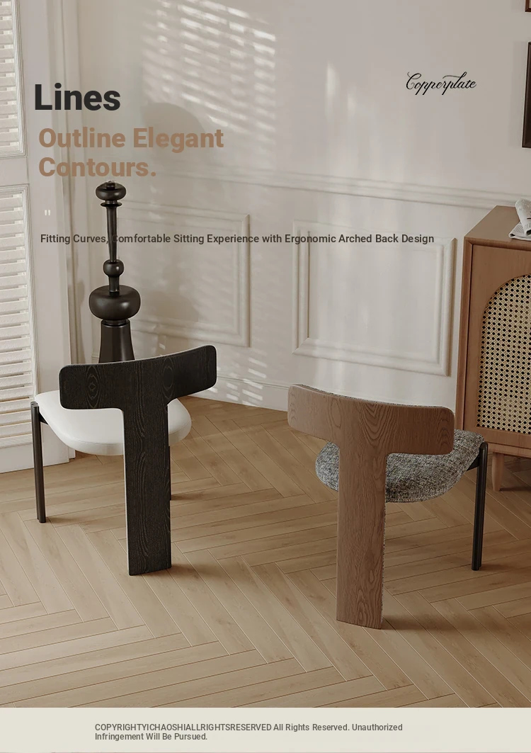 Nordic Solid Wood Dining Chair - High-End Designer Chair for Hotels, Minimalist Style, Curved Ash Wood with Premium Genuine Leather Upholstery, Perfect for Model Rooms