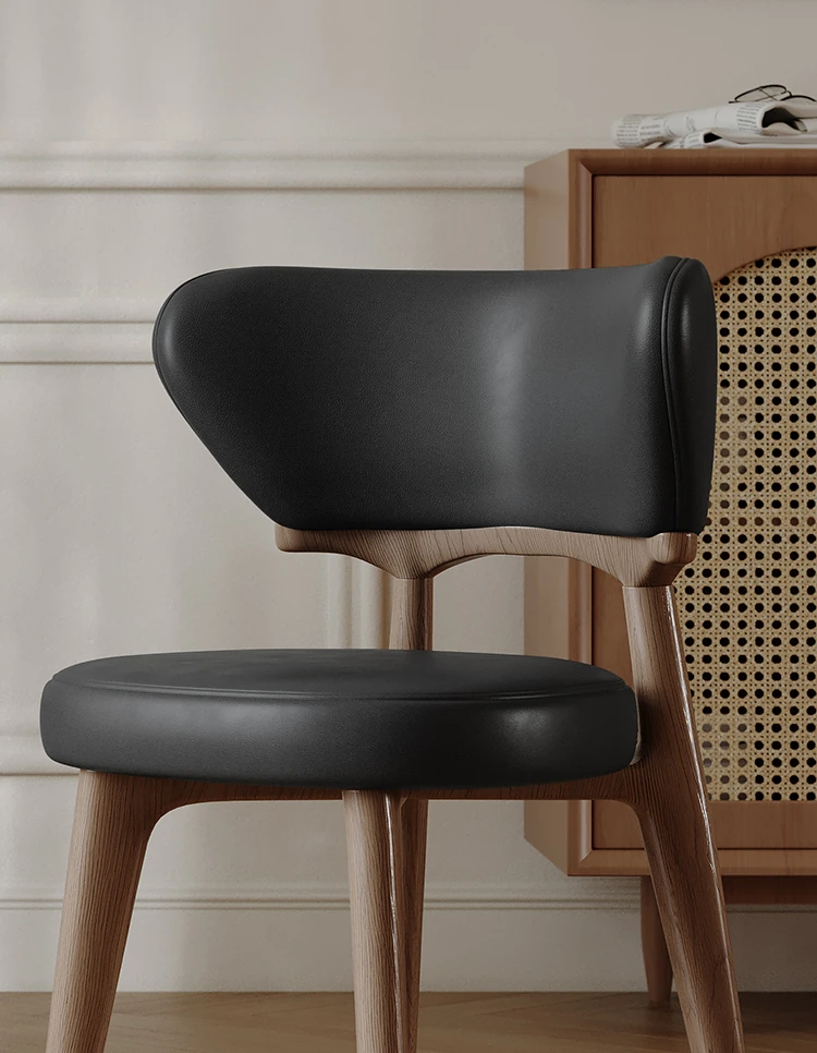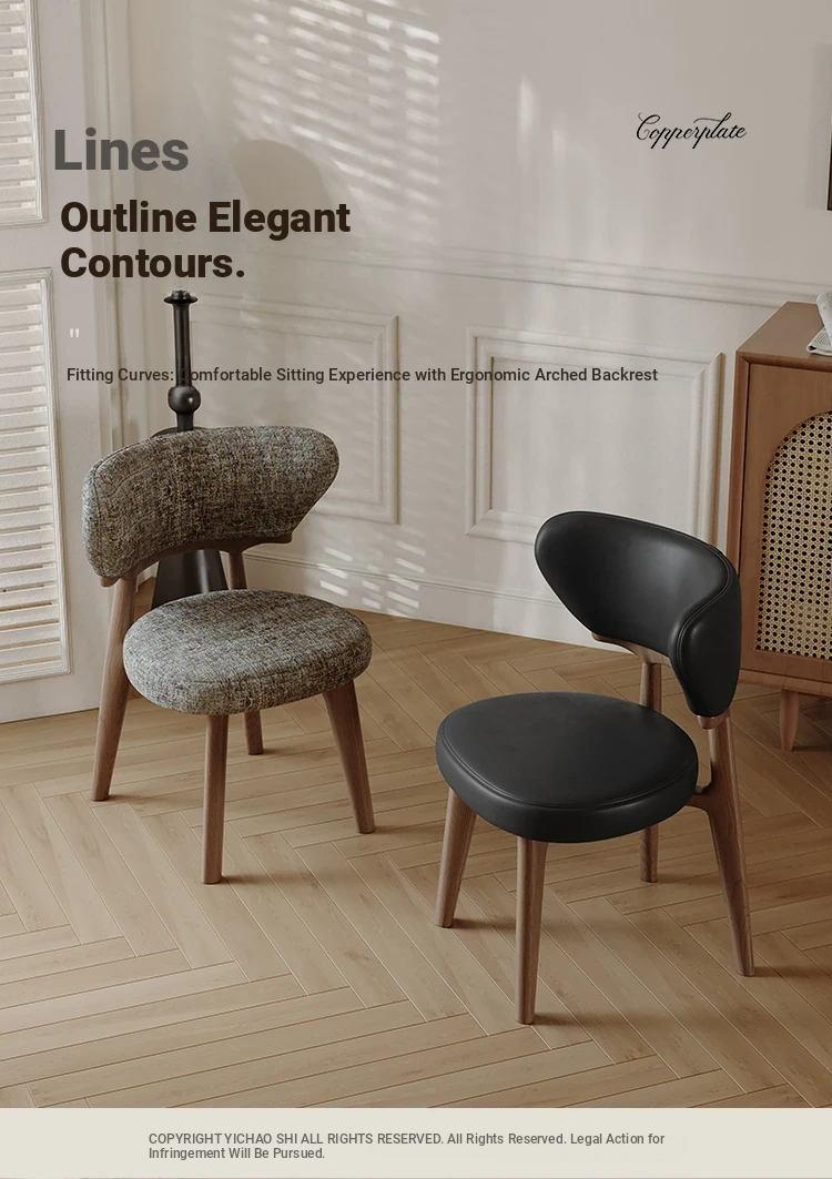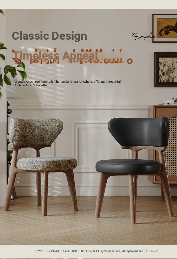 Nordic Solid Wood Dining Chair - Premium Home & Hotel Designer Leather Chair, Vintage Cream Style Relaxed Backrest Stool