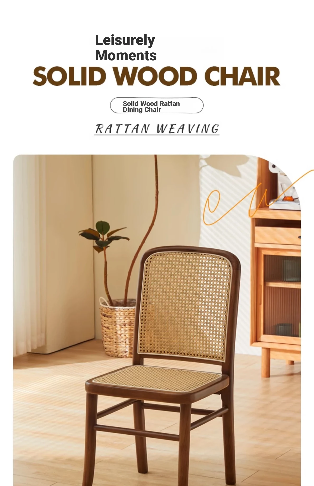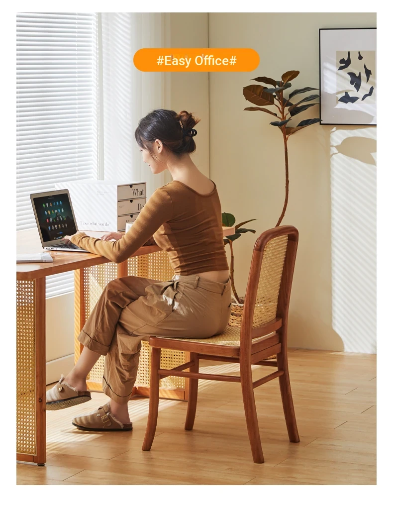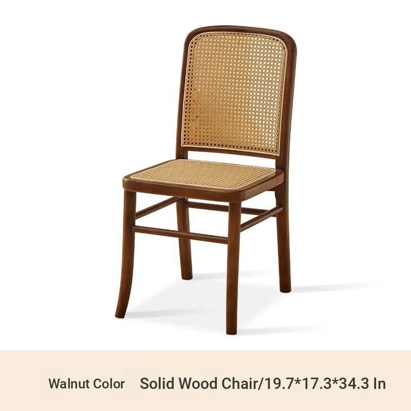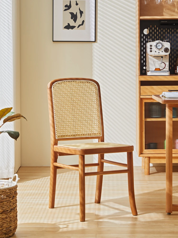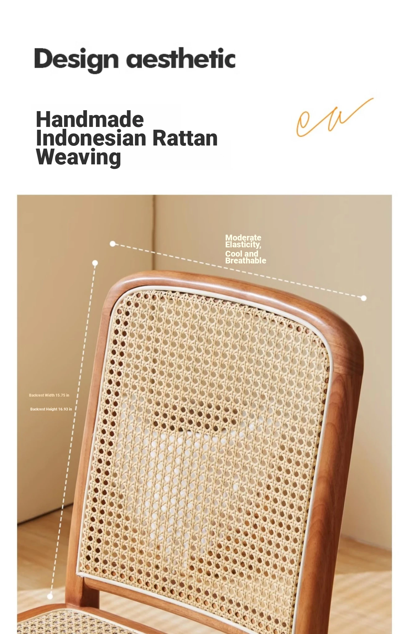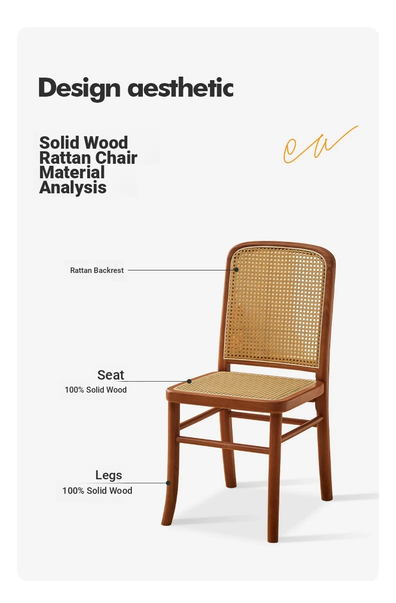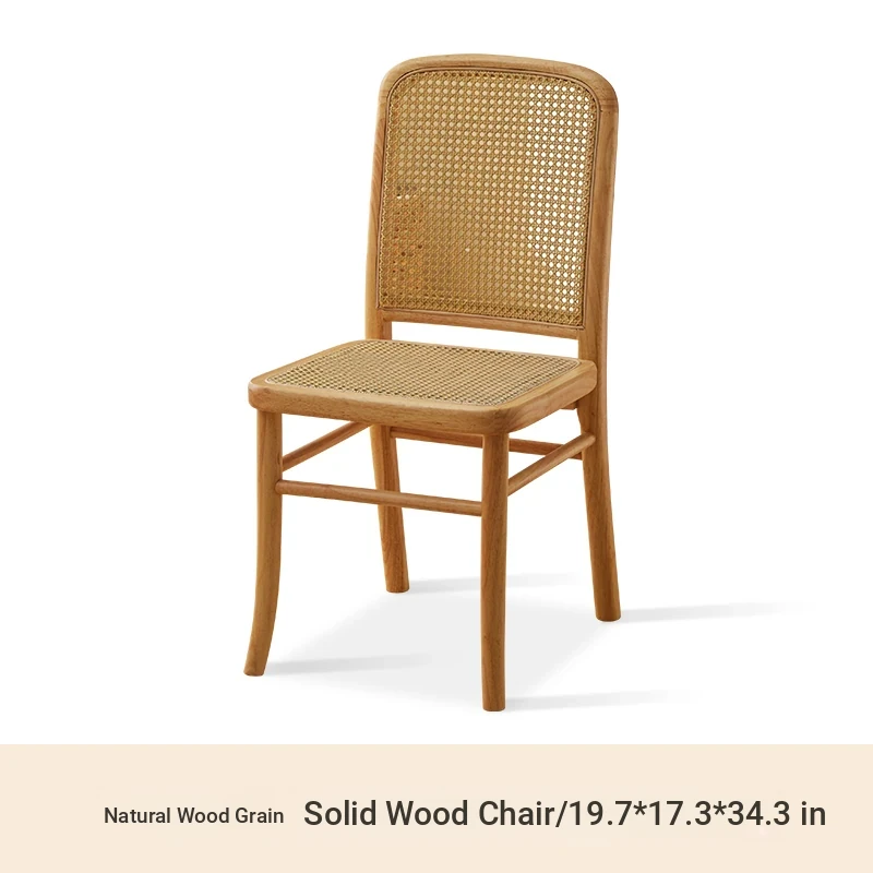 Nordic Solid Wood Dining Chair with Rattan Weaving – Aesthetic Wabi-Sabi Style for Home Dining, Study, and Guesthouse Use – Comfortable Backrest, Perfect for Relaxation and Style