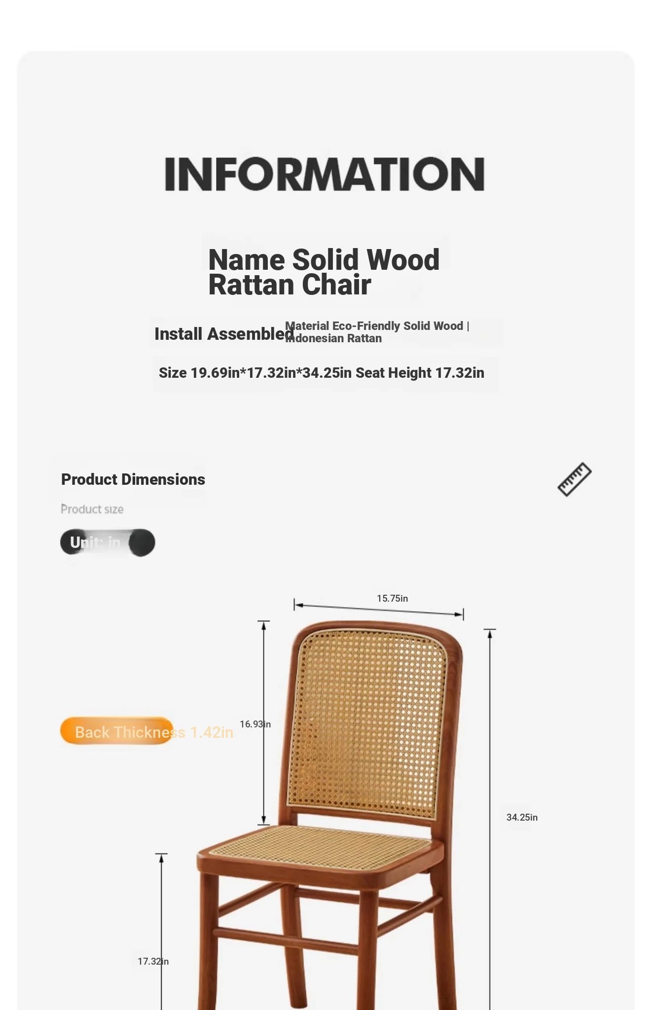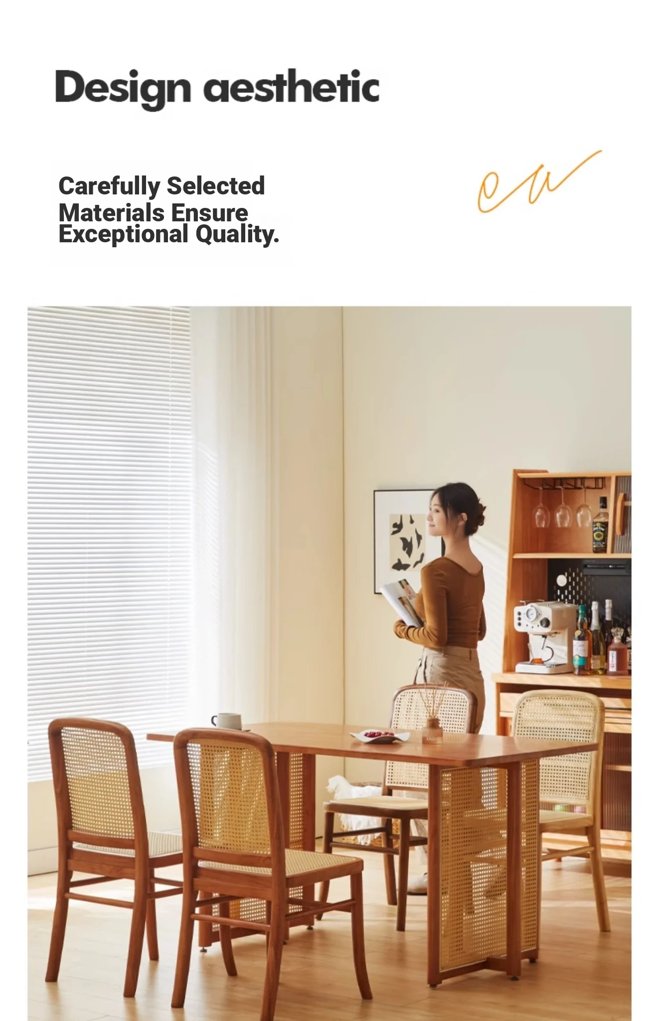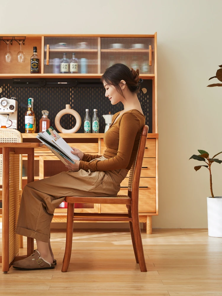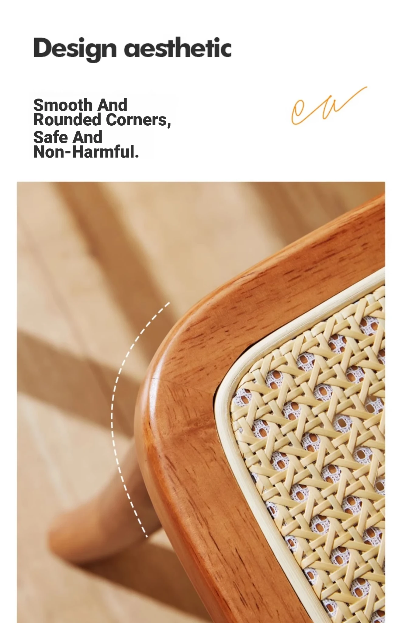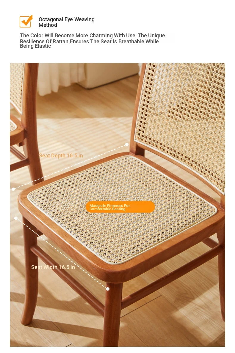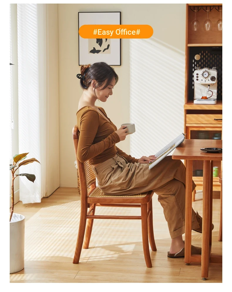Nordic Solid Wood Dining Chair with Rattan Weaving – Aesthetic Wabi-Sabi Style for Home Dining, Study, and Guesthouse Use – Comfortable Backrest, Perfect for Relaxation and Style