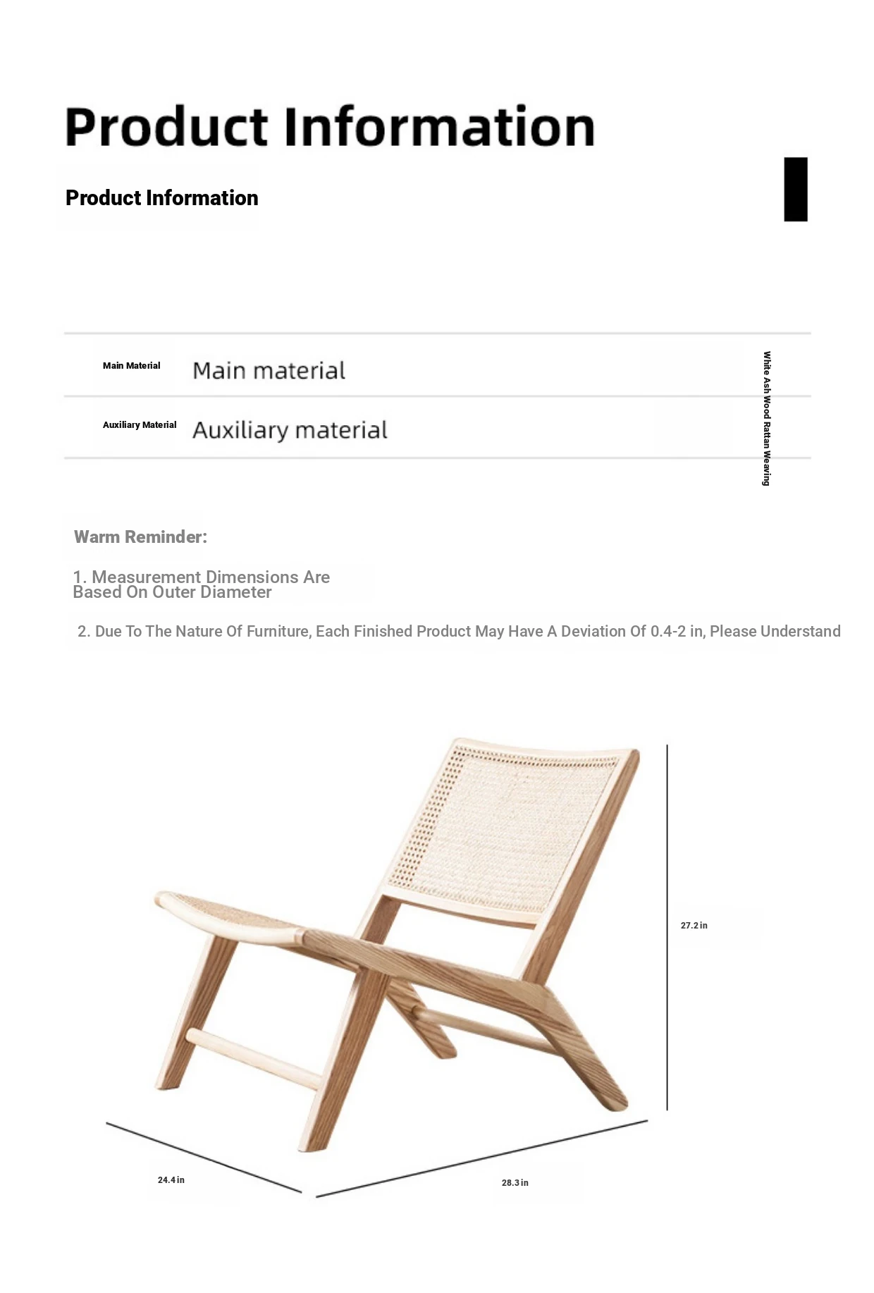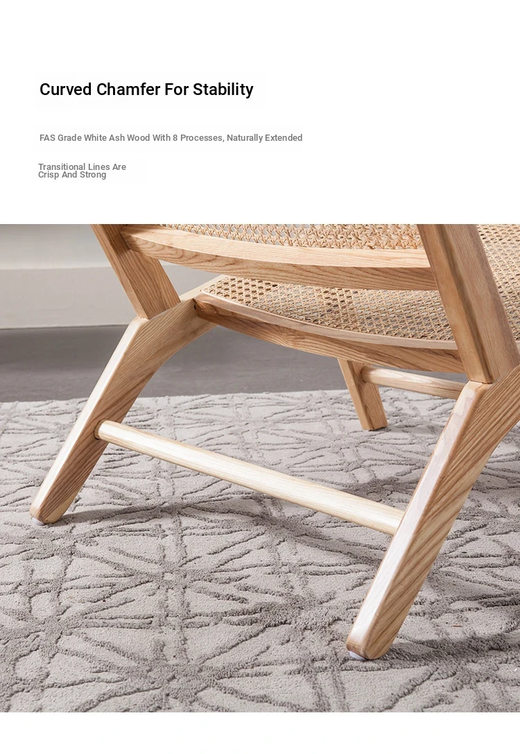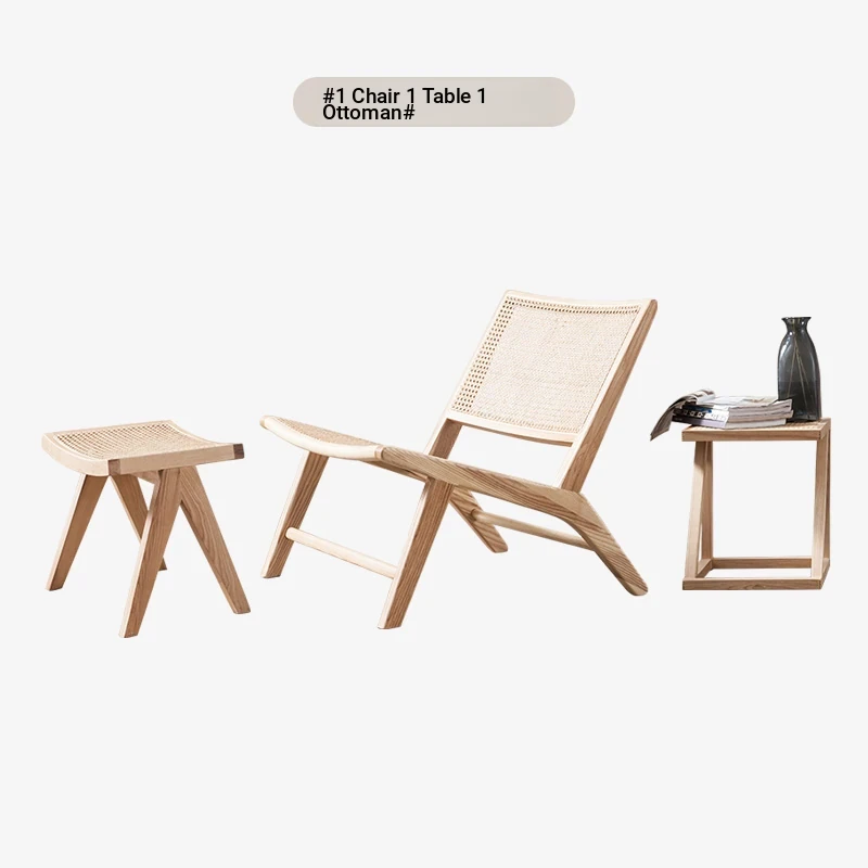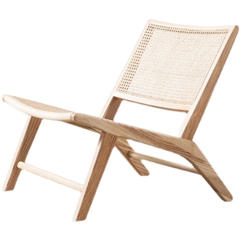 Nordic Solid Wood Rattan Lounge Chair - Modern Minimalist Single Balcony Recliner, Perfect for Indoor Reading and Relaxation.
