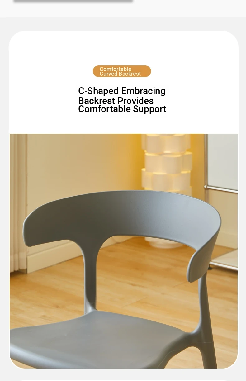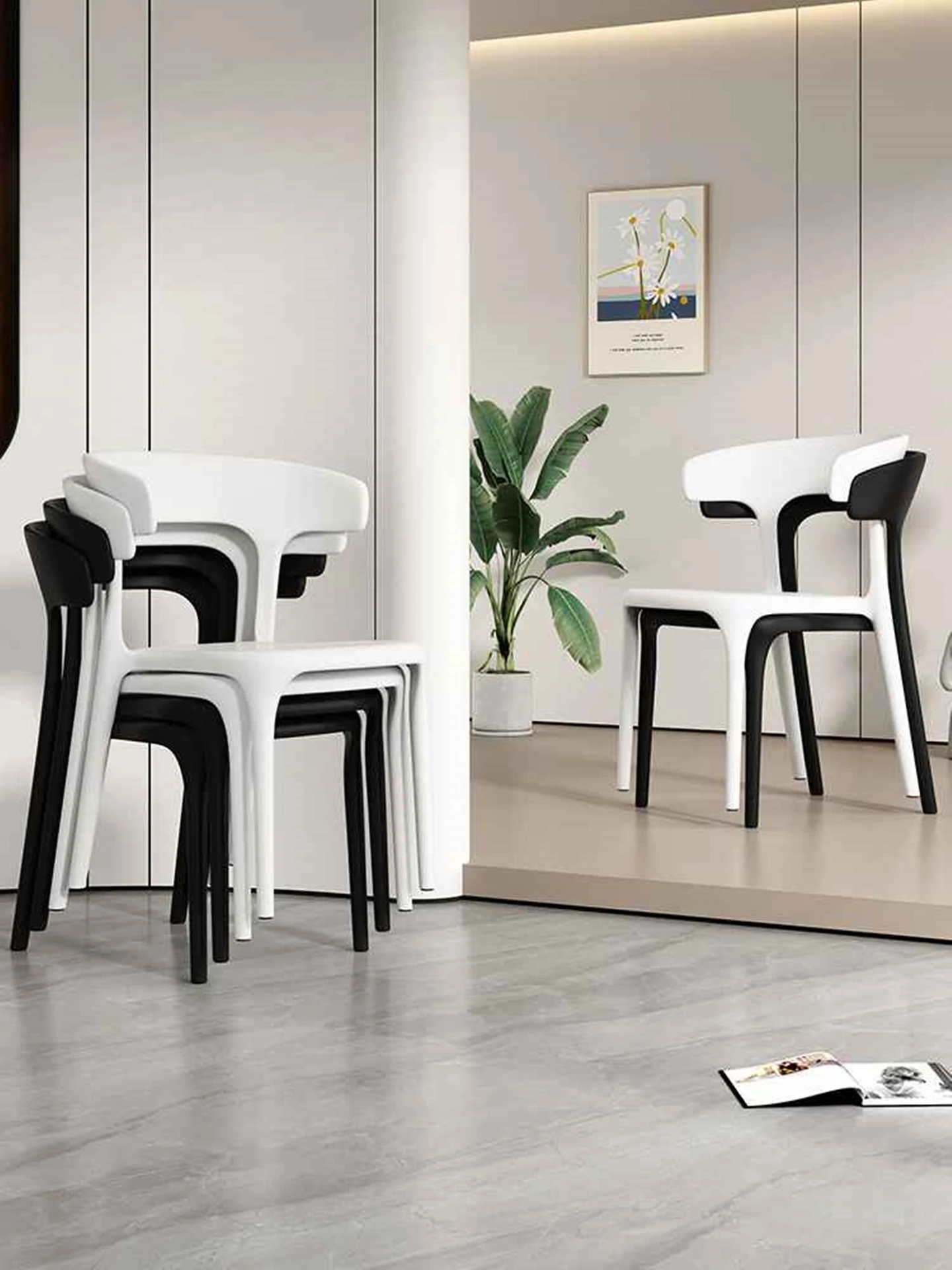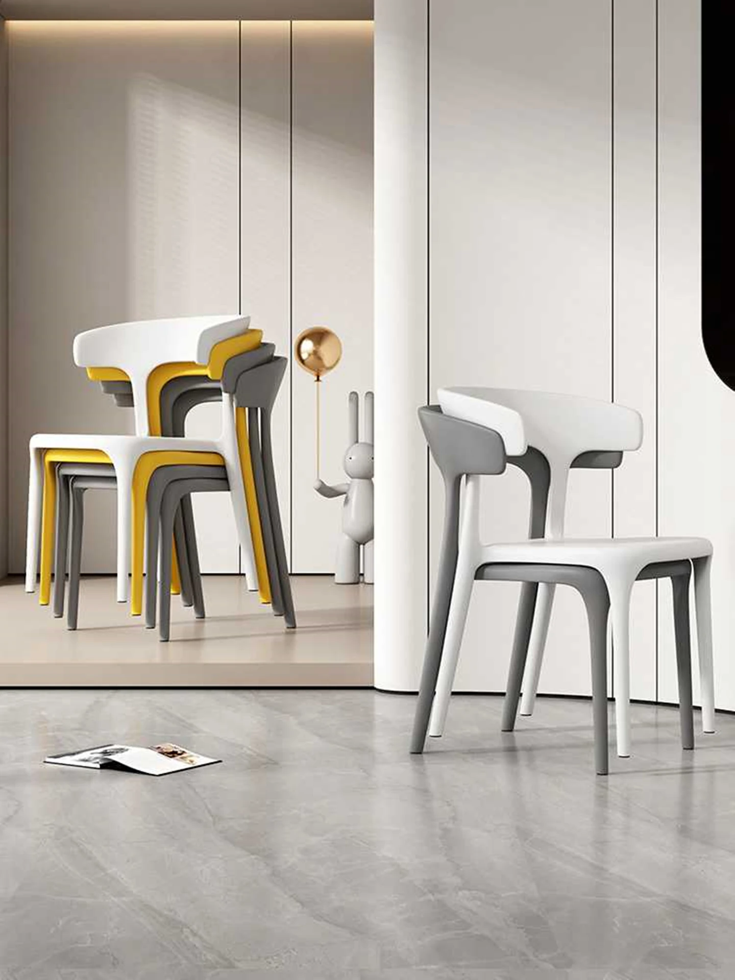 Nordic Style Plastic Backrest Chair - Versatile Dining and Office Stool for Home Use, Minimalist Design, Comfortable and Relaxing, Perfect for Casual Settings and Commercial Spaces.