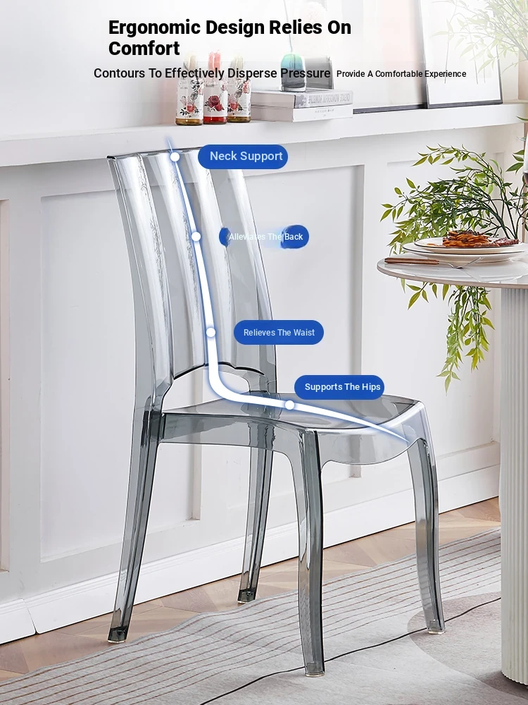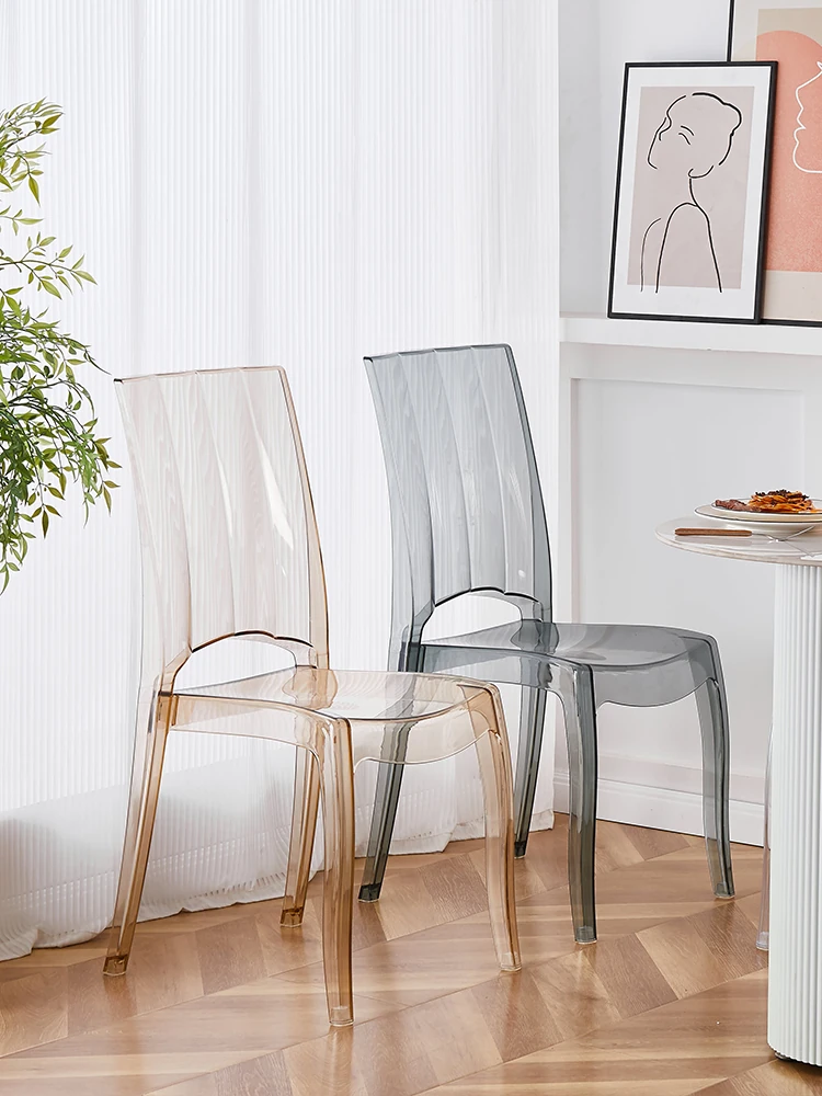 Nordic Transparent Acrylic Chair - Designer Luxury Backrest for Home Use, Minimalist Plastic Dining Chair, Crystal Makeup Stool