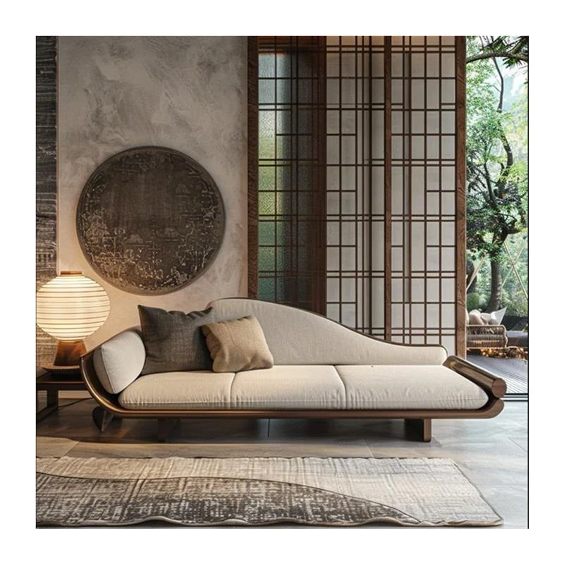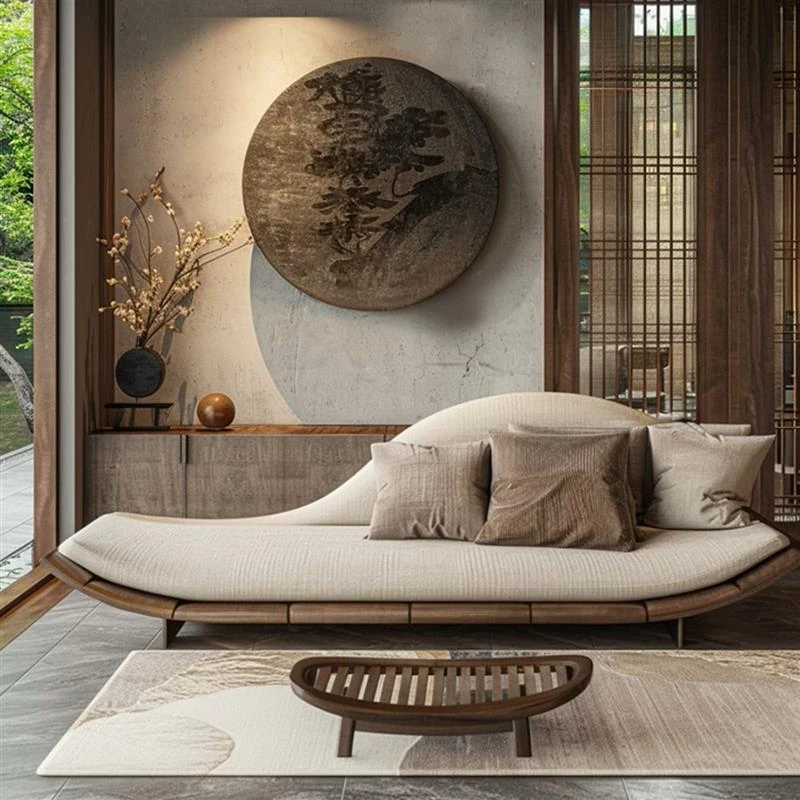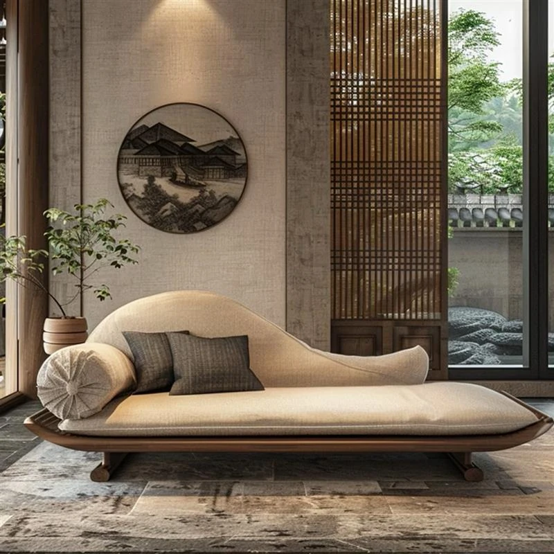 North American Black Walnut and Ash Wood Chaise Lounge - Elegant Sofa Bed for Living Room, Hotel, and Airbnb - Modern Chinese Zen Style Daybed