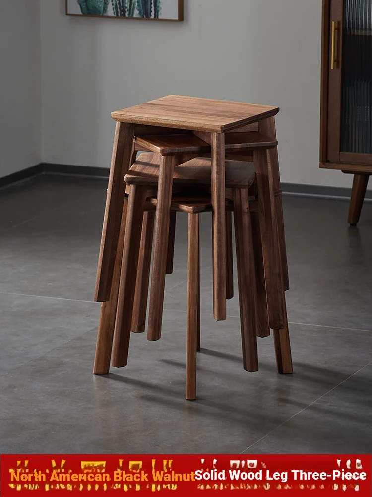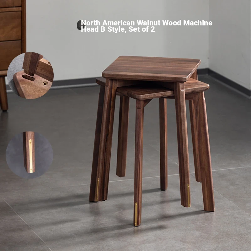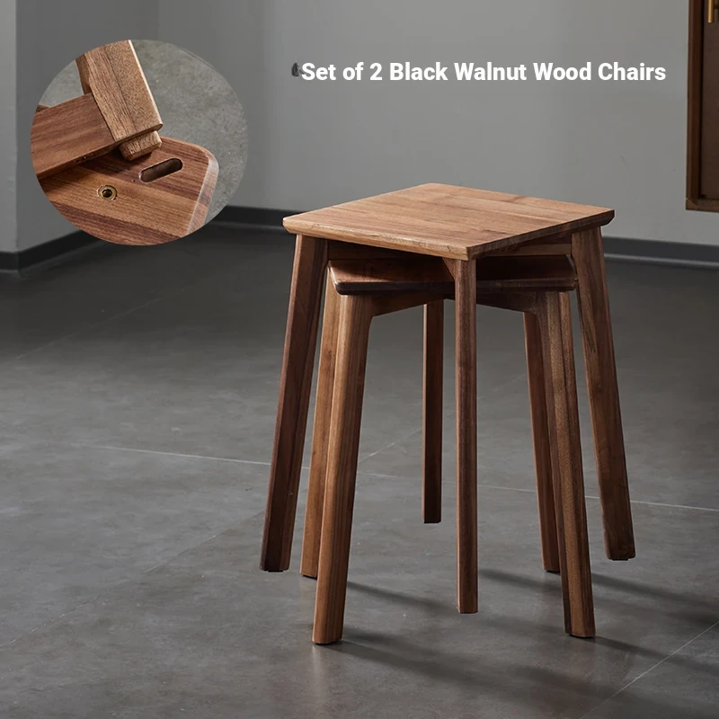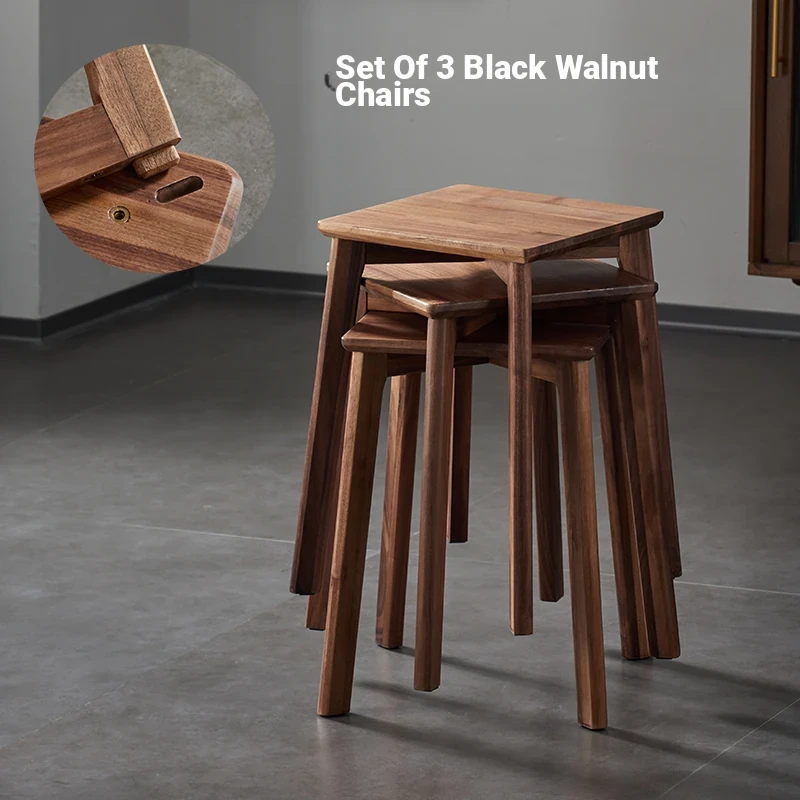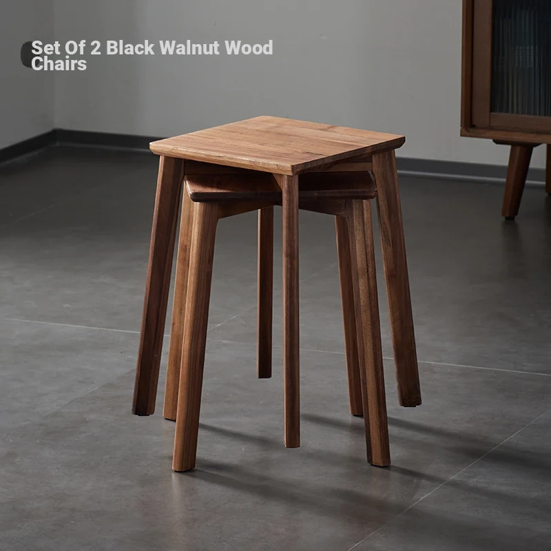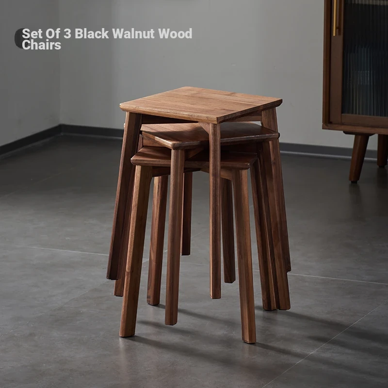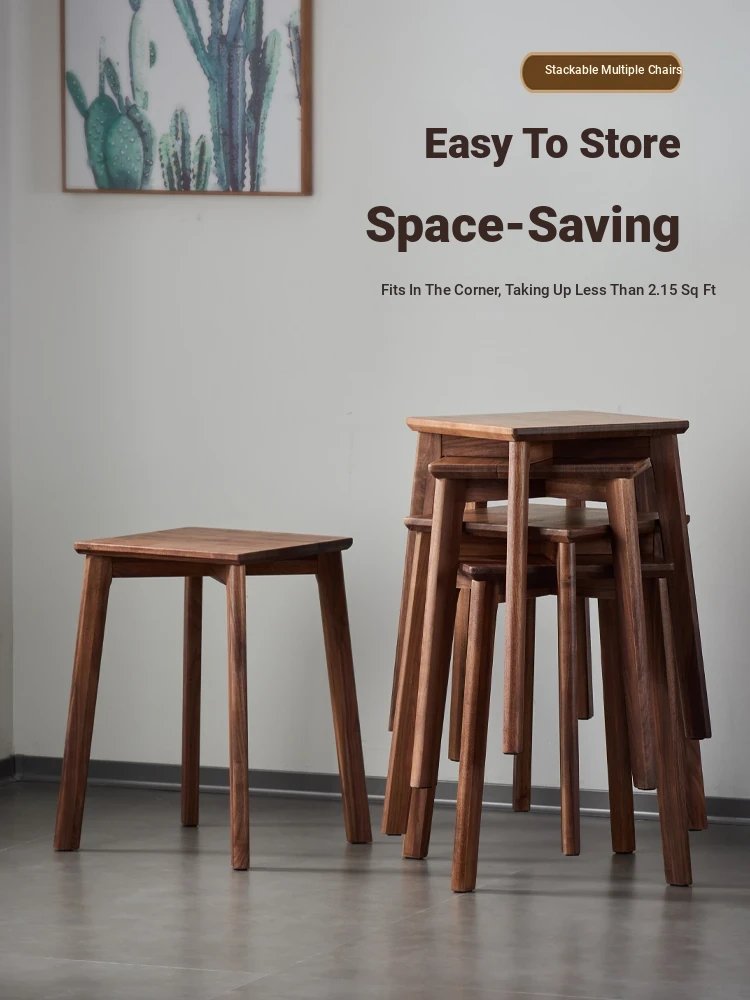 North American Black Walnut Solid Wood Stool - Stylish and Stackable Round Dining Bench, Perfect for Home Use, Ideal for Dining Tables and Versatile Seating Solutions.