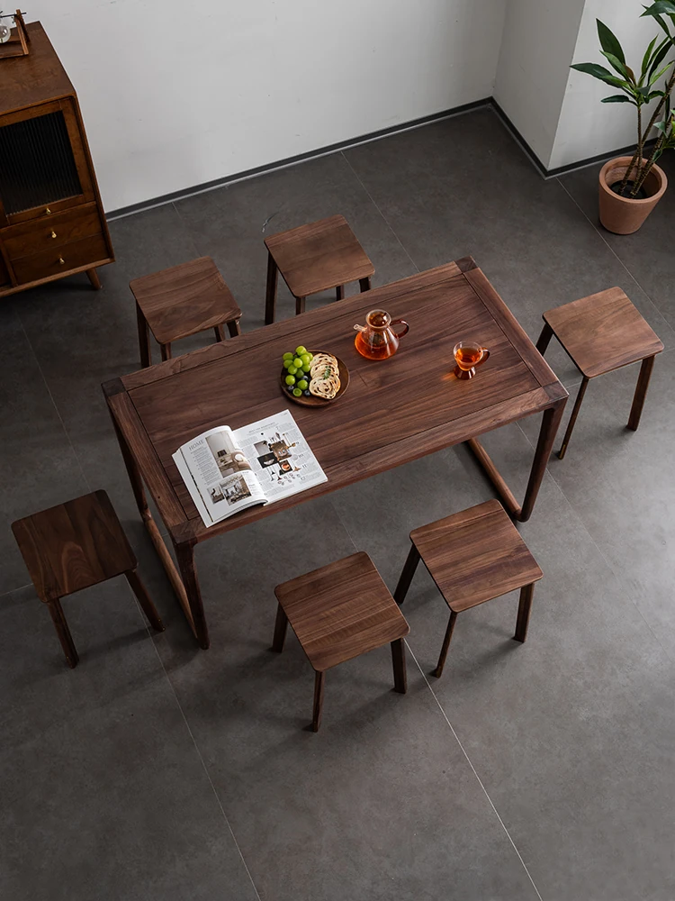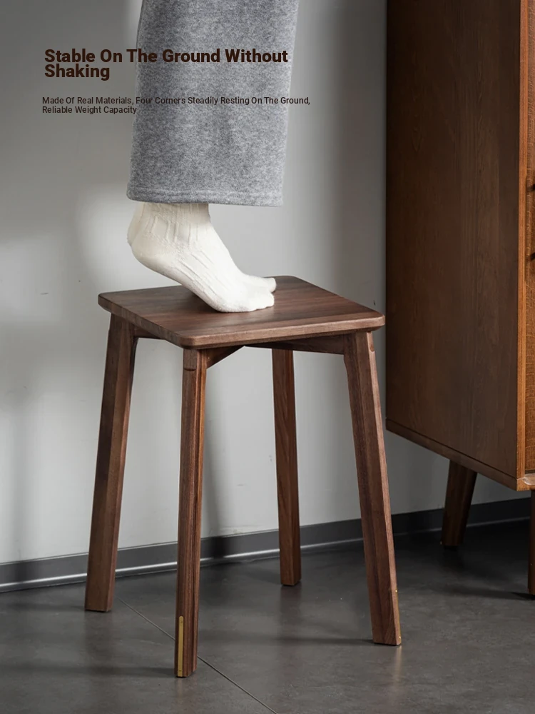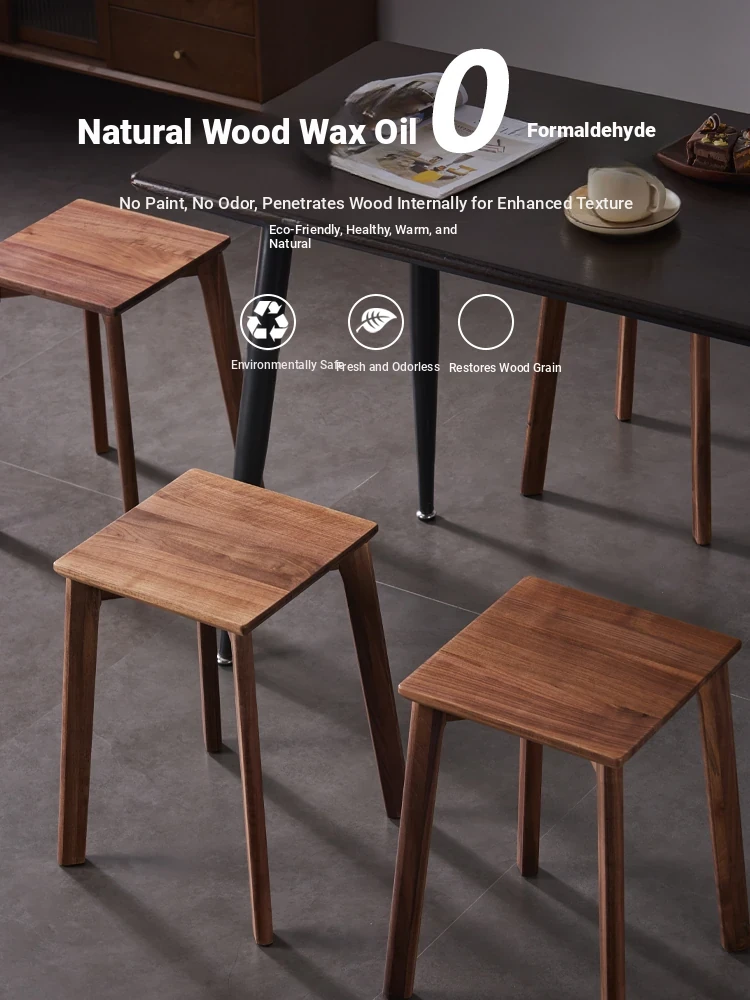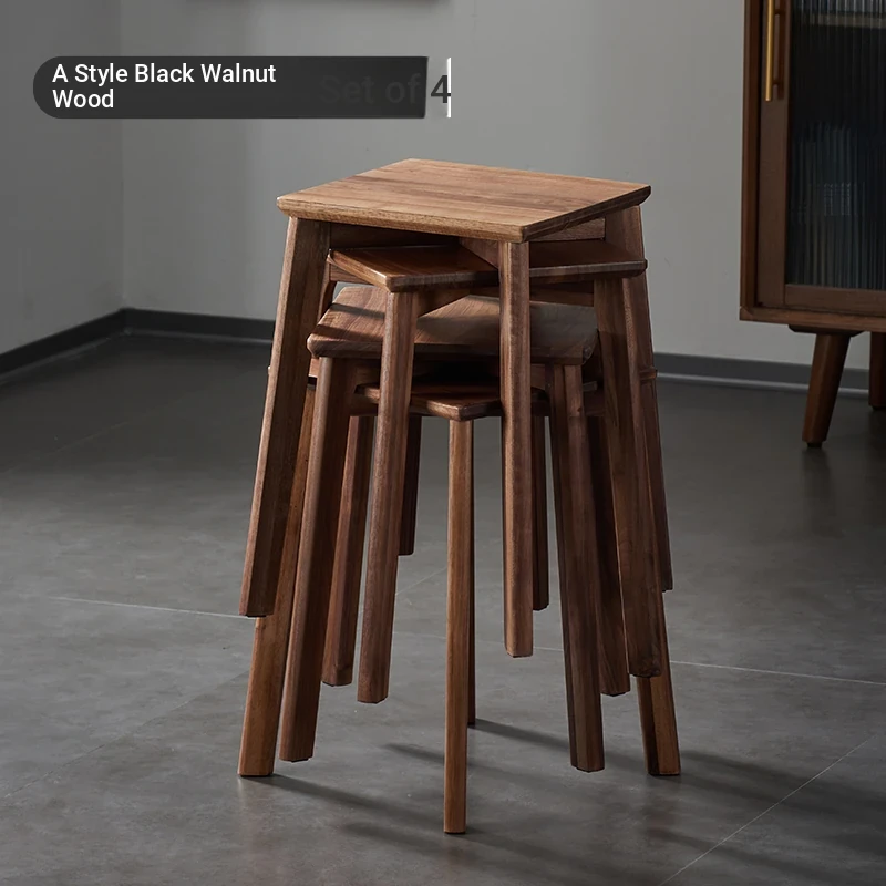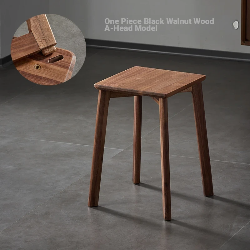 North American Black Walnut Solid Wood Stool - Stylish and Stackable Round Dining Bench, Perfect for Home Use, Ideal for Dining Tables and Versatile Seating Solutions.