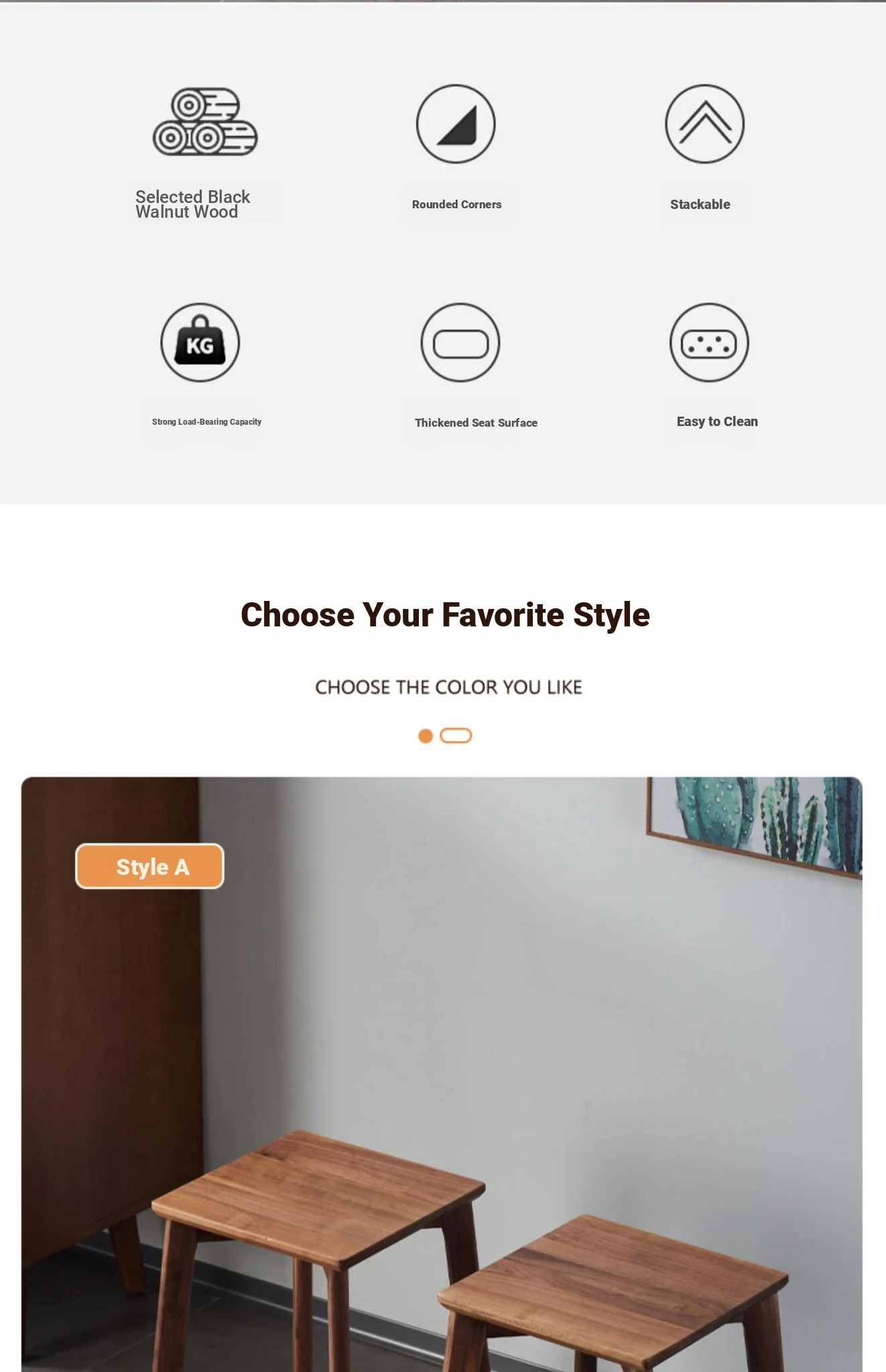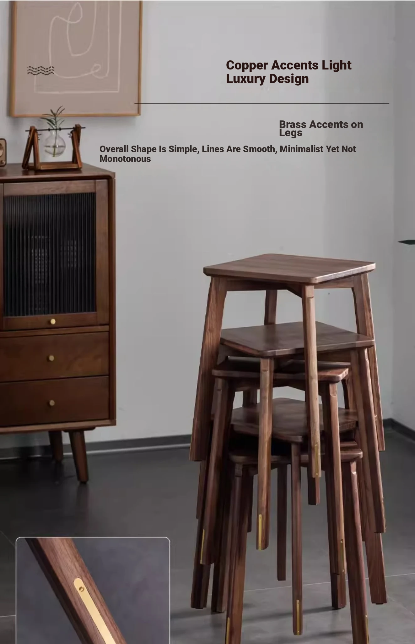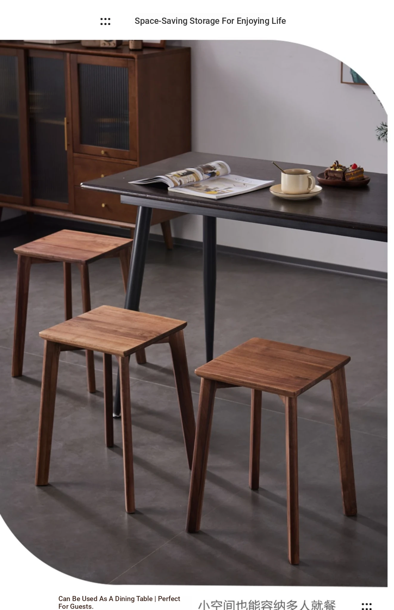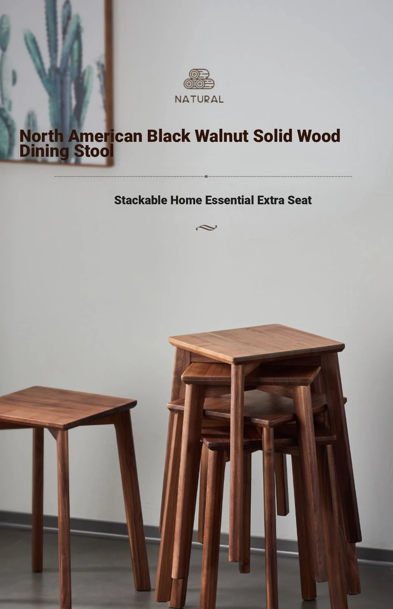 North American Black Walnut Solid Wood Stool - Stylish and Stackable Round Dining Bench, Perfect for Home Use, Ideal for Dining Tables and Versatile Seating Solutions.