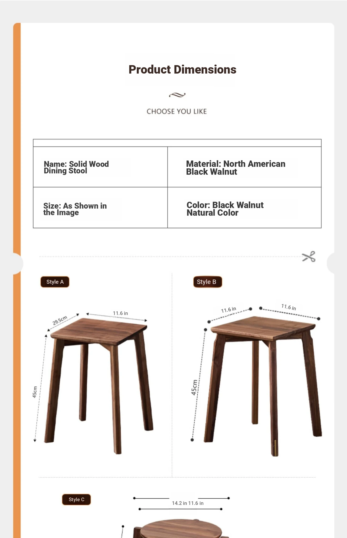 North American black walnut (Tenon B 1) spell leg stool surface four spell