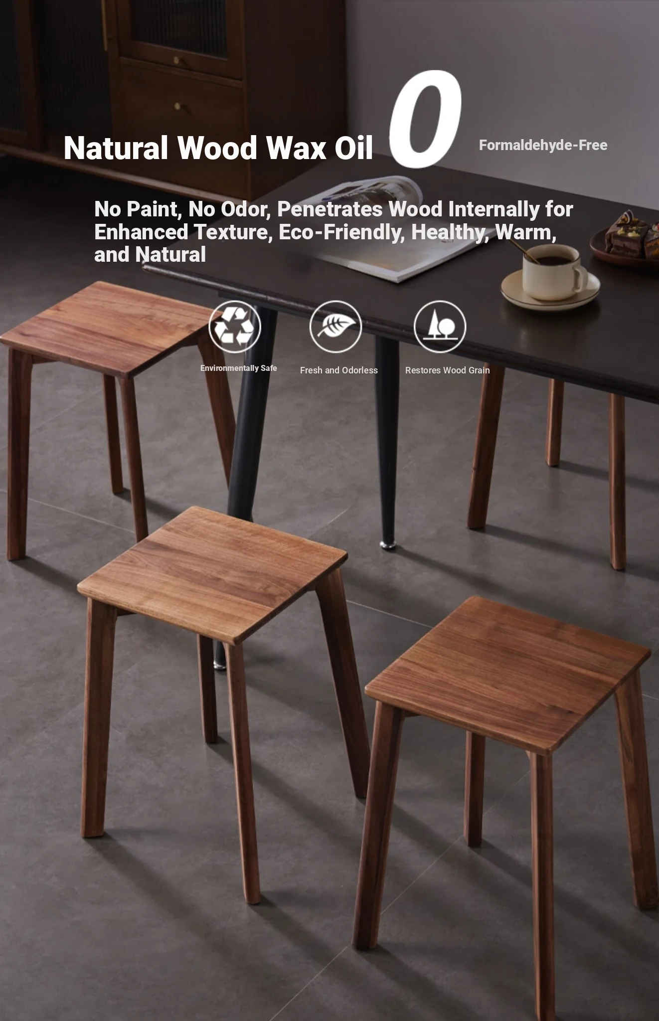 North American black walnut (Tenon A 3) whole leg stool surface four spell