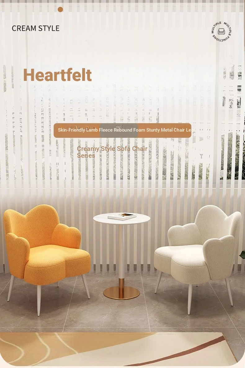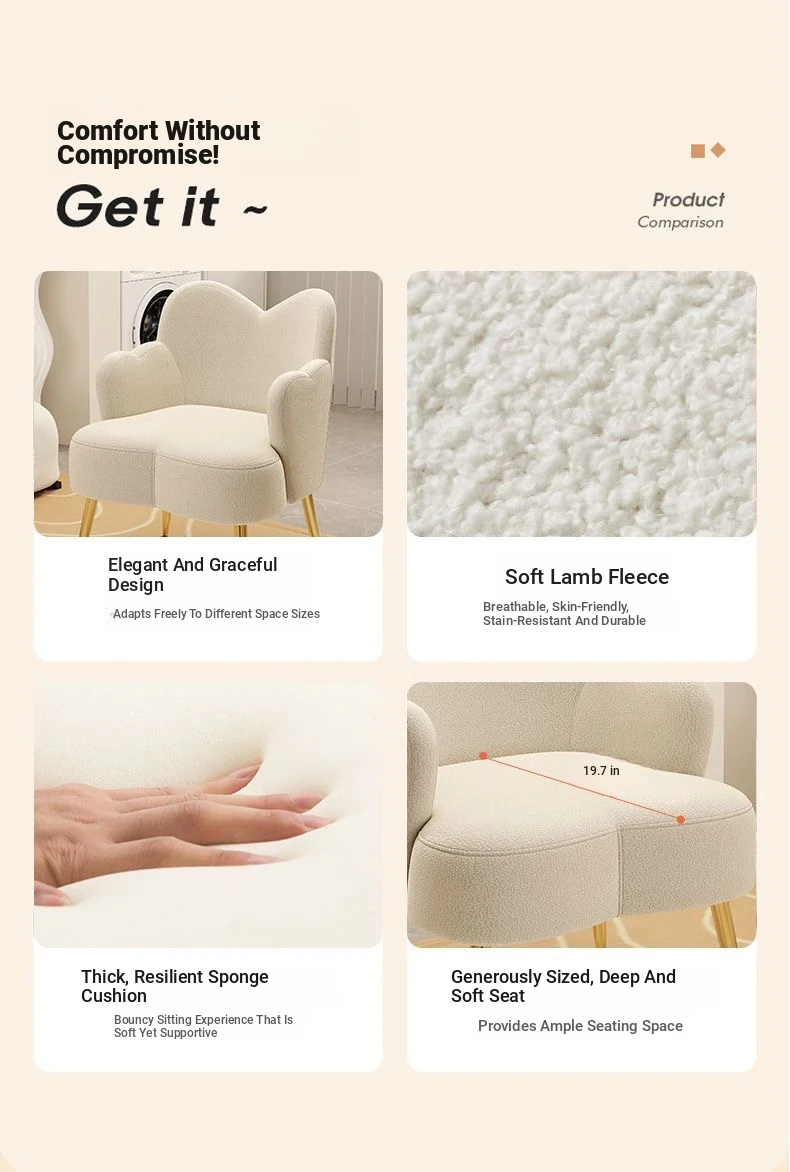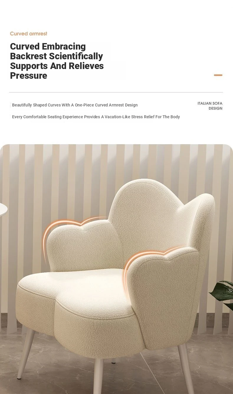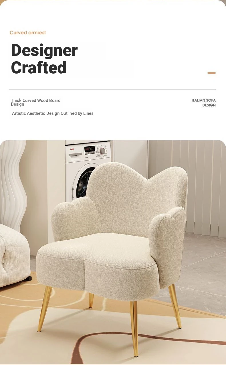 Petal Chair - Trendy Cream Lazy Sofa, Lamb Fleece Makeup Chair, Single Luxury Sofa for Bedroom, Perfect for Nail Art and Relaxation