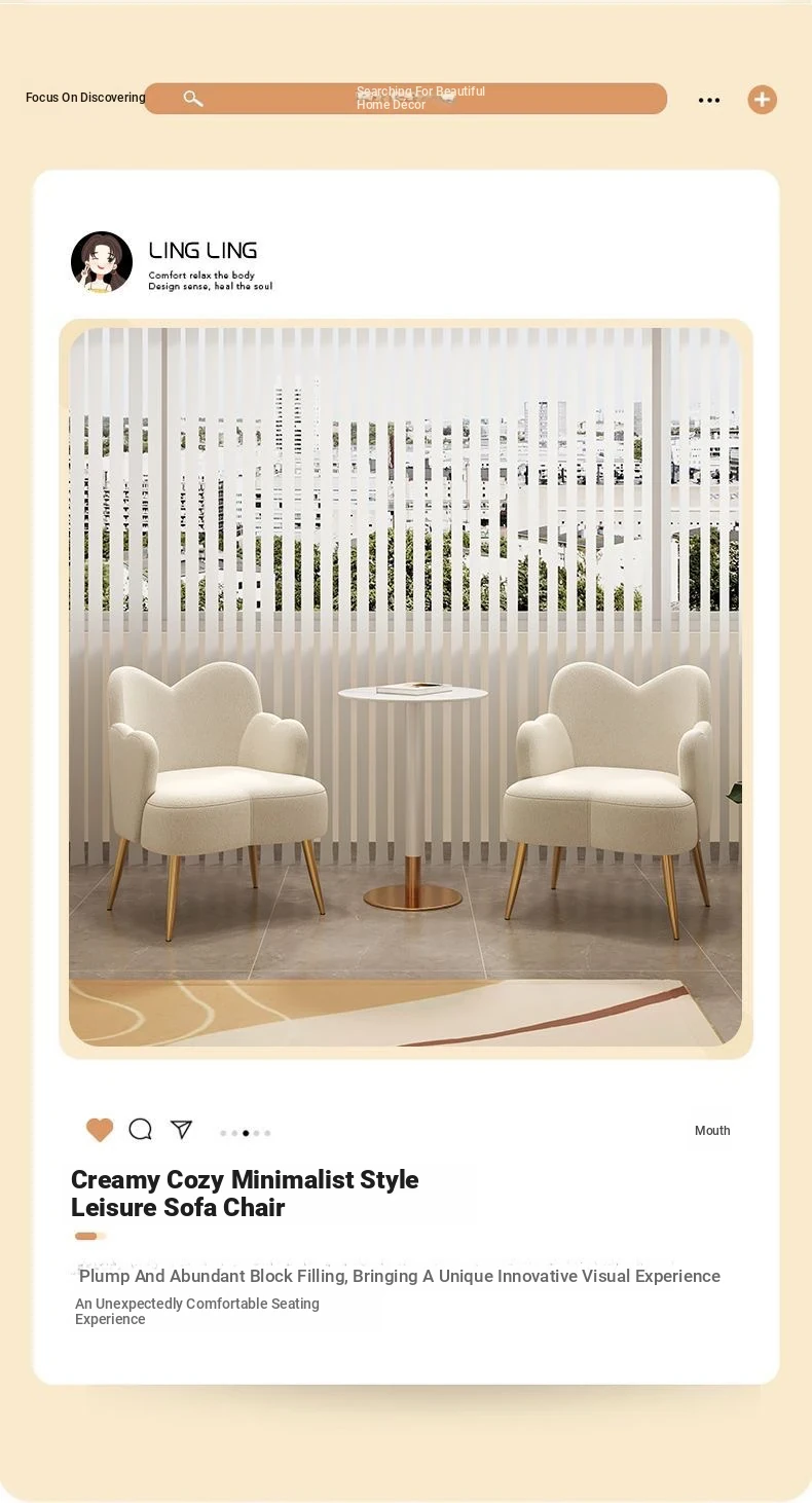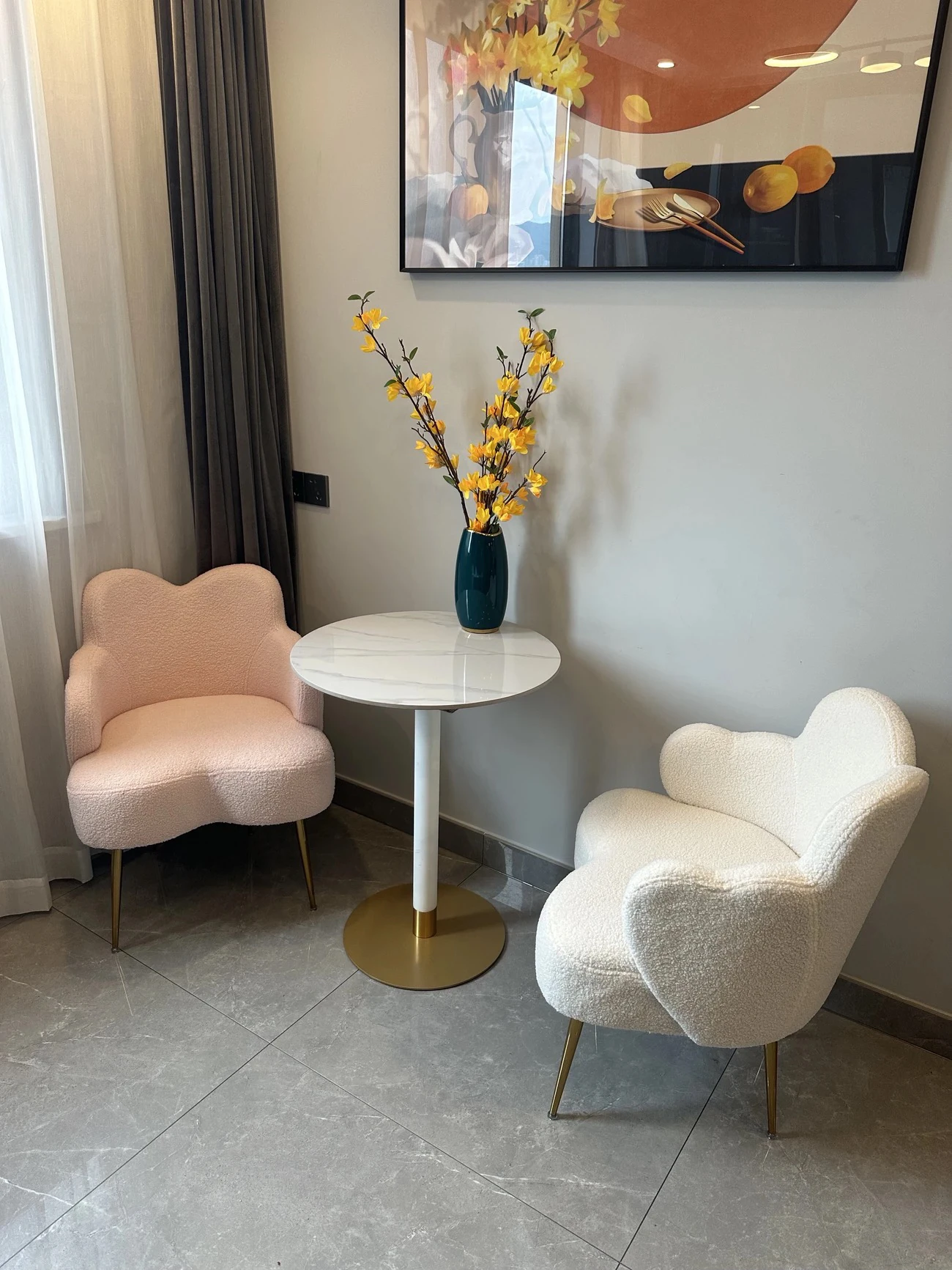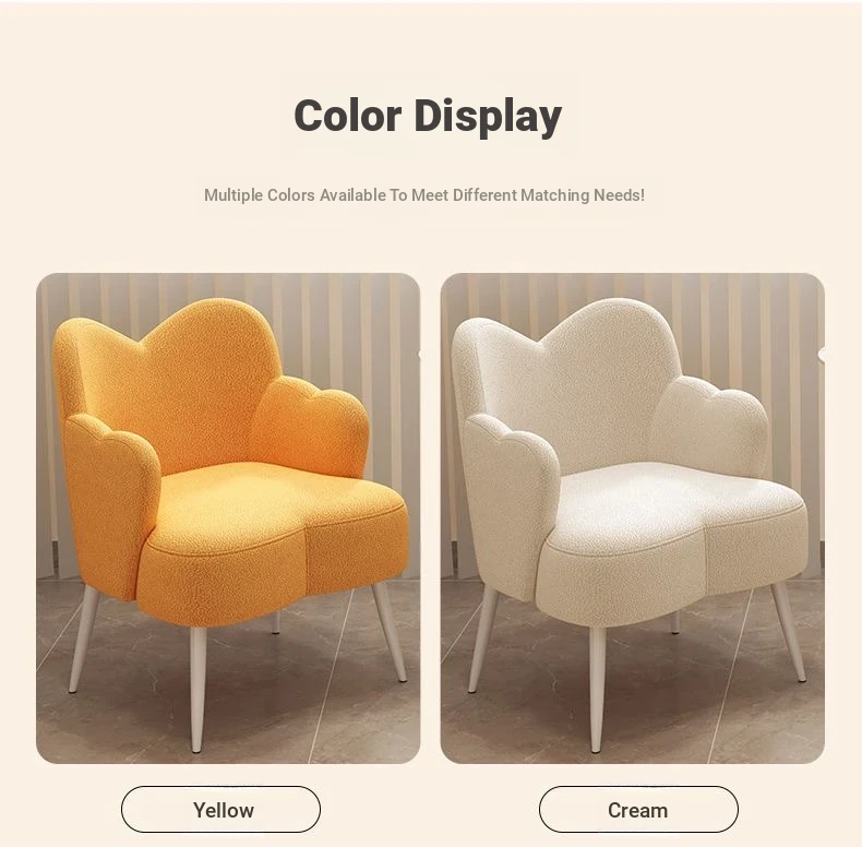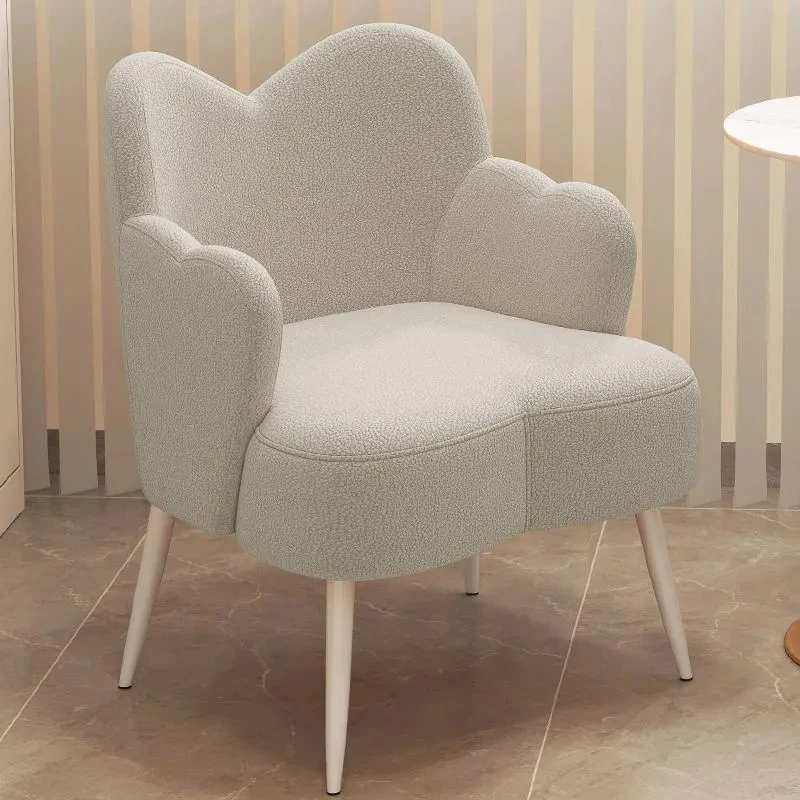 Petal Chair - Trendy Cream Lazy Sofa, Lamb Fleece Makeup Chair, Single Luxury Sofa for Bedroom, Perfect for Nail Art and Relaxation