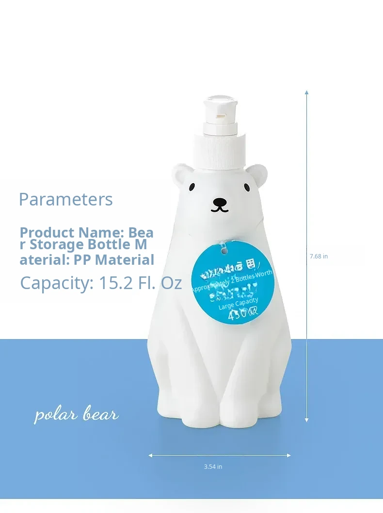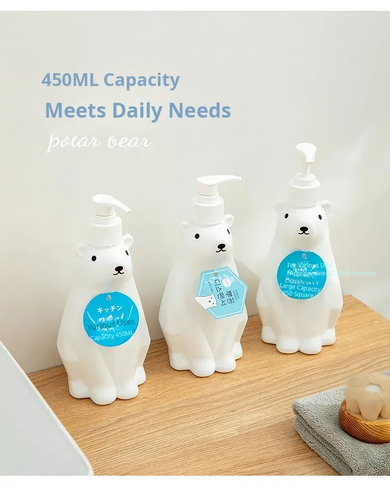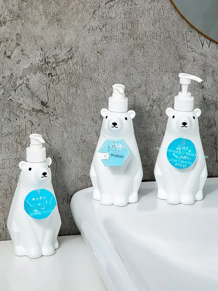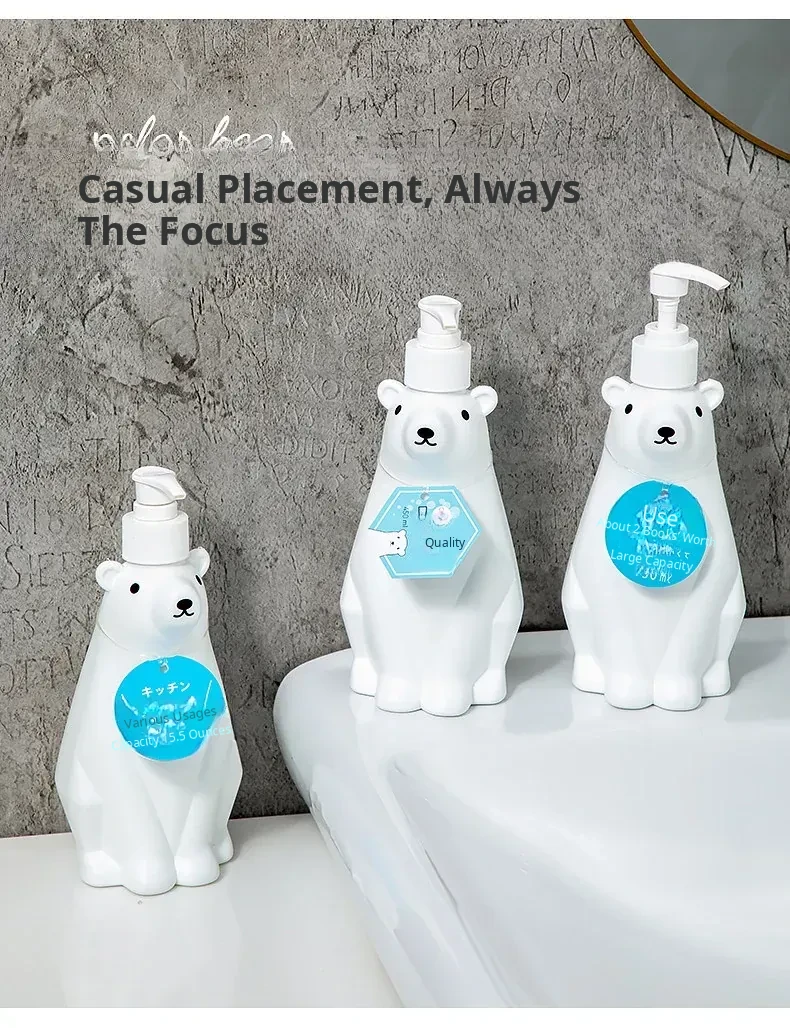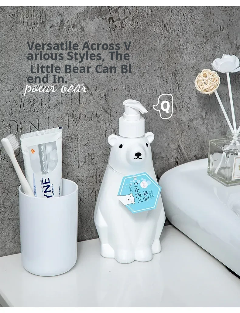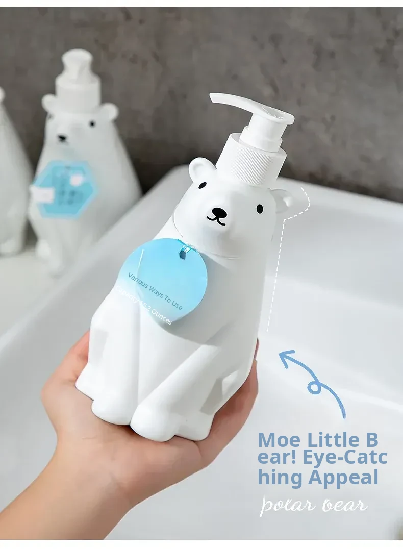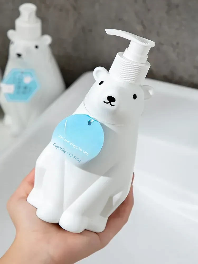 Polar Bear Soap Dispenser Bottle - Cute Bear Pump Bottle for Hand Soap, Lotion, Dishwashing Liquid, and Shower Gel Refill - Perfect for Kids’ Bathrooms and Playful Decor