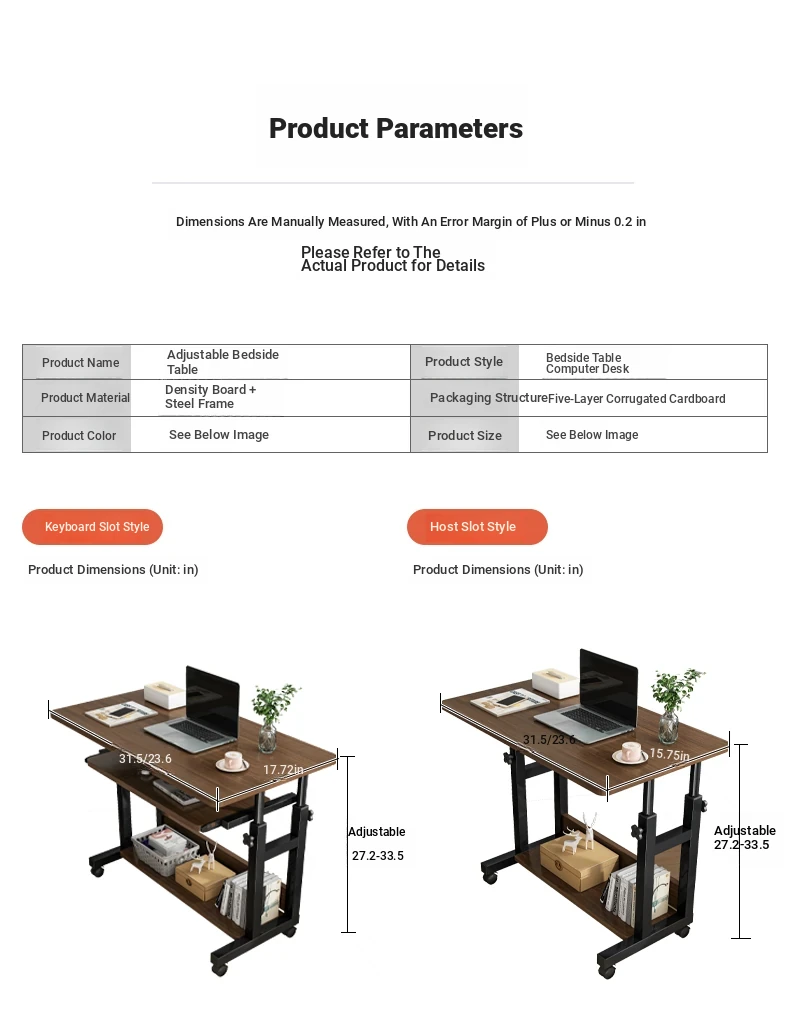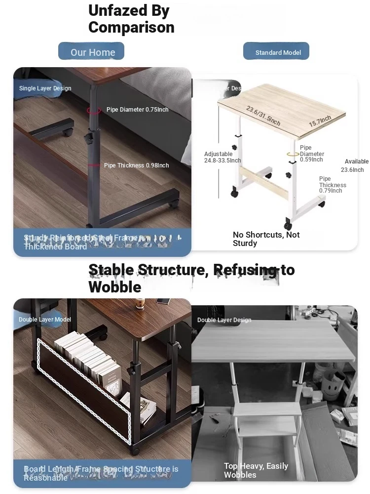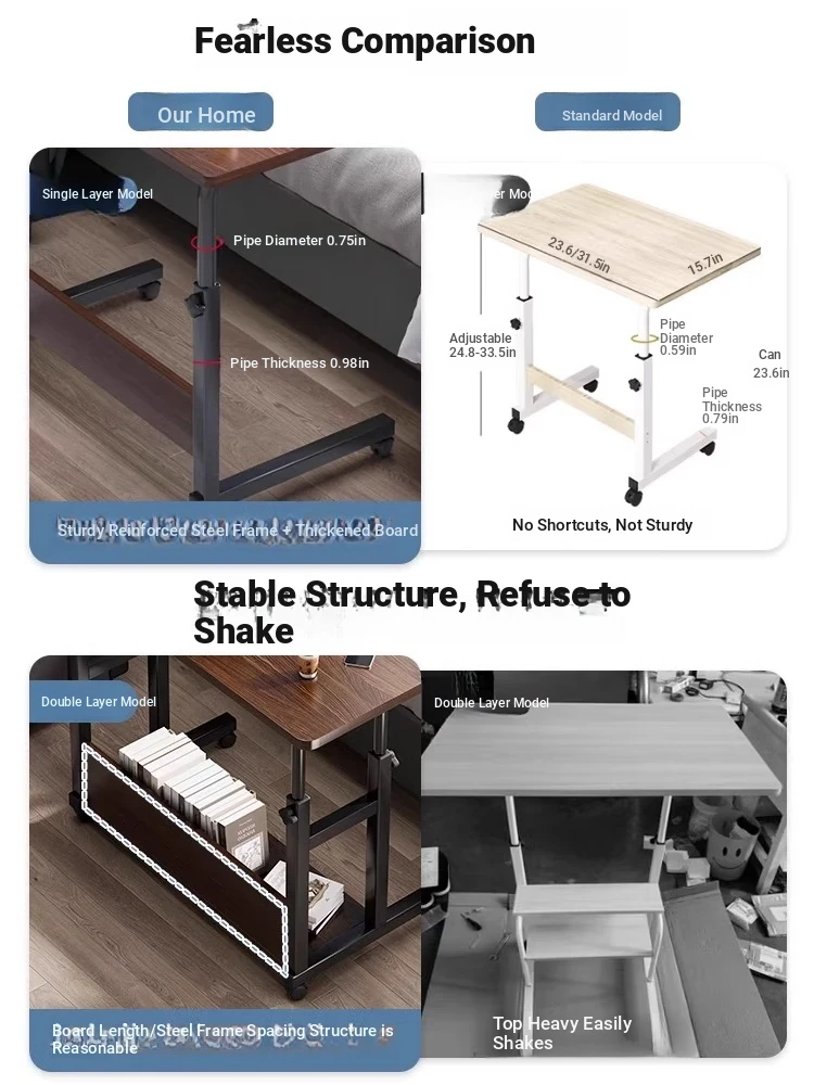 Portable Adjustable Bedside Table - Versatile Laptop Desk for Bedroom, Easy Student Study Desk, Compact Writing Table for Small Spaces