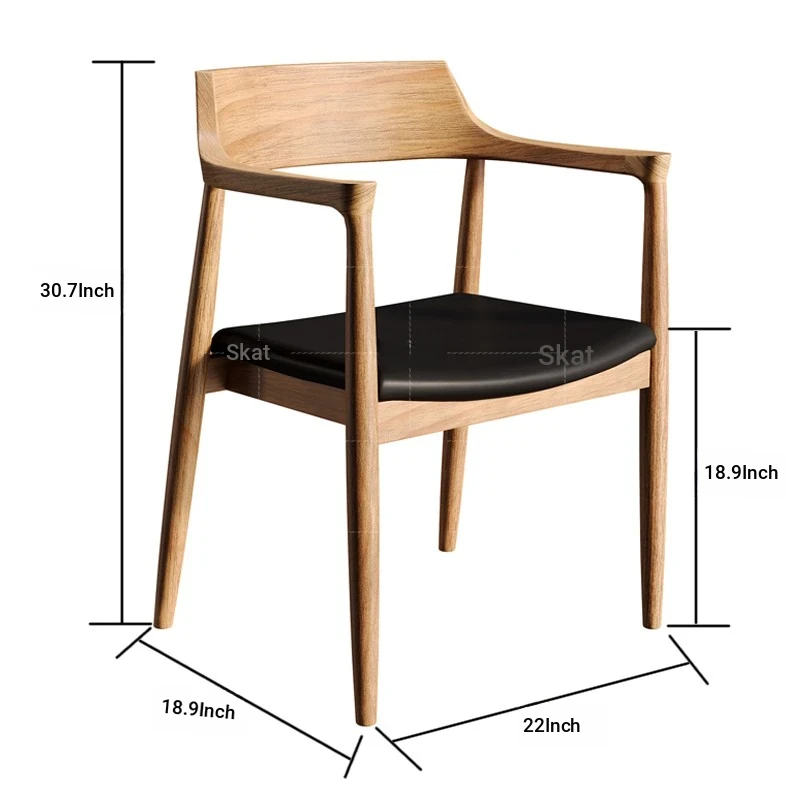 Premium Solid Wood Backrest Dining Chair - Elegant Ash Wood Design for Home, New Chinese Style, Minimalist Modern Oak Office Leisure Chair