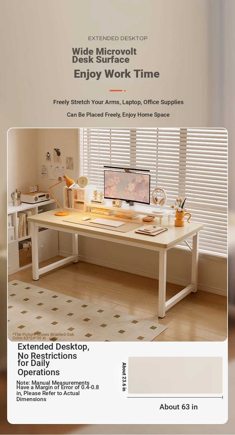 [Extra Thick 0.98in Desktop] 62.99in*23.62in Warm White⭐1.57in Table Legs