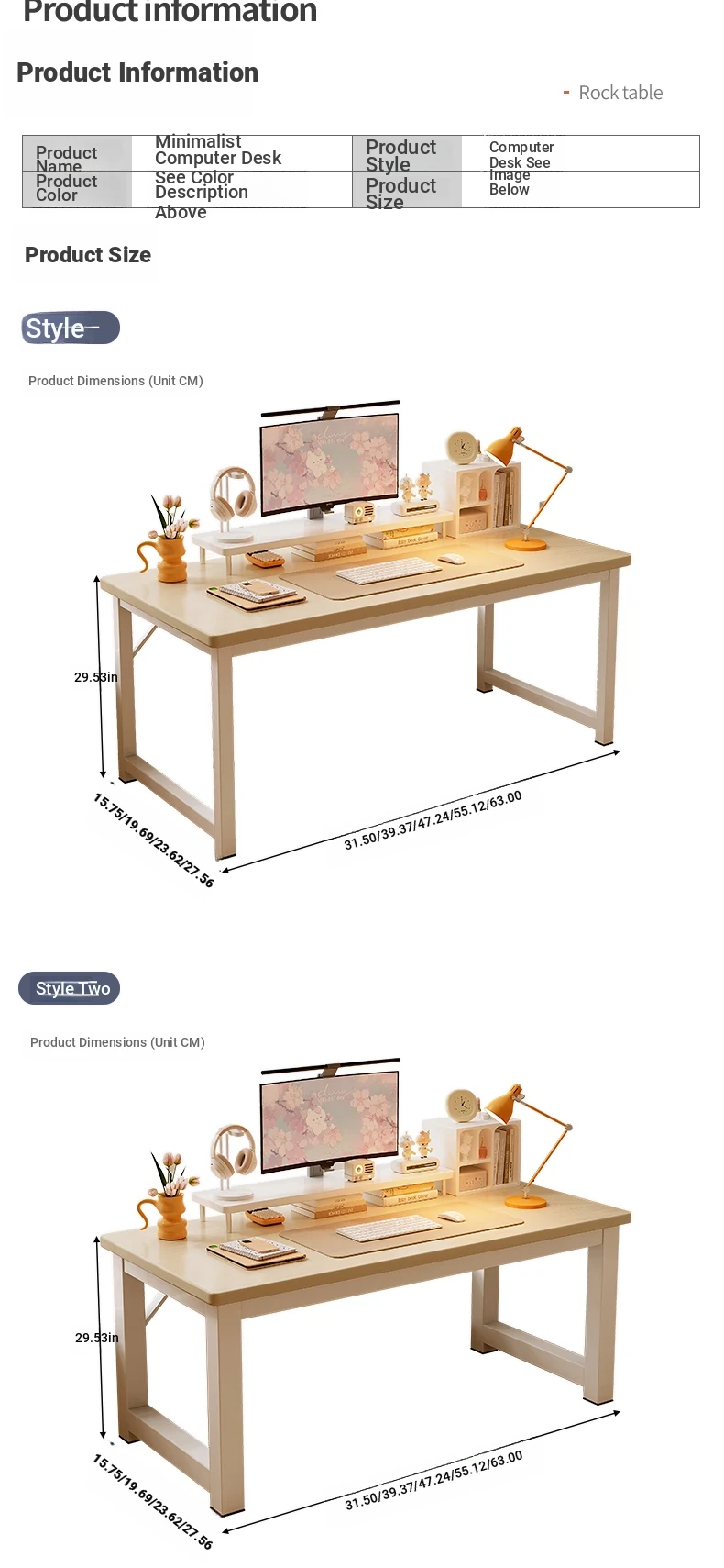 [Thickened 0.59in Desktop] 55.12in*23.62in Warm White⭐1.57in Table Legs