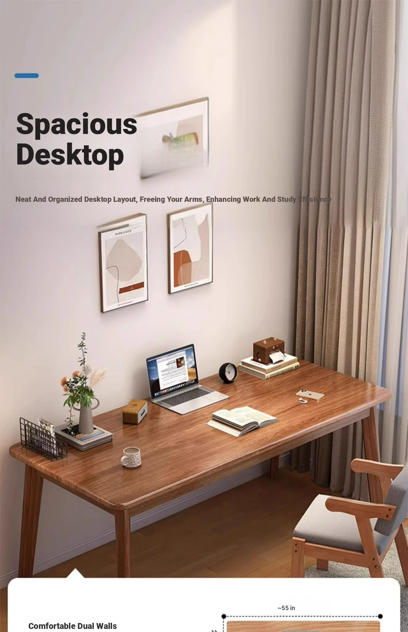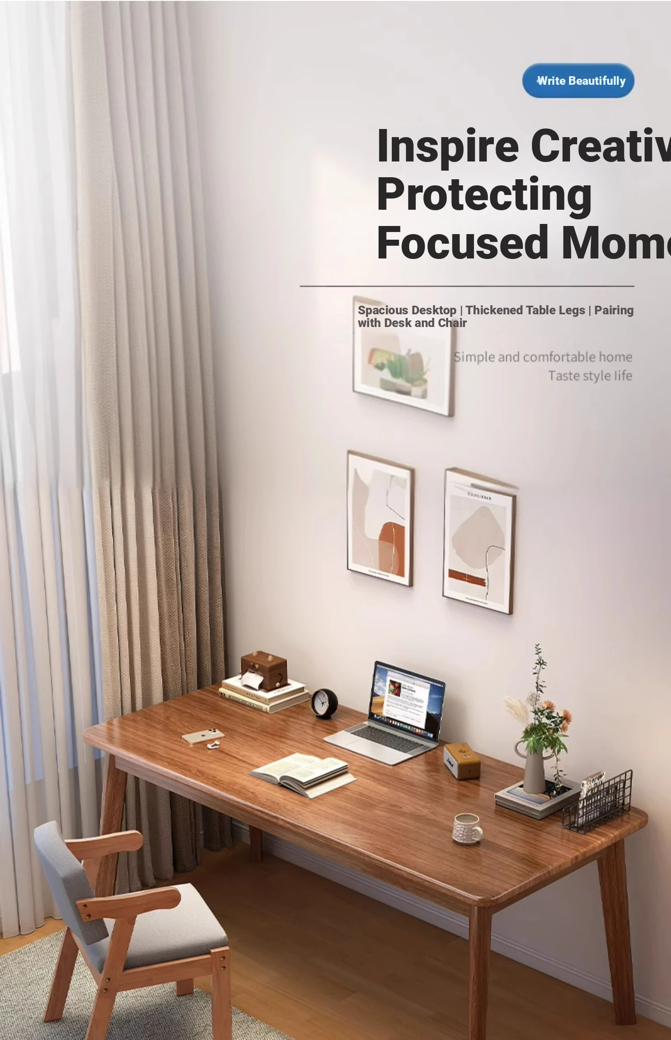 Rectangular Wooden Leg Desk for Students and Home Office - Simple Writing Table for Bedrooms and Workspaces, Perfect for Study and Productivity