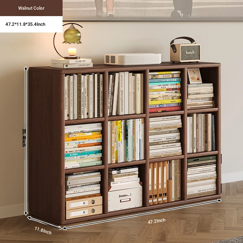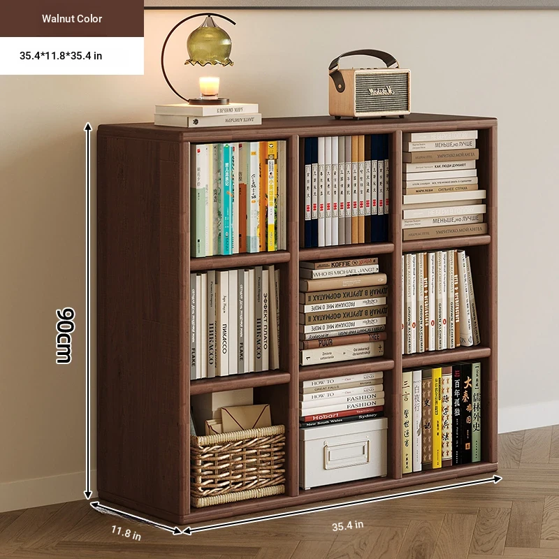 ⭐All Solid Wood-Rubber Wood [Heightened and Deepened 8 Grids] 120X30X75Cm★Black Walnut Color