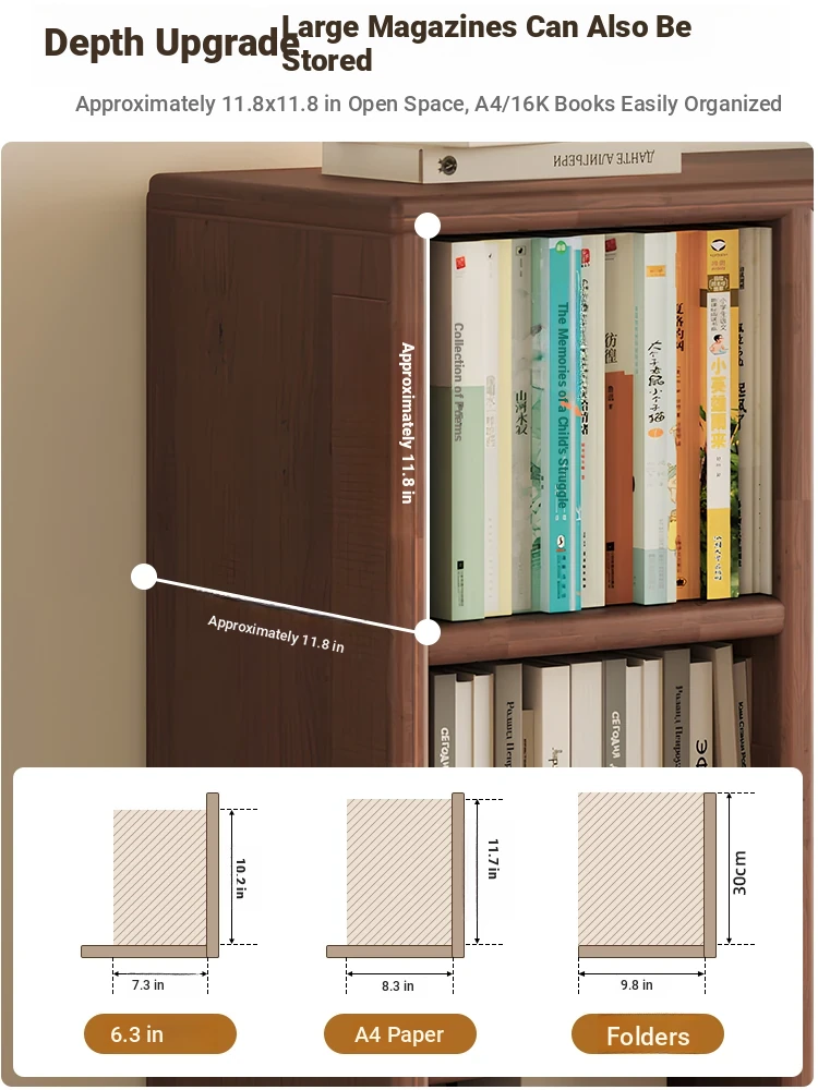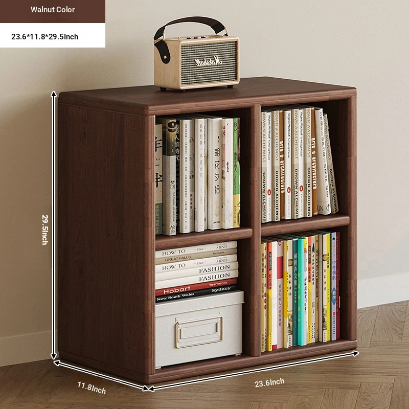 ⭐All Solid Wood-Rubber Wood [Heightened and Deepened 4 Grids] 60X30X75Cm★Black Walnut Color