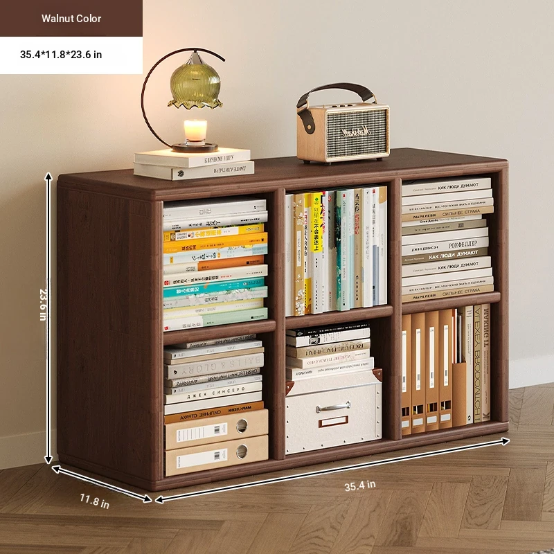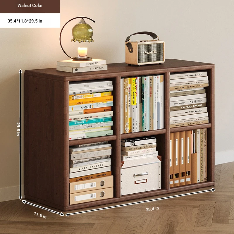 ⭐All Solid Wood-Rubber Wood [Heightened and Deepened 6 Grids] 90X30X75Cm★Black Walnut Color