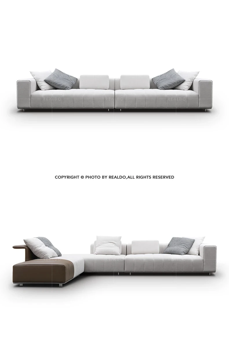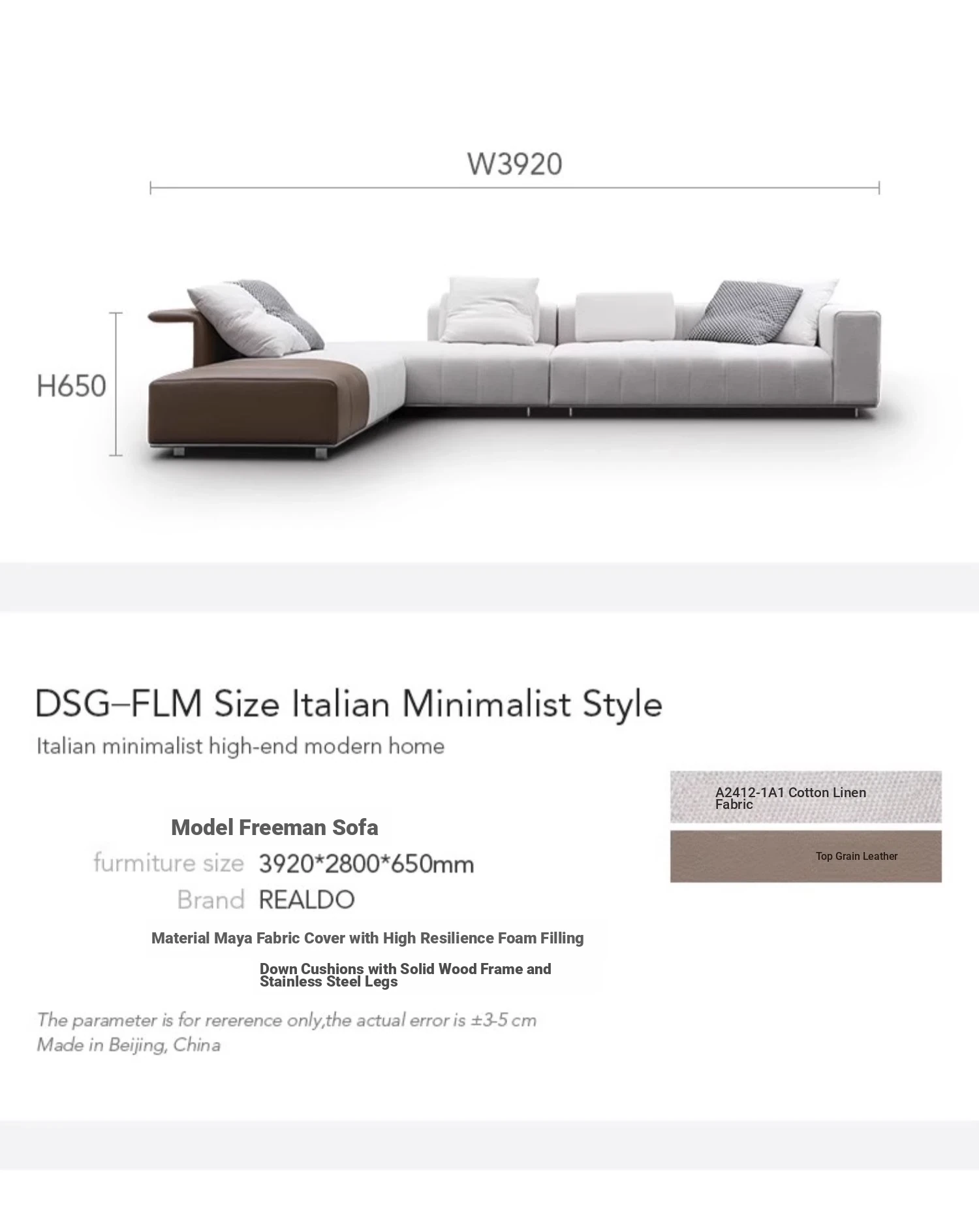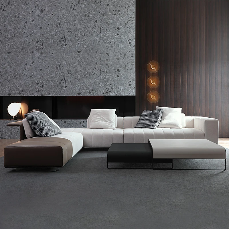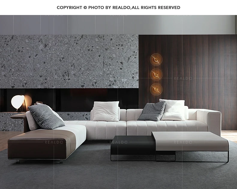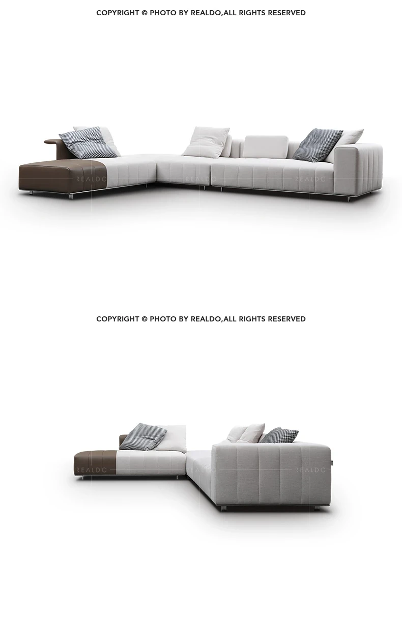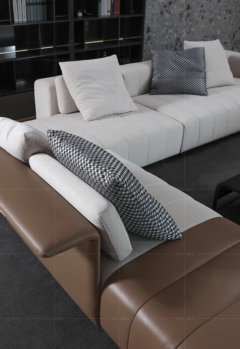 RUIDU Luxury Italian Style Corner Sofa - Modern Minimalist Leather and Fabric Sofa Set for Living Room, Perfect for Couples and Small Families