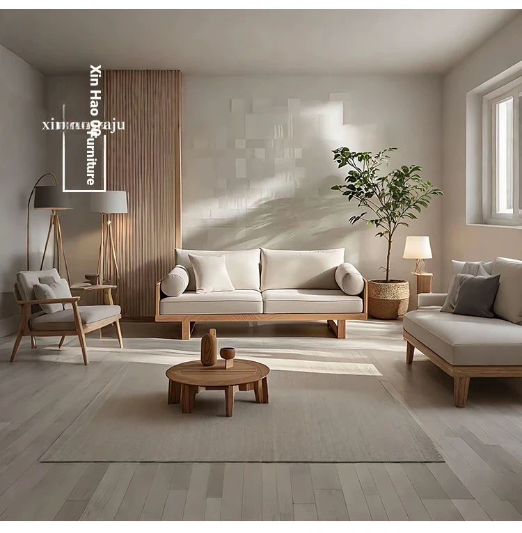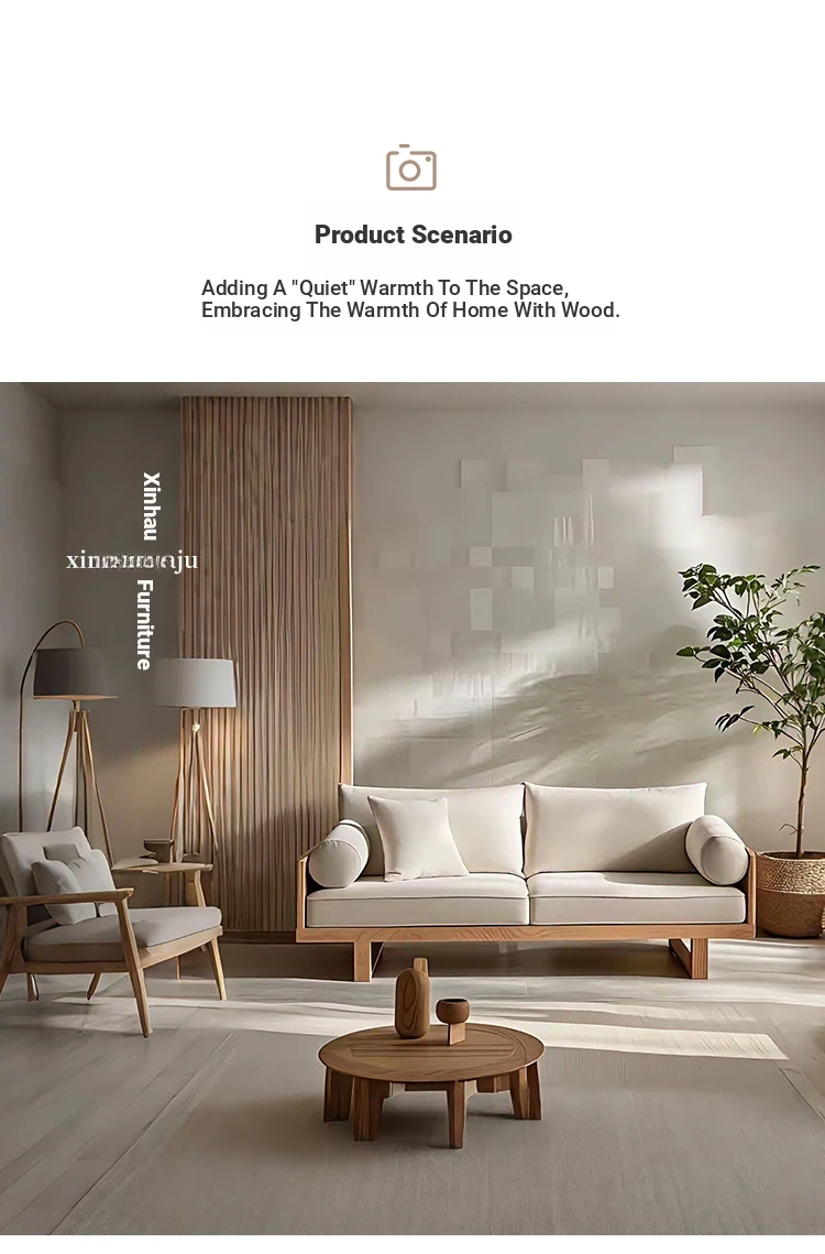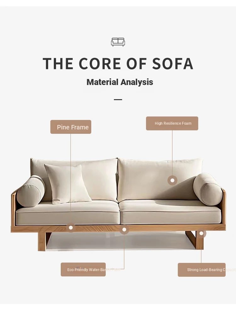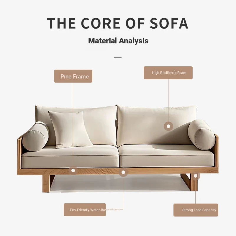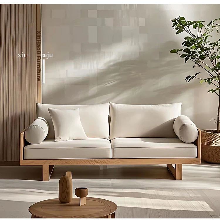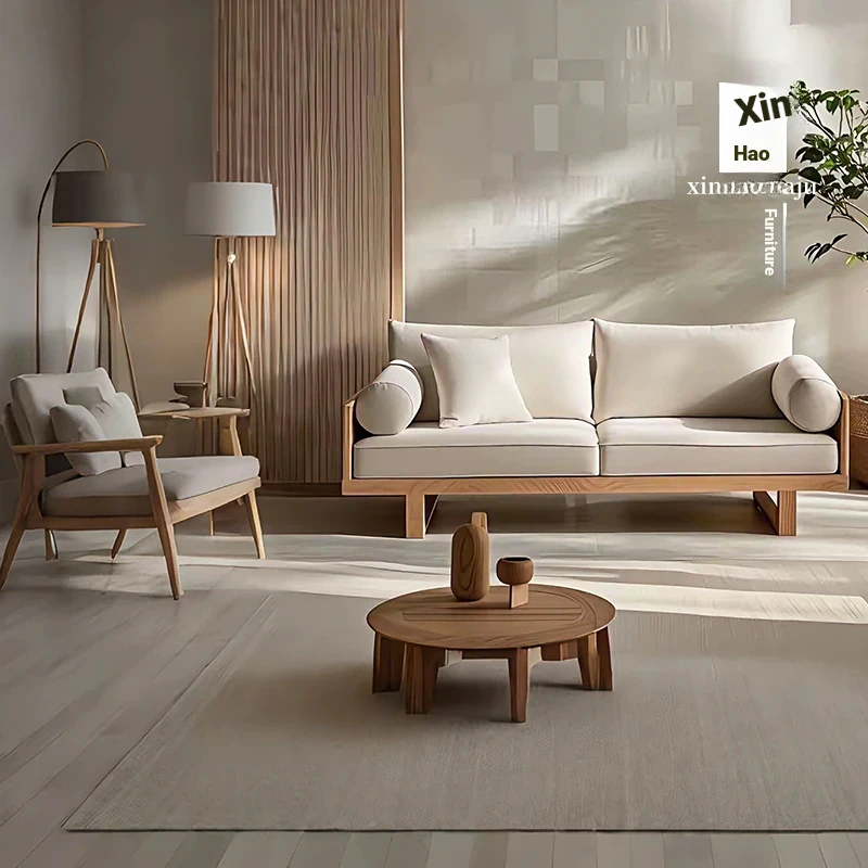 Rustic Solid Wood Sofa for Living Room – Designer Furniture with Removable Fabric Covers, Armrests, Perfect for Two or Three People, Embracing Wabi-Sabi Aesthetics for Your Cozy Retreat