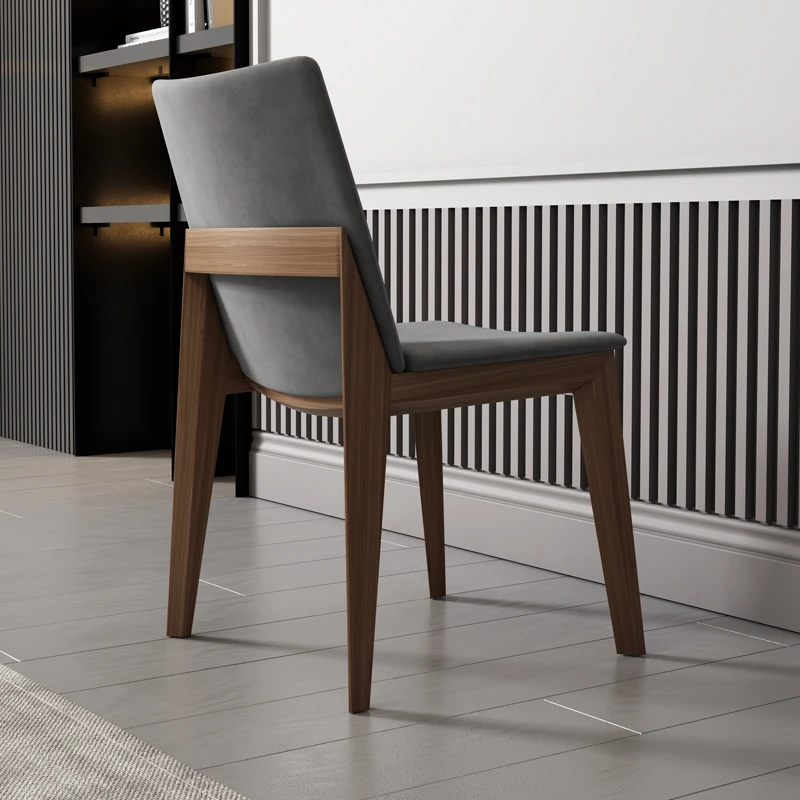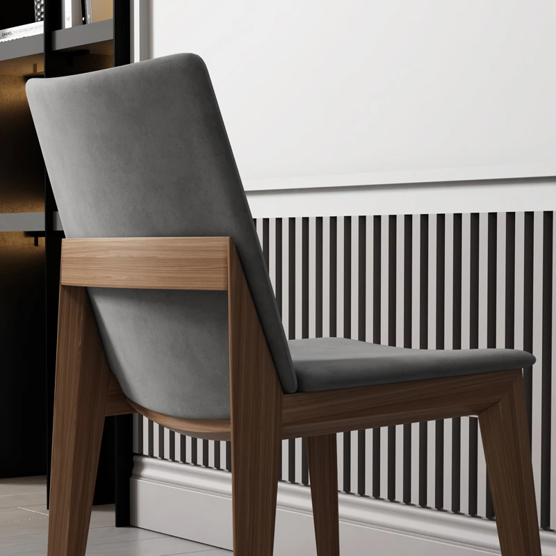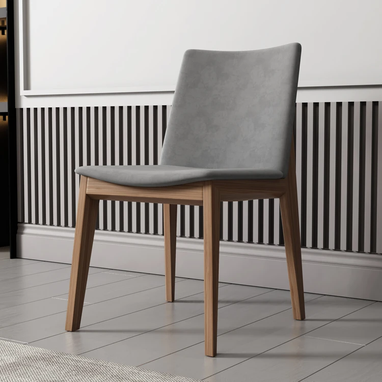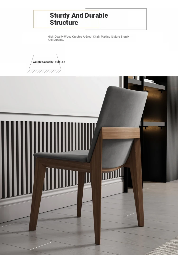 Scandinavian Solid Wood Dining Chair - Modern Minimalist Design with Genuine Leather Cushion, Ideal for Home Use, Makeup Stations, Nail Salons, and Dining Rooms with Comfortable Backrest and Upholstered Fabric.