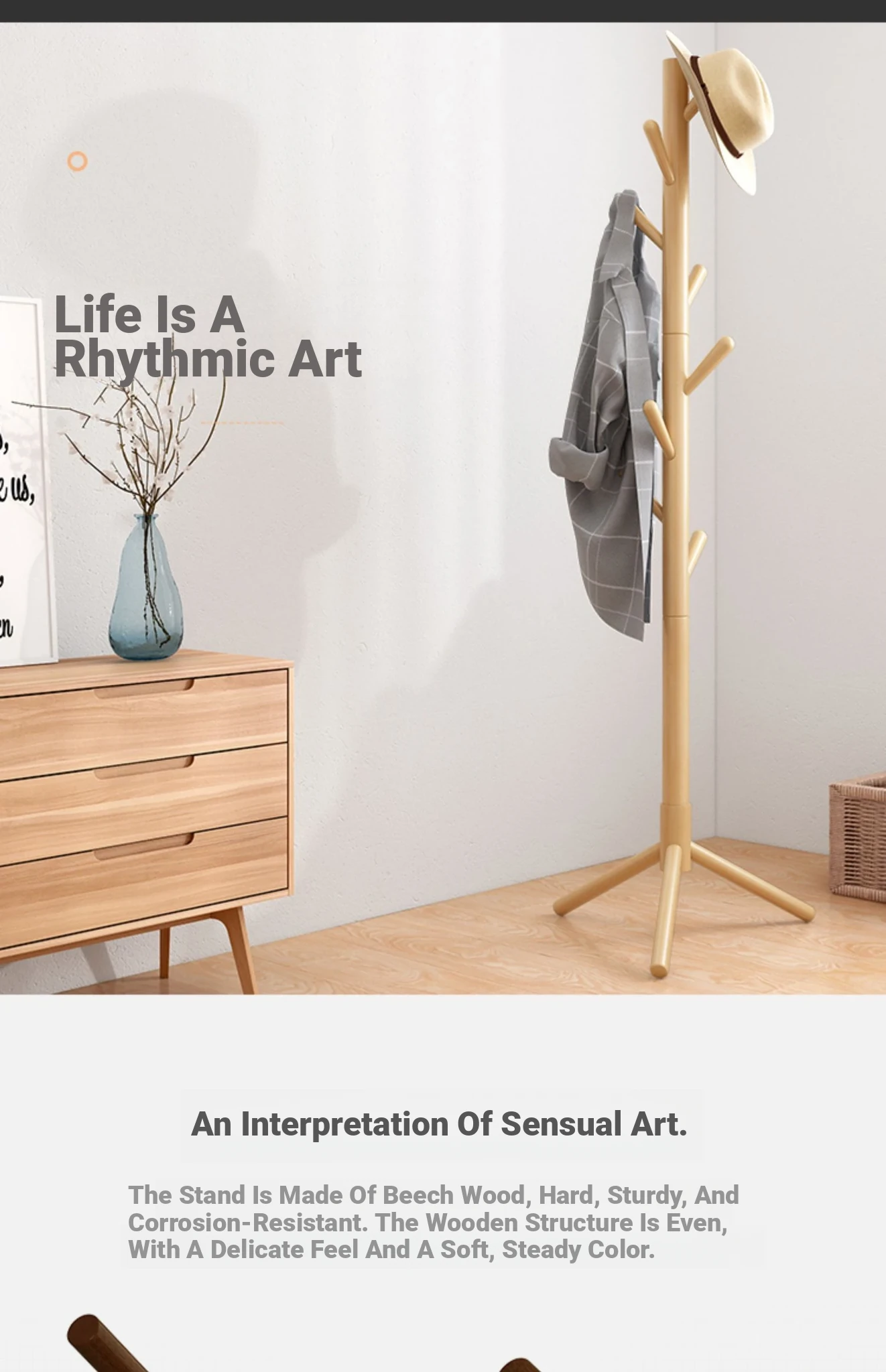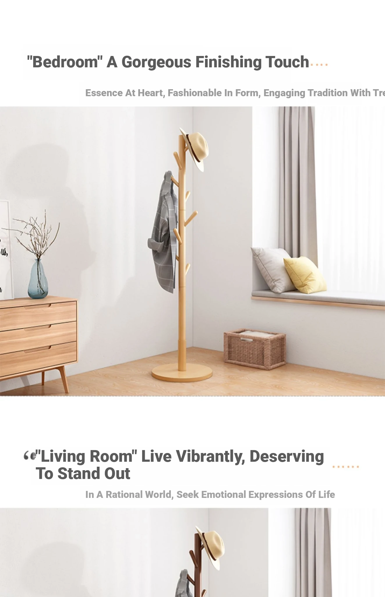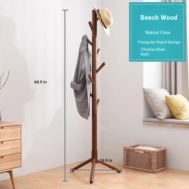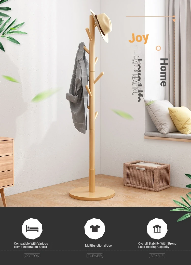 Simple Solid Wood Coat Rack - Modern Minimalist Freestanding Clothes Hanger for Bedroom, Creative Single Rod Design for Home Use