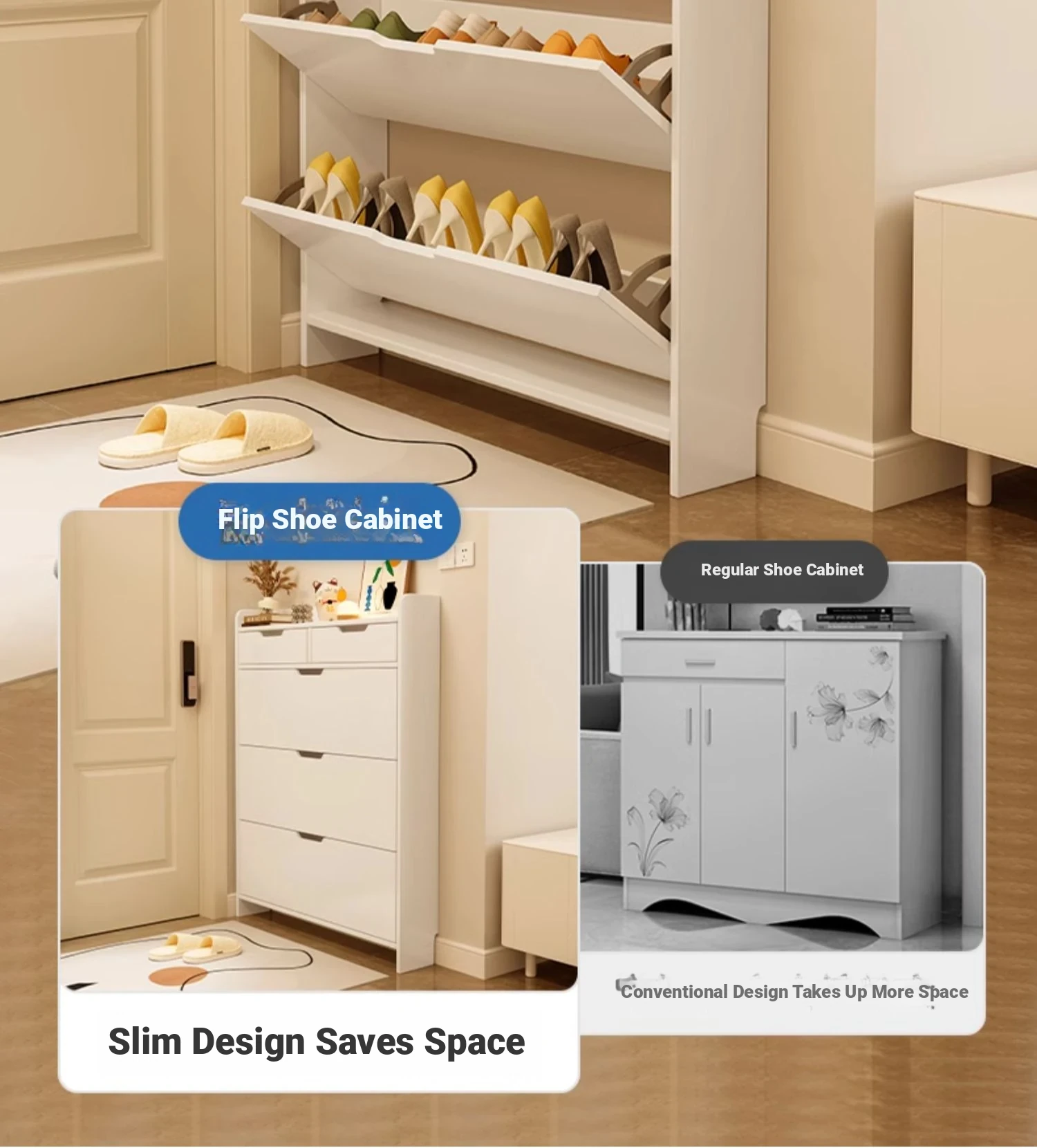 Slim Entryway Shoe Cabinet - 2025 New Model for Home Use, Perfect for Hallways and Doorways, Space-Saving Wall-Mounted Storage Solution, Easy Assembly Shoe Rack