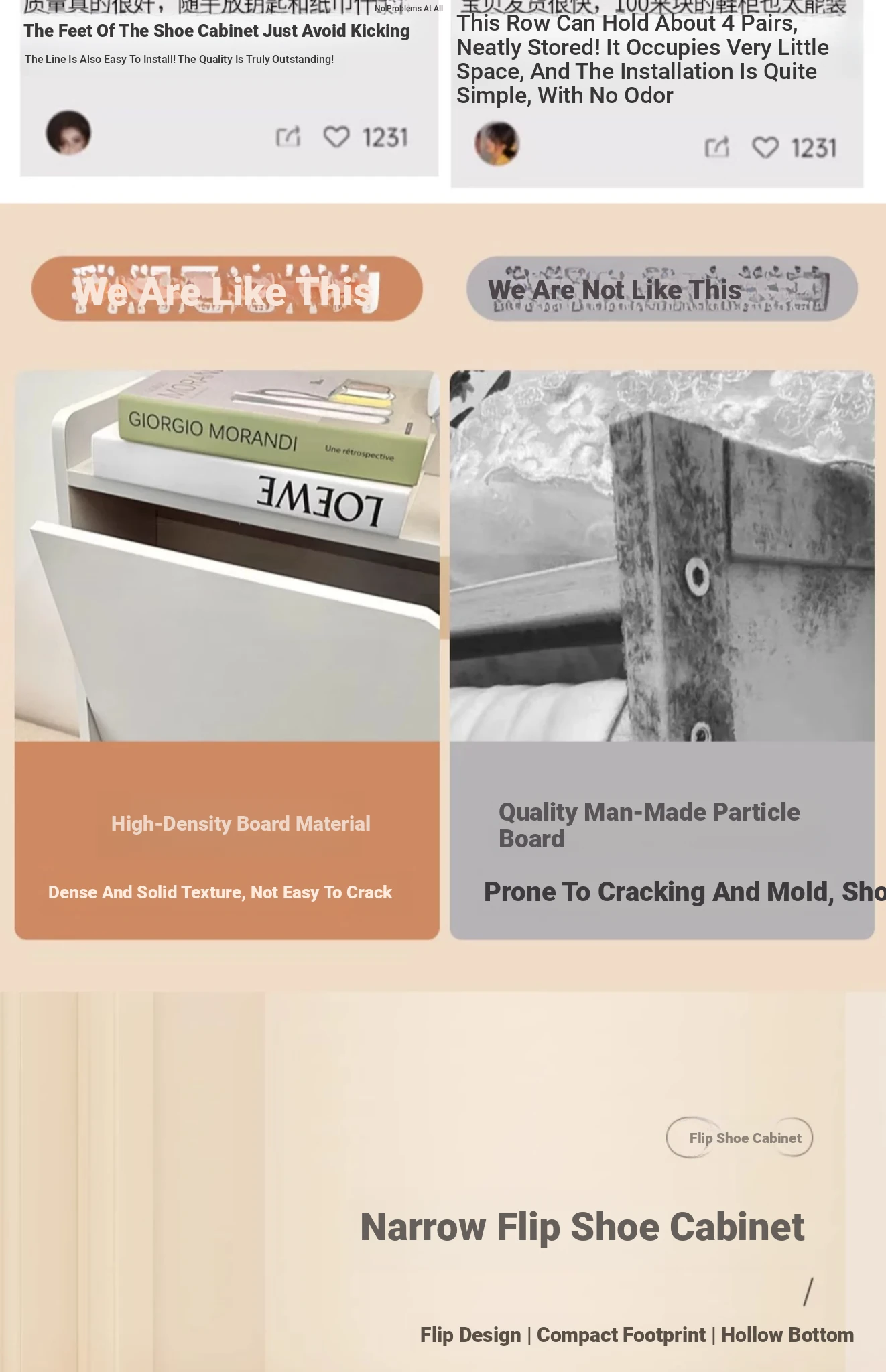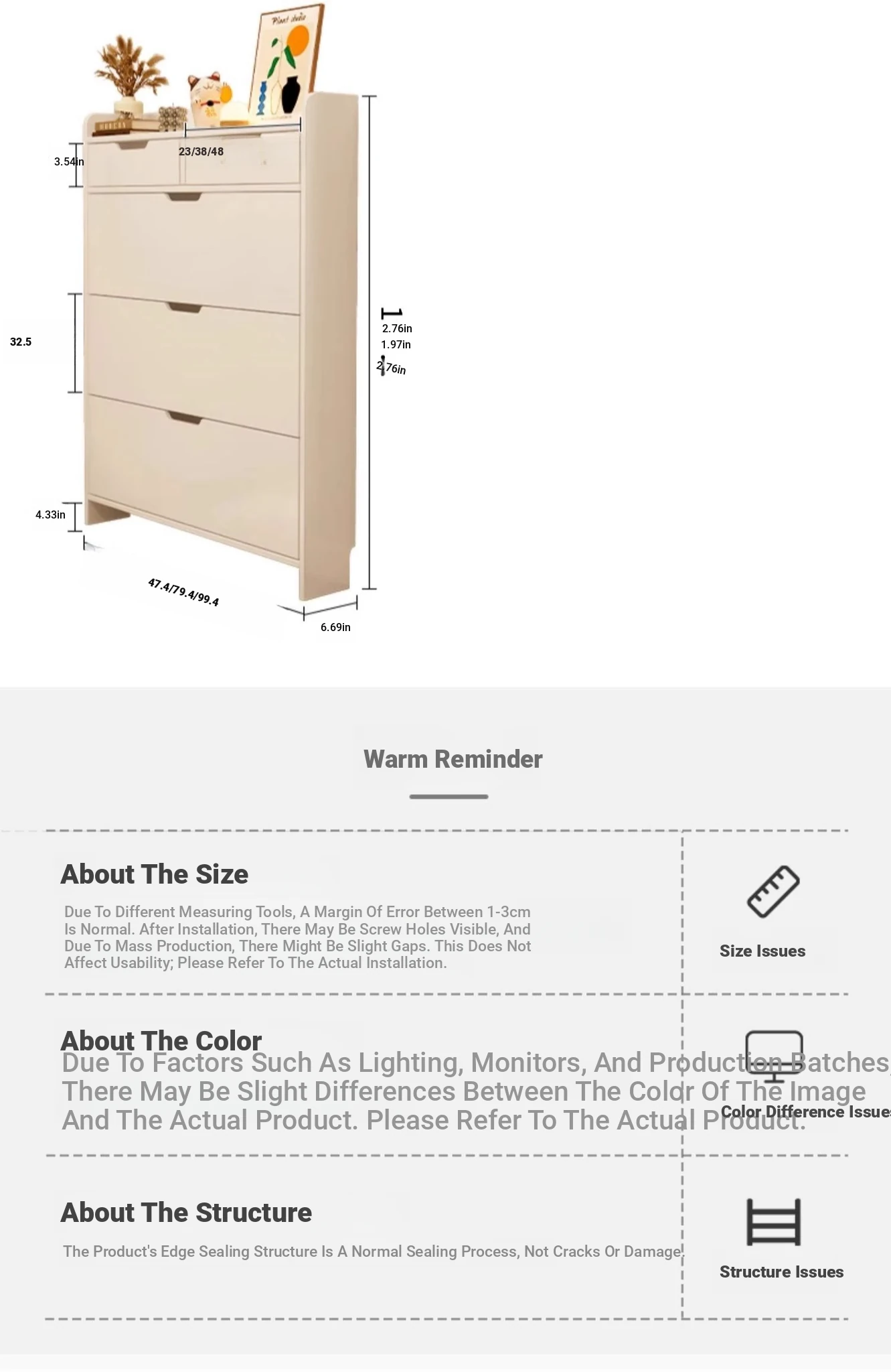 [High-Density Composite Board-Three-Year Warranty] 18.66in*6.69in*31.50in Warm White