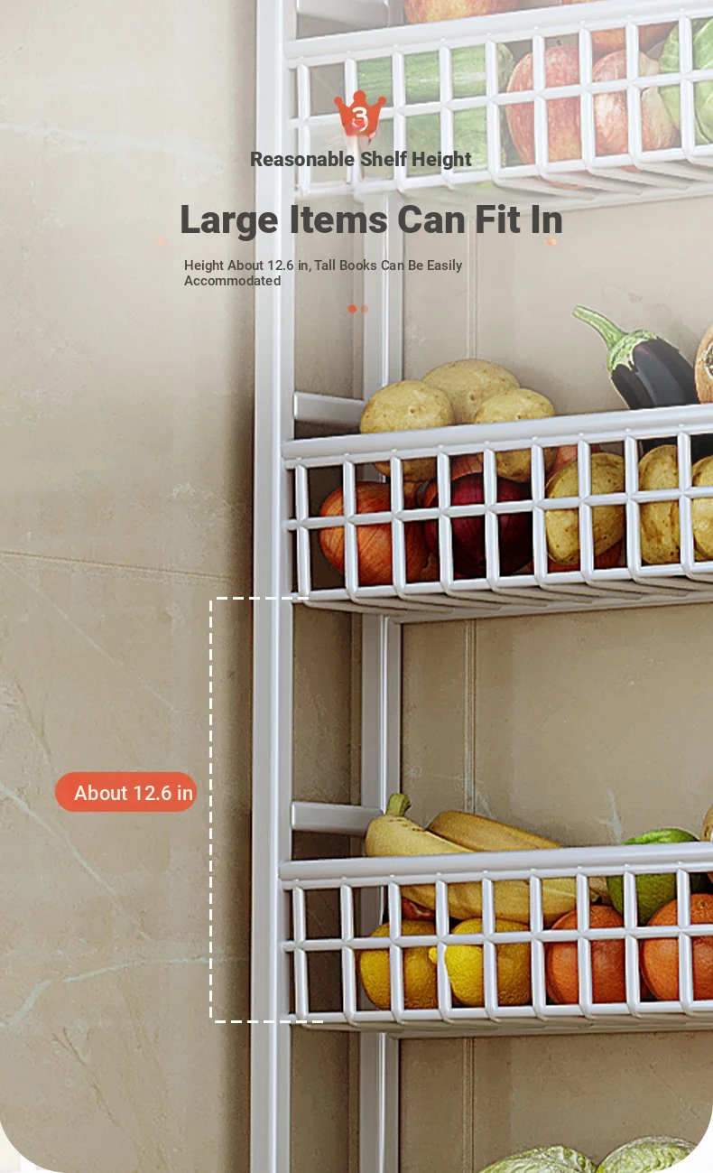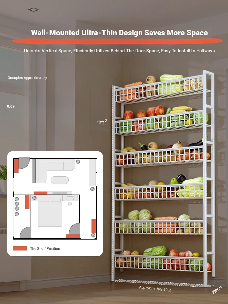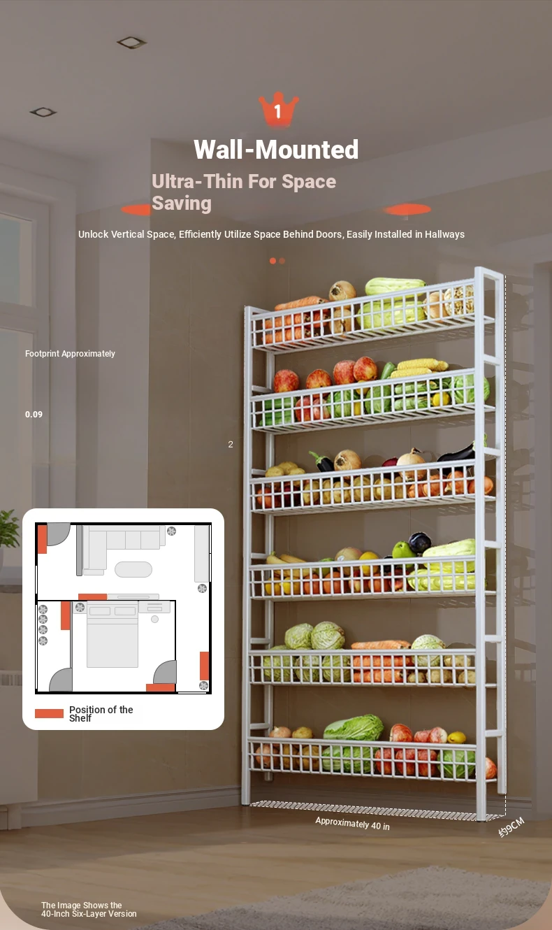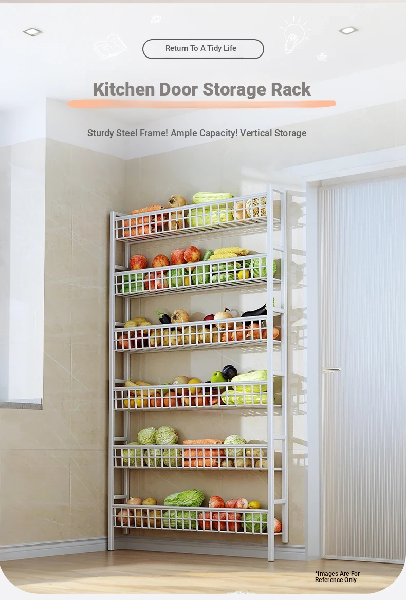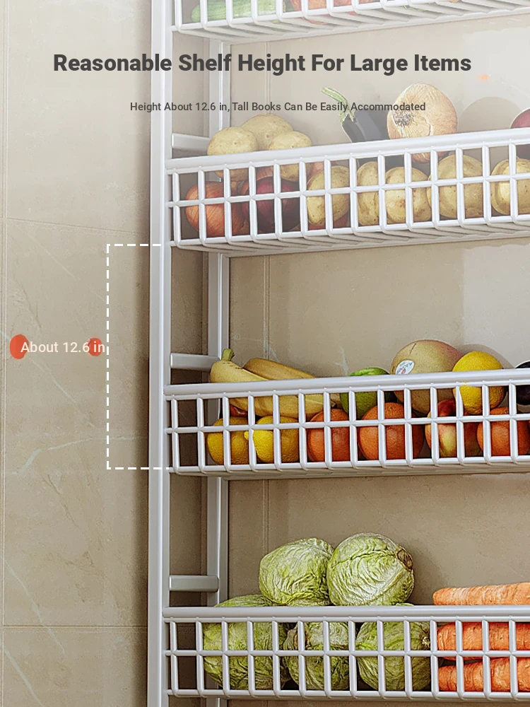 Slim Multi-Layer Metal Storage Rack - Freestanding Wall-Mounted Organizer for Kitchen & Home - Perfect for Storing Miscellaneous Items Behind Doors